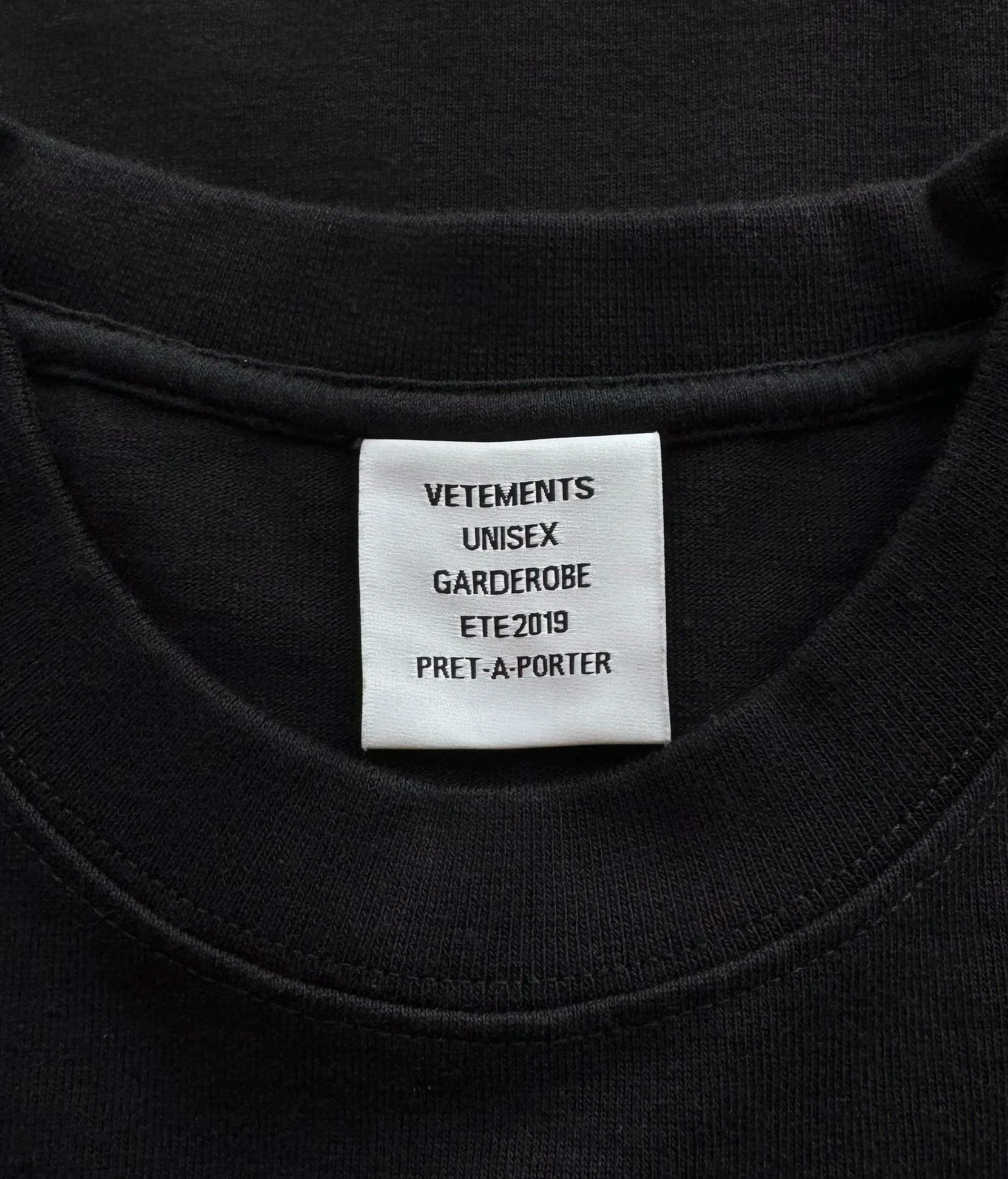 Classic piece from the Spring/Summer 2019 collection. The hoodie version was showcased on the runway; this all-black t shirt features a bald graphic of Russian pop star Viktor Tsoi, also known as the “Russian Idol”. Signature Vetements oversized silhouette. In magnificent condition with no flaws or damages