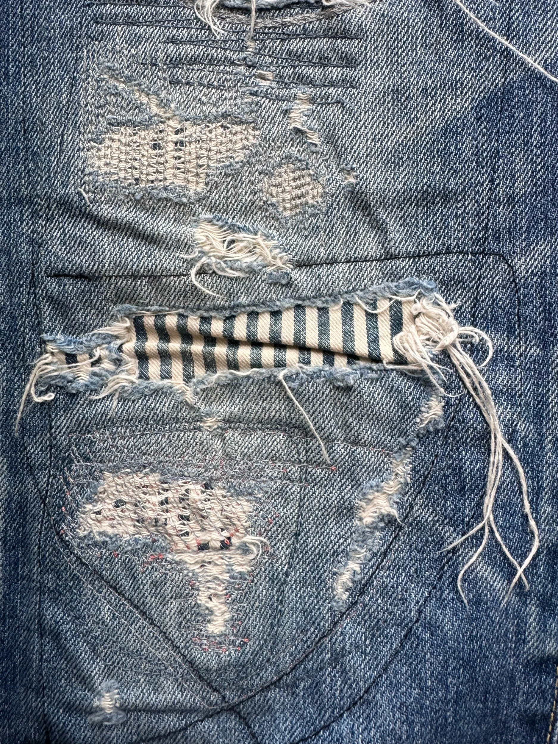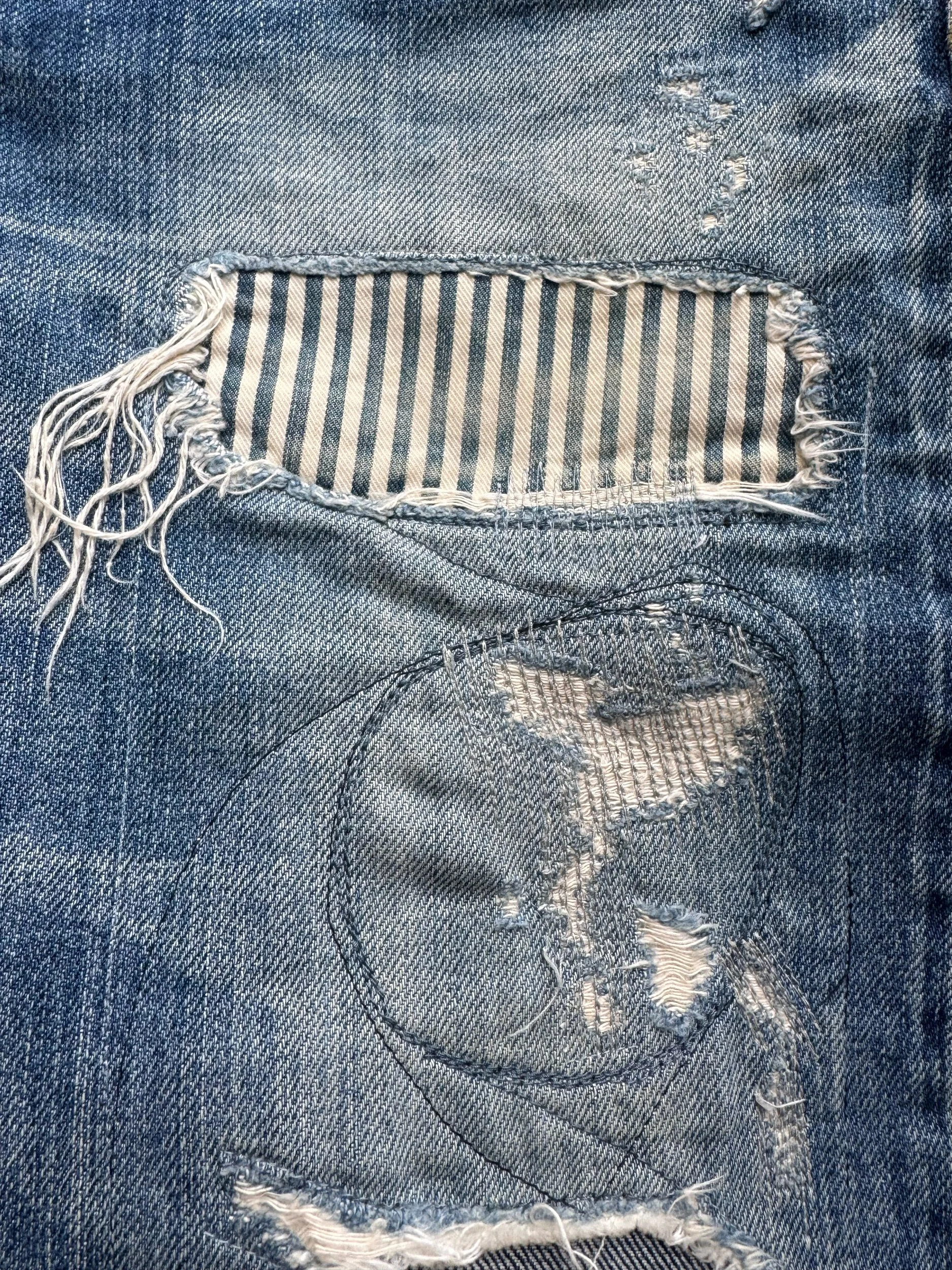 Hysteric Glamour 00s ‘Stripe’ Distress Patchwork Studded Denim