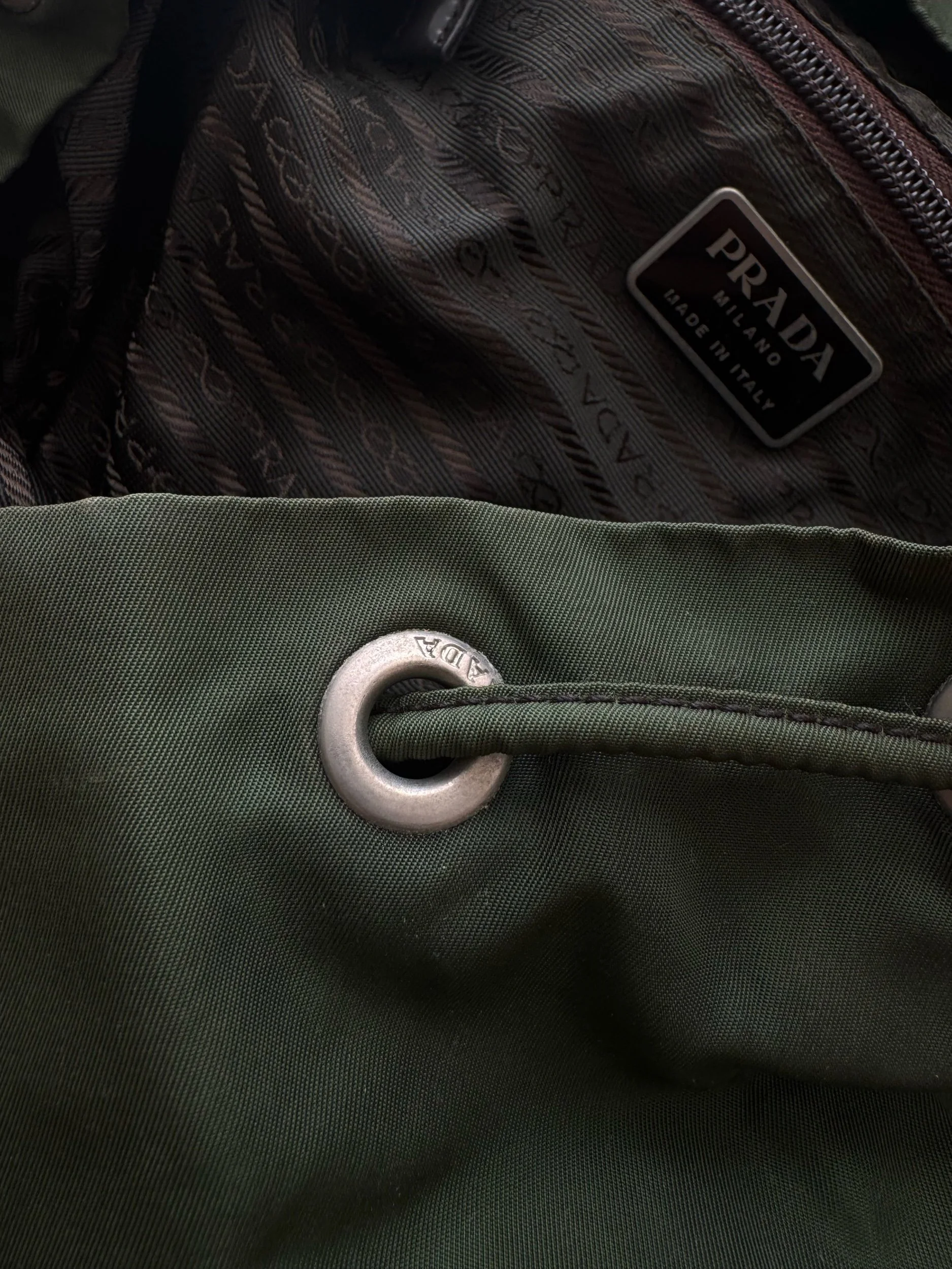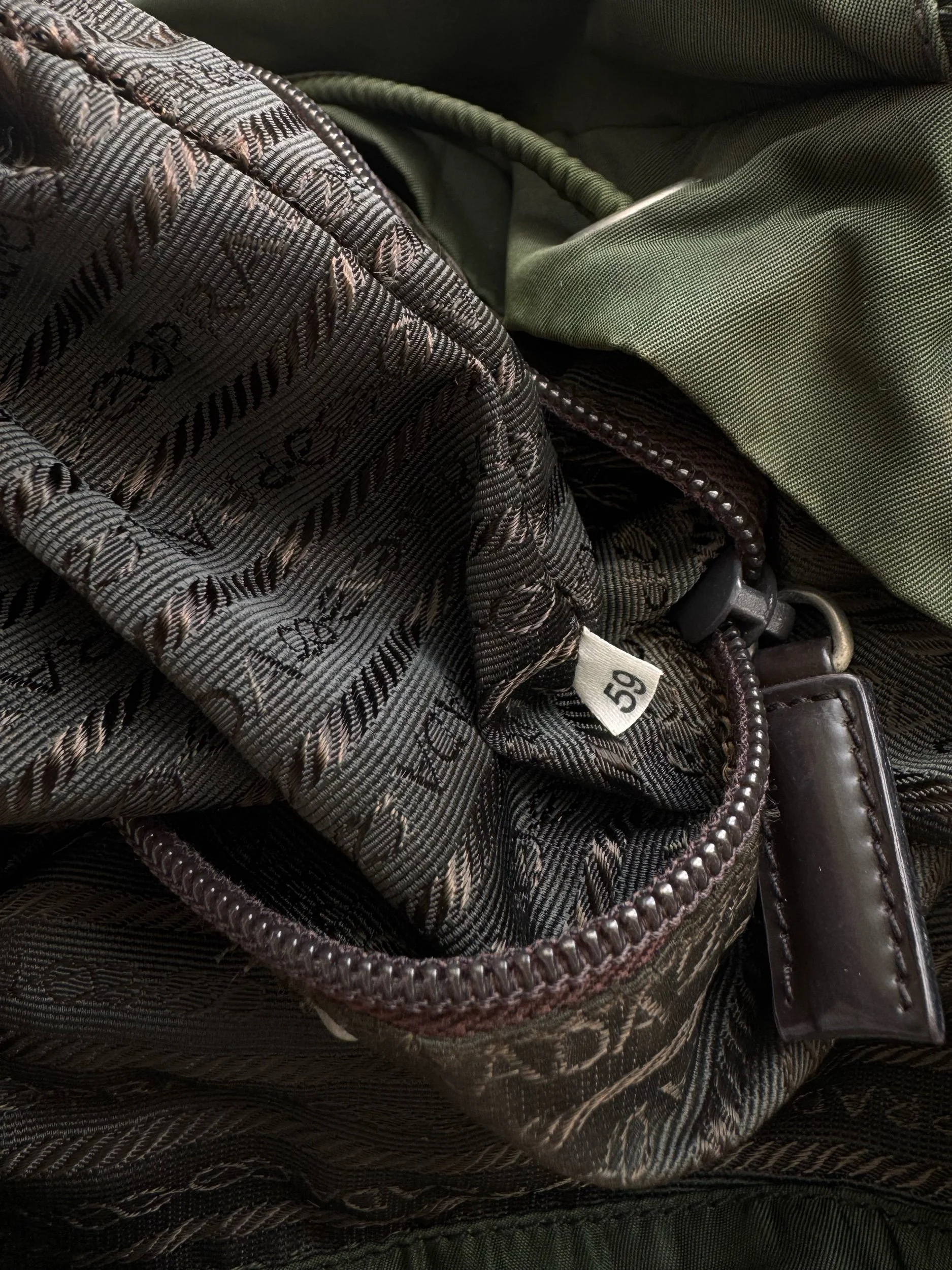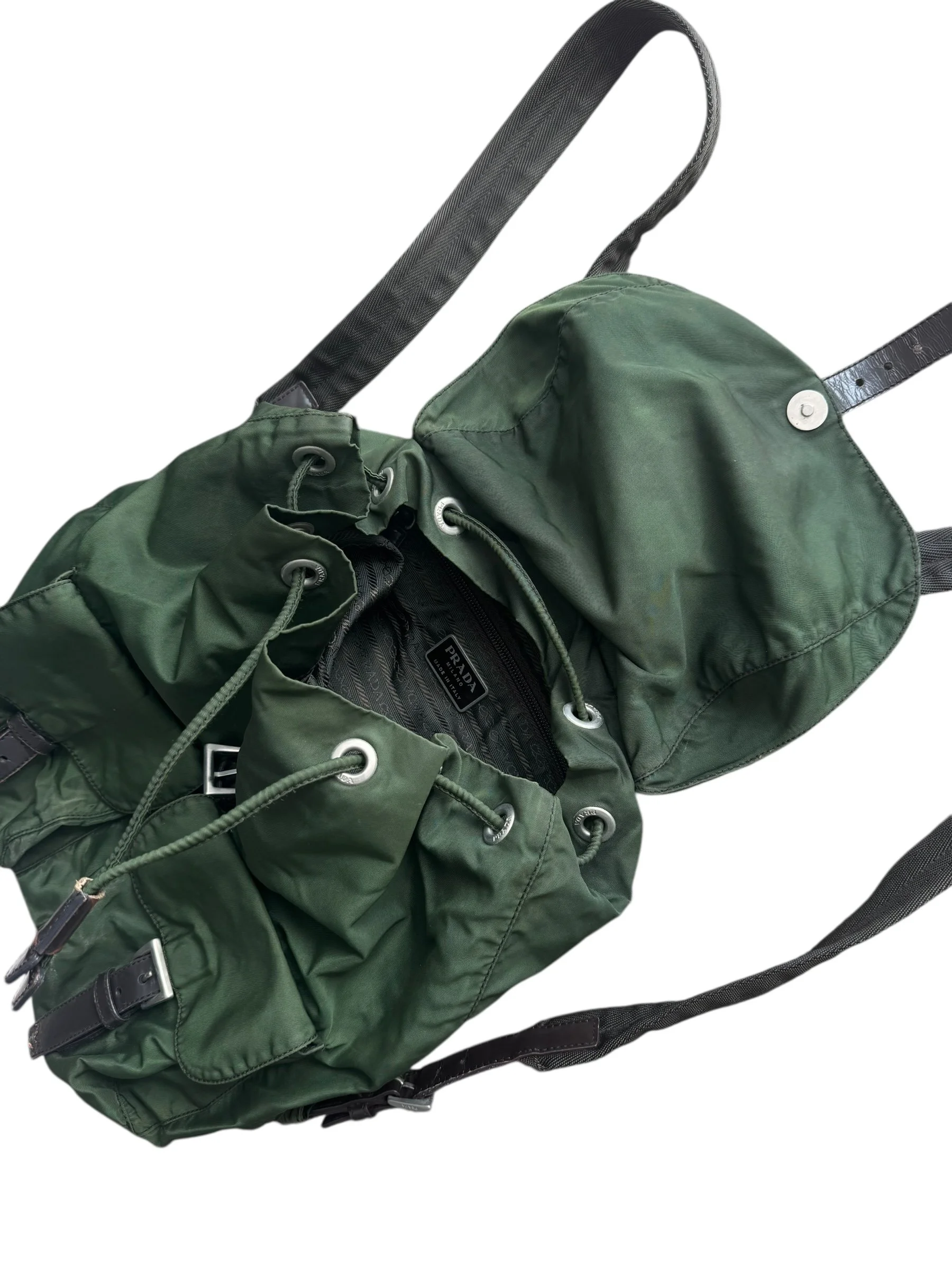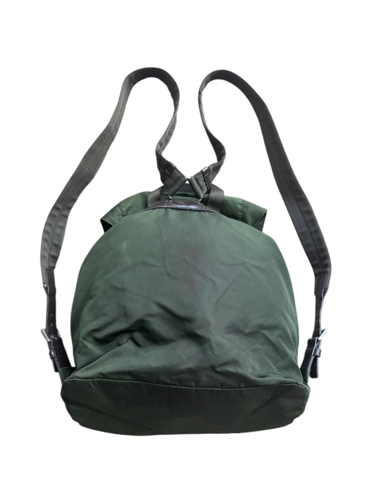 This beautiful backpack coming in the lovely ‘Ebano’ color way is constructed of nylon material and features the Prada triangular plate logo on the front side. One main storage compartment with two other small ones on the front side of the bag. The adjustable strap is constructed of leather, as well as all other straps on the storage compartments. All hardware is engraved with the Prada logo. In good condition with no flaws or damages