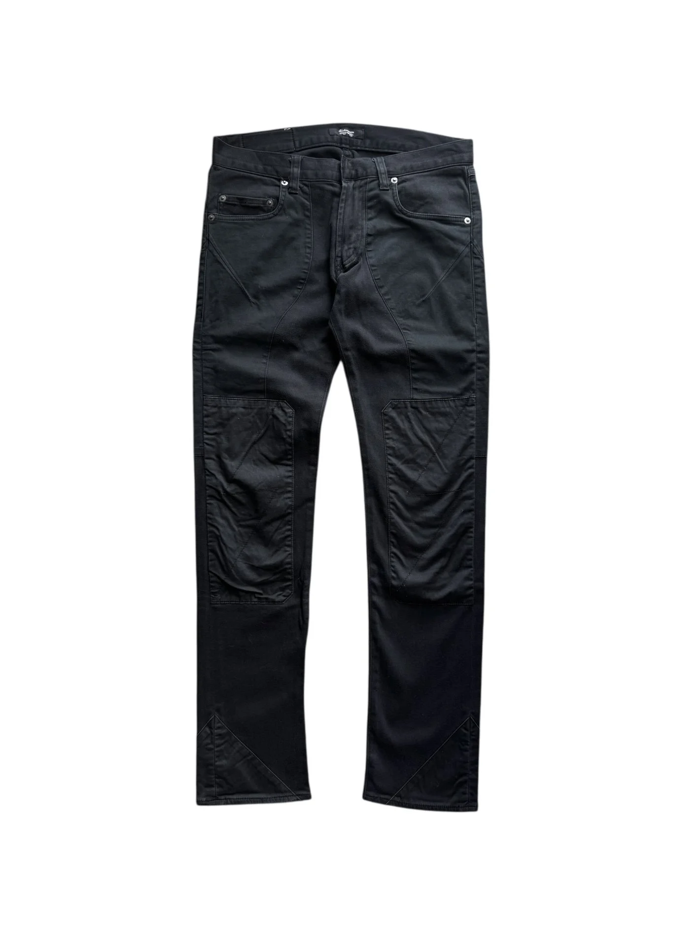 This beautiful pair of denim was released in the Spring/Summer 2009 “Grace/Neoboy & Poptonez” collection. These bottoms feature a paneled design in multiple areas as the knee has lightning bolt stitching panels and the back pocket additionally has a similar lightning bolt design seen throughout other denims in this collection. Cargo flap on right back pocket. “We Make Noise Not Clothes” white leather tag featured on the backside of the waitsline. Skinny silhouette, elastic materialI. In great condition with no major flaws or damages