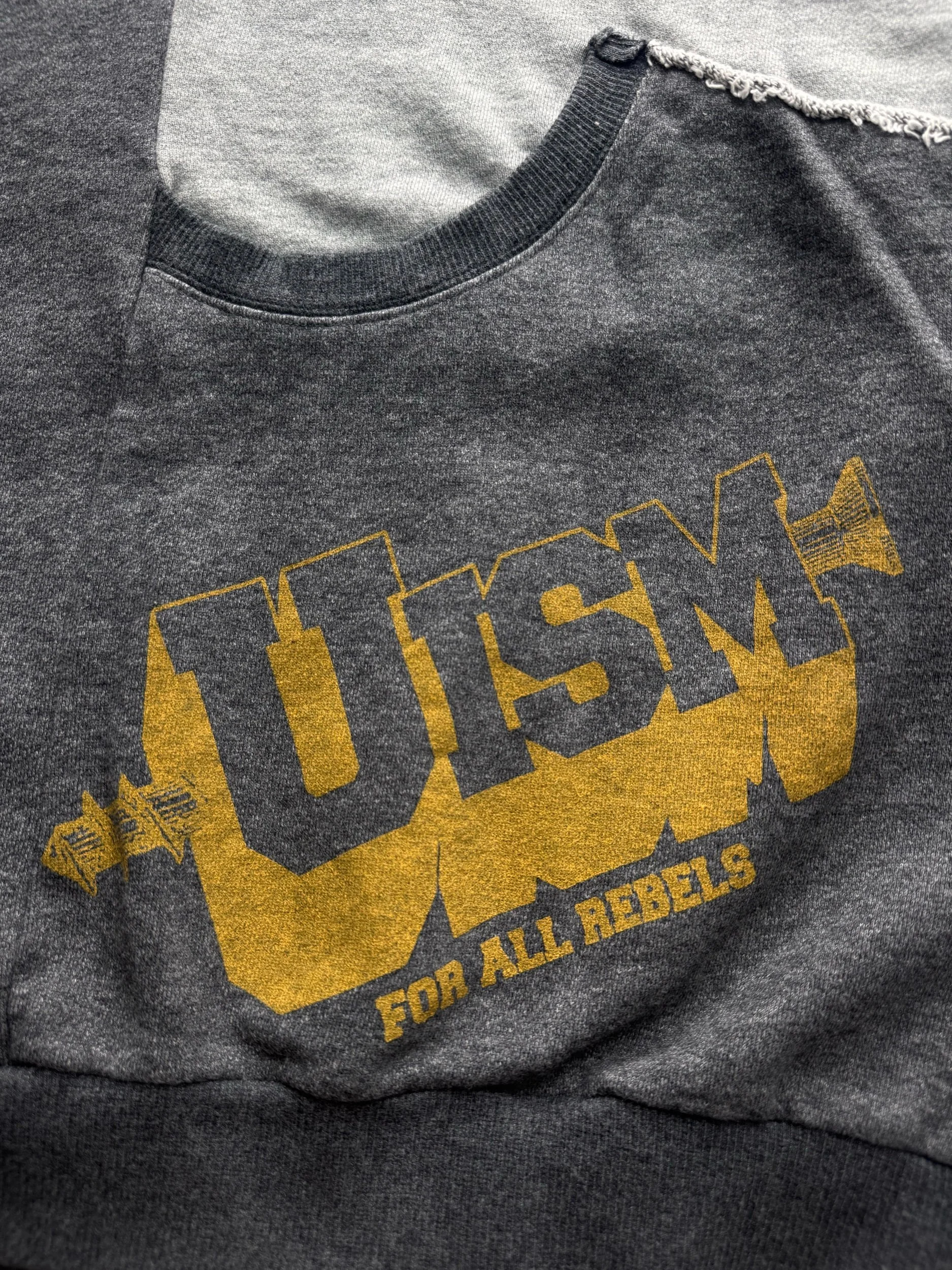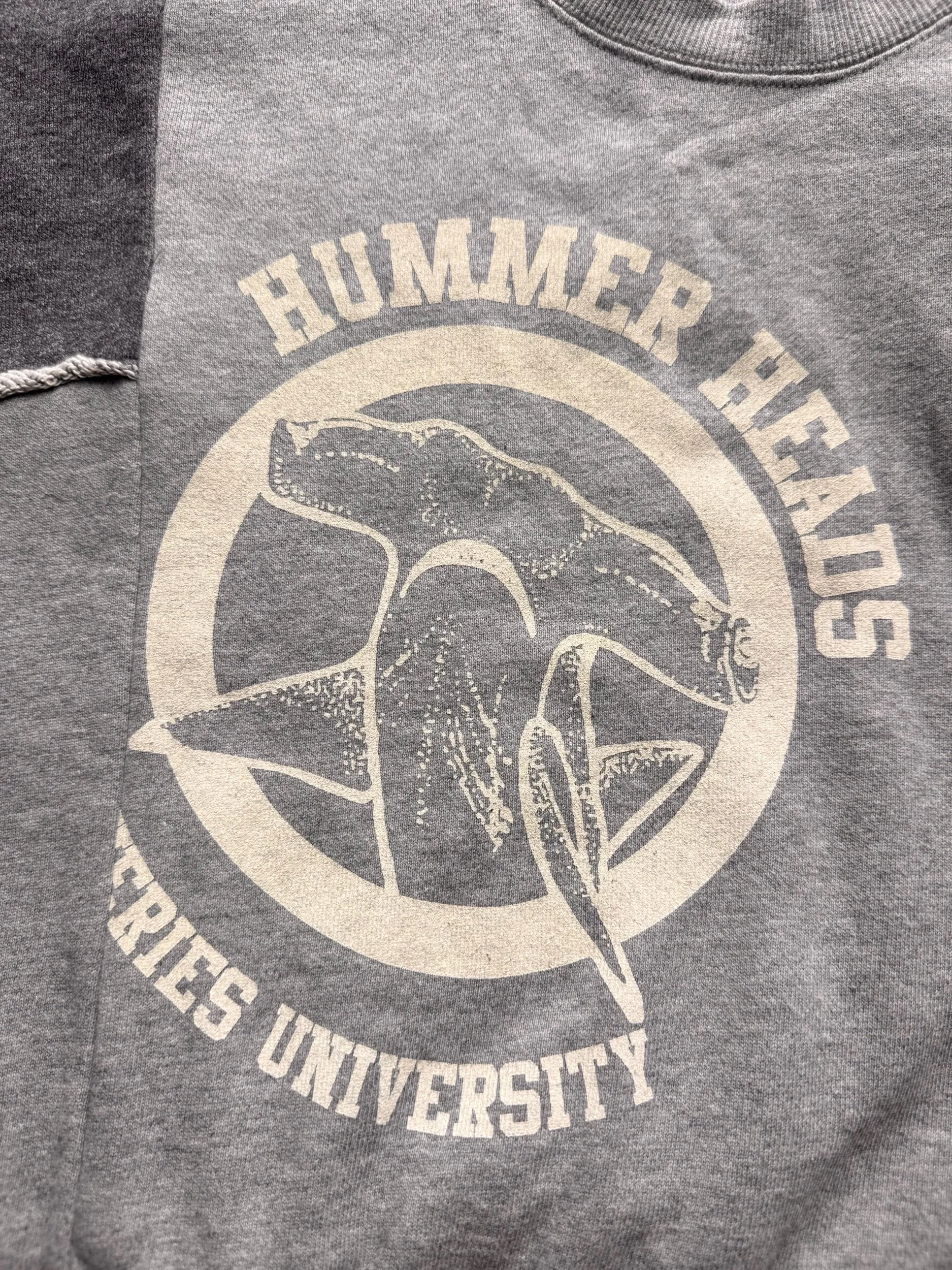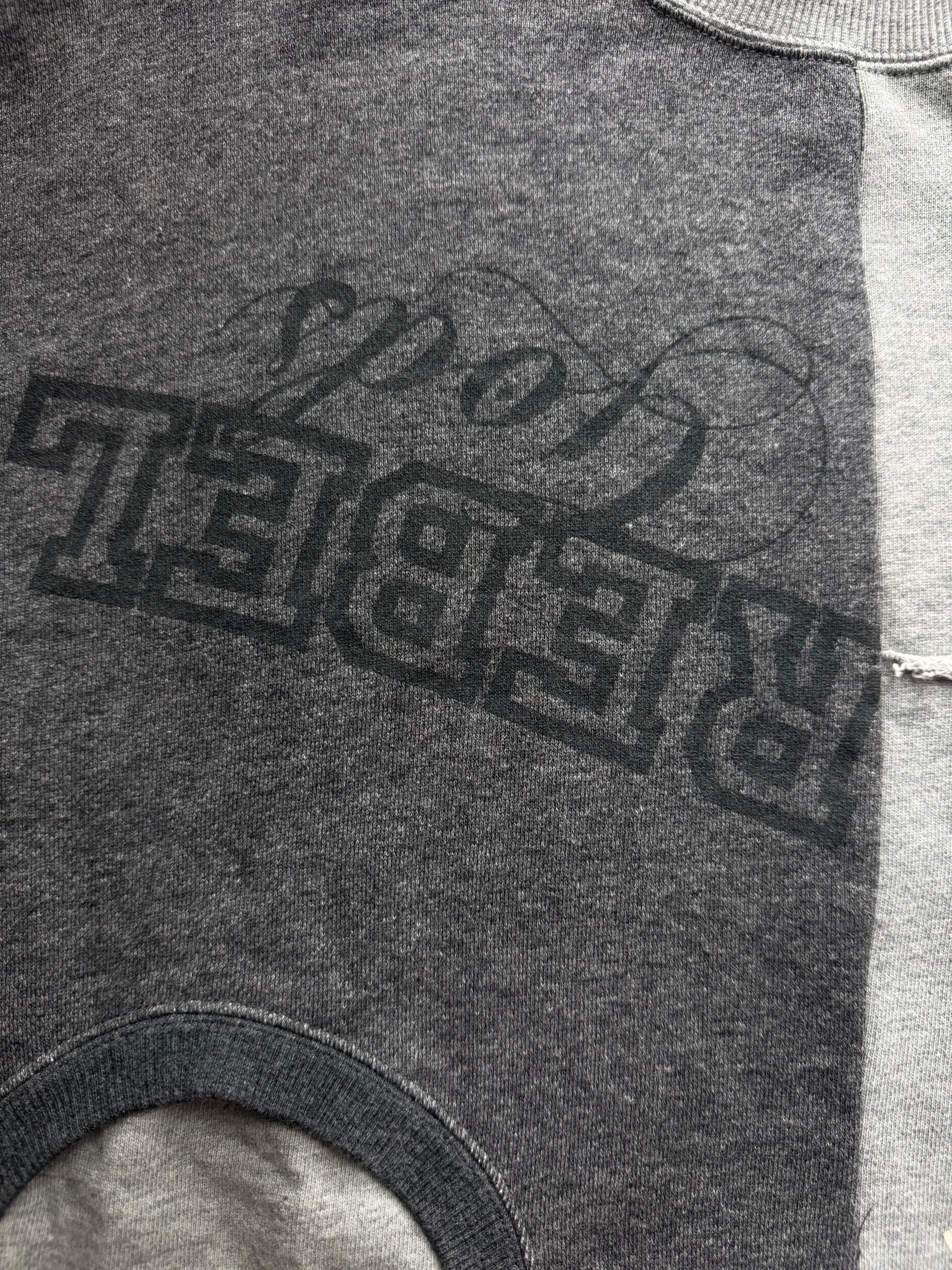 This gorgeous piece is from the Spring/Summer 2022 “Once in a Lifetime” collection; inspired by the 1984 film The Hunge, featuring a mix of gothic, romantic, and punk influences. Featuring a two-time grey color way, this crewneck features Jun Takahashi’s signature reconstructed look, with different crewnecks combined into one. Classic ‘Rebel Gods’ graphic & others throughout. In amazing condition with no major flaws or damages