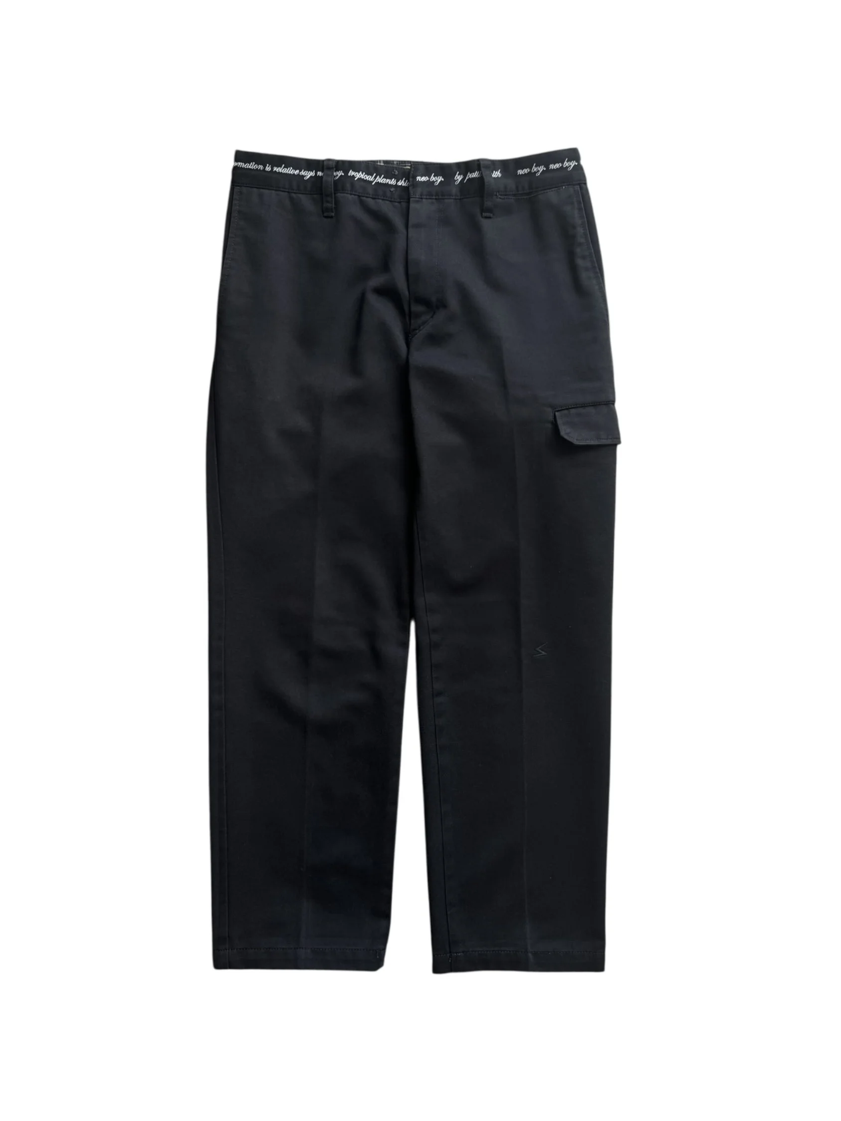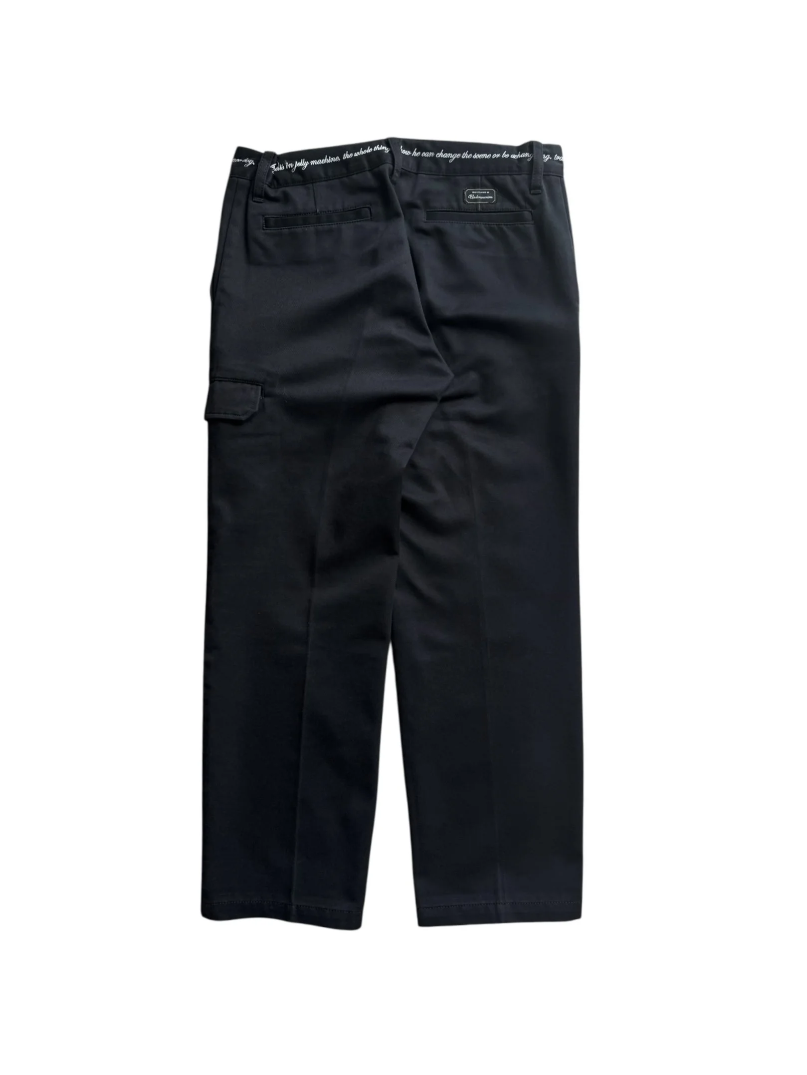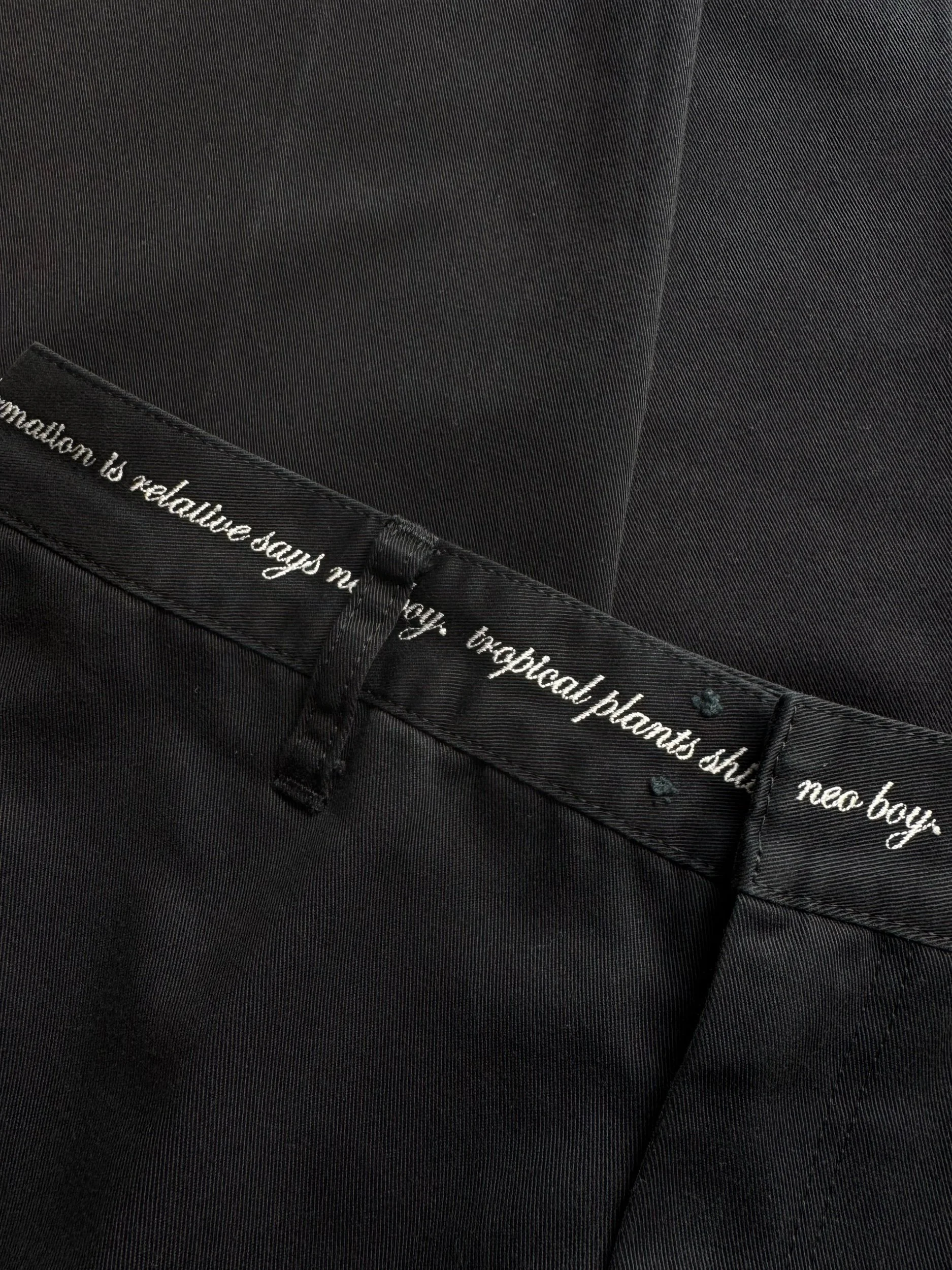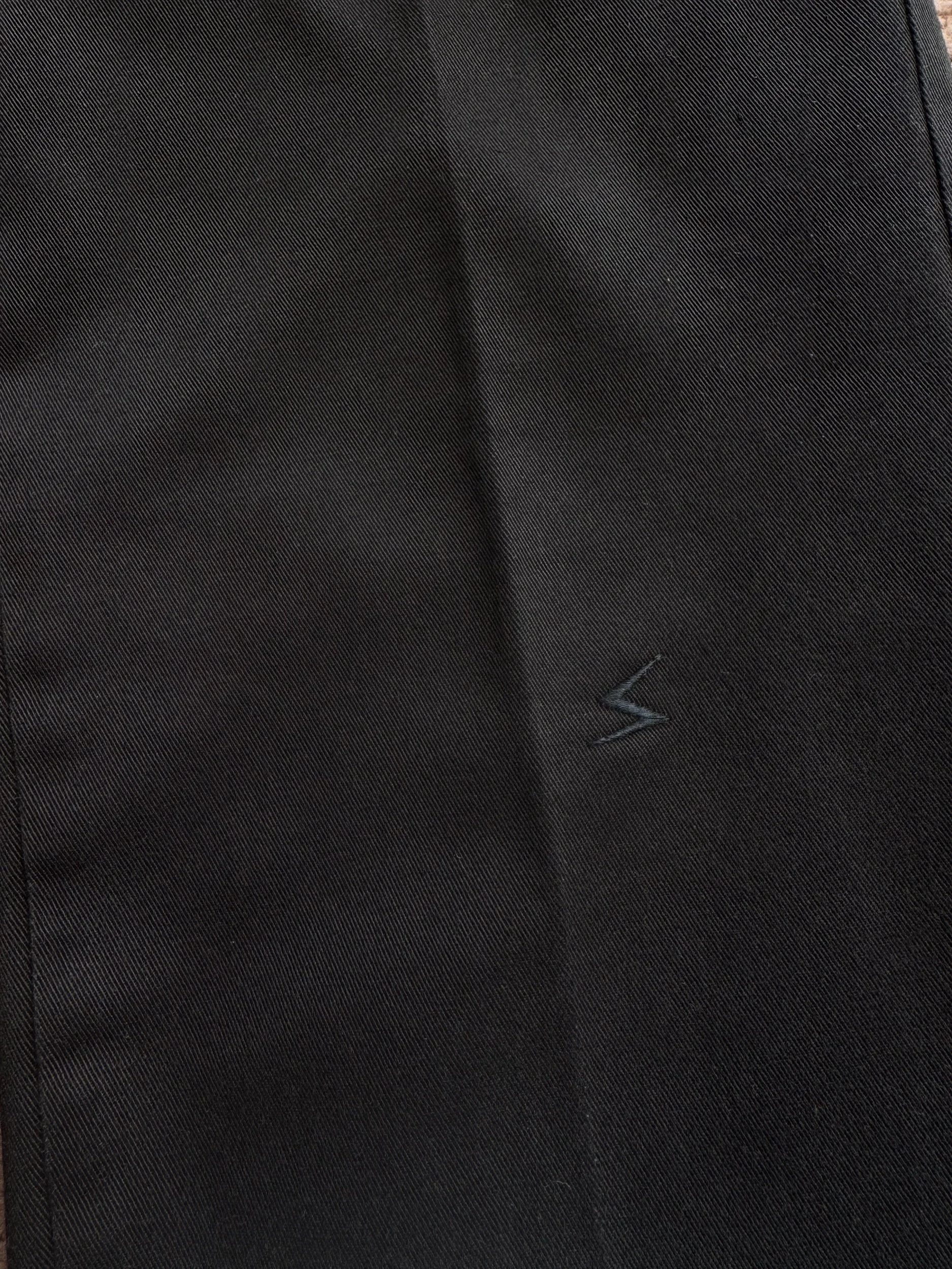 This beautiful pair of black slacks was released in the Spring/Summer 2009 “Grace/Neoboy & Poptonez” collection. Features unique embroidery detailing of iconic American singer & poet, Patti Smith’s poem on the waistline. Signature Patti Smith thunderbolt tattoo stitching on the left knee. In good condition with no major flaws. Altered waist (can be undone easily)