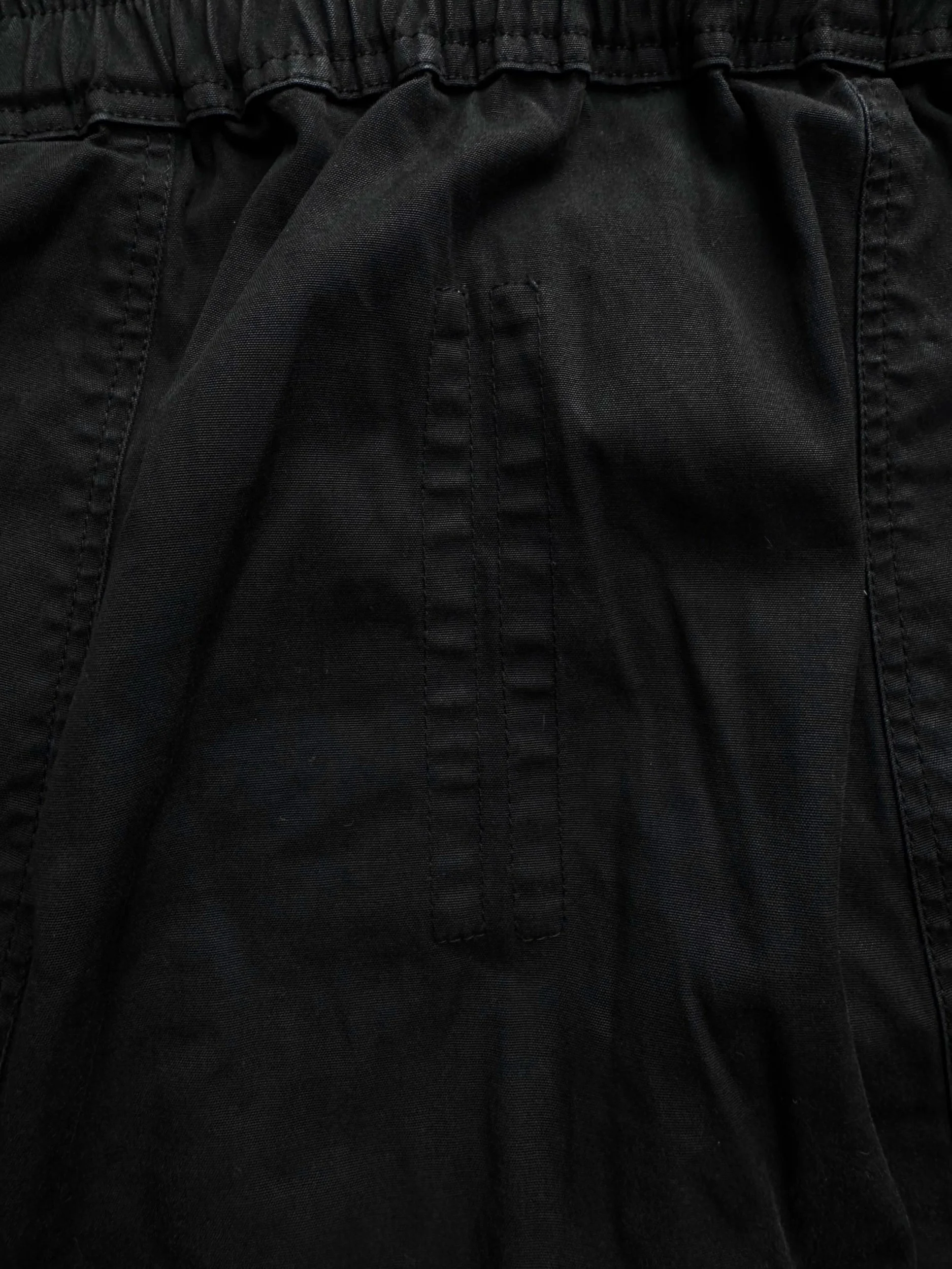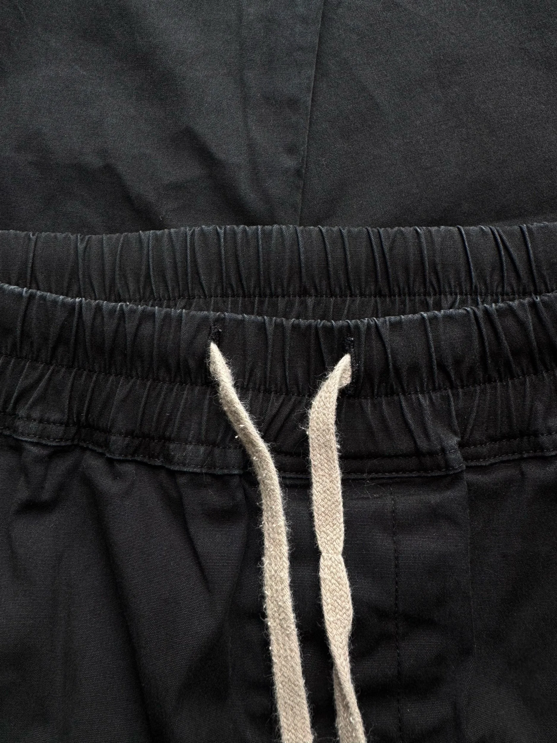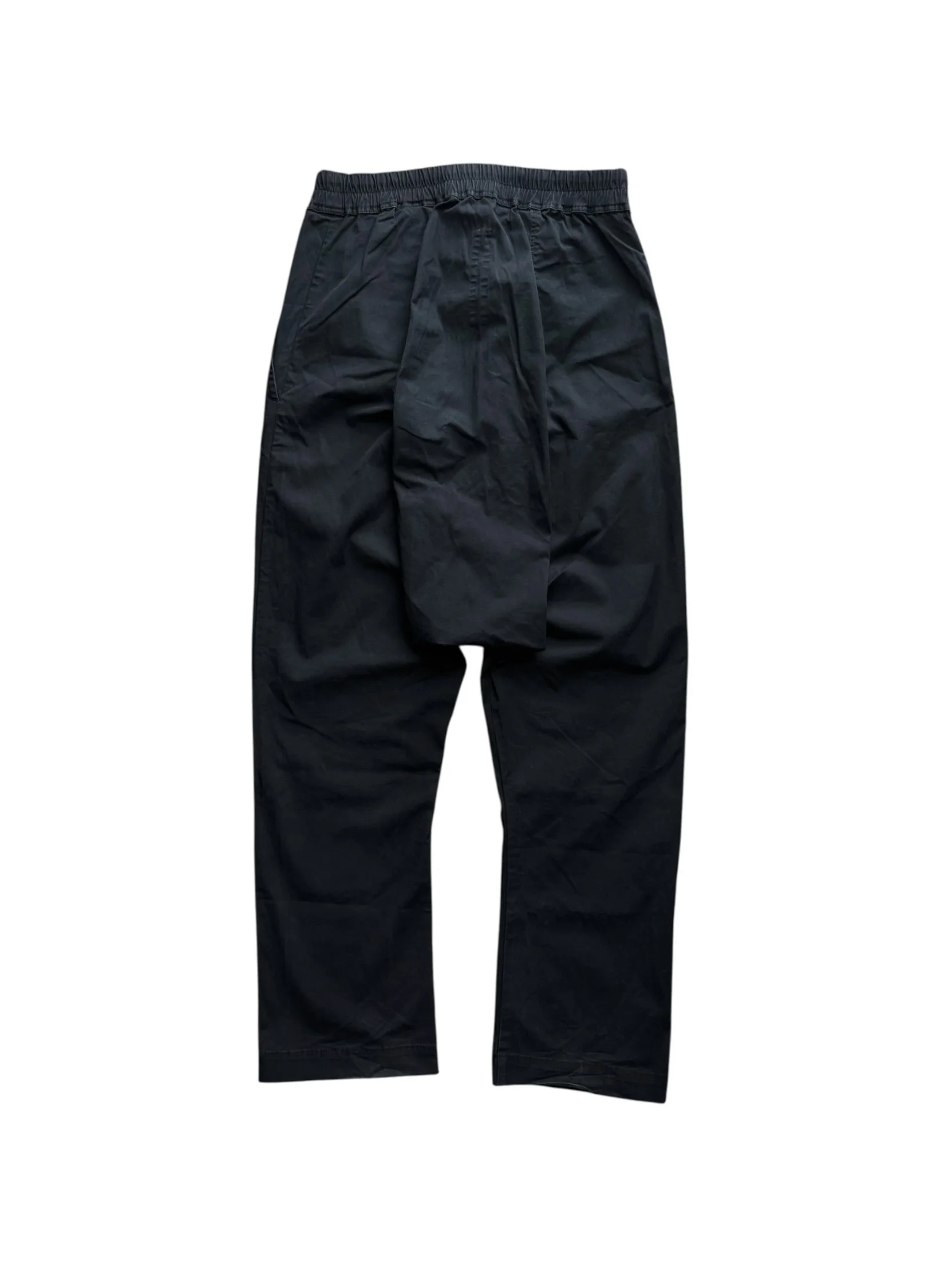 This beautiful Rick Owens bottoms part of the mainline is from the Fall/Winter 2016 “Mastodon” collection. Coming in black, these are in the classic pod silhouette, with the signature drop crotch and elastic waistband with the elongated Rick Owens drawstrings. Tagged a size 36, fits like a medium. In great condition with no major flaws or damages