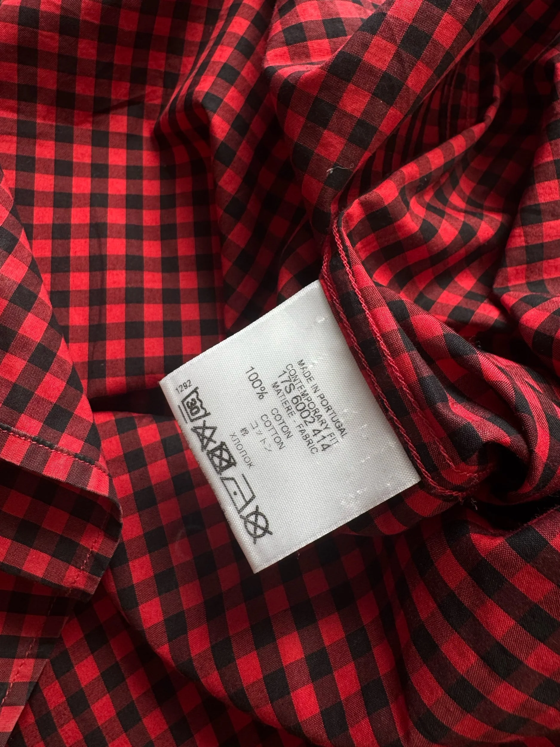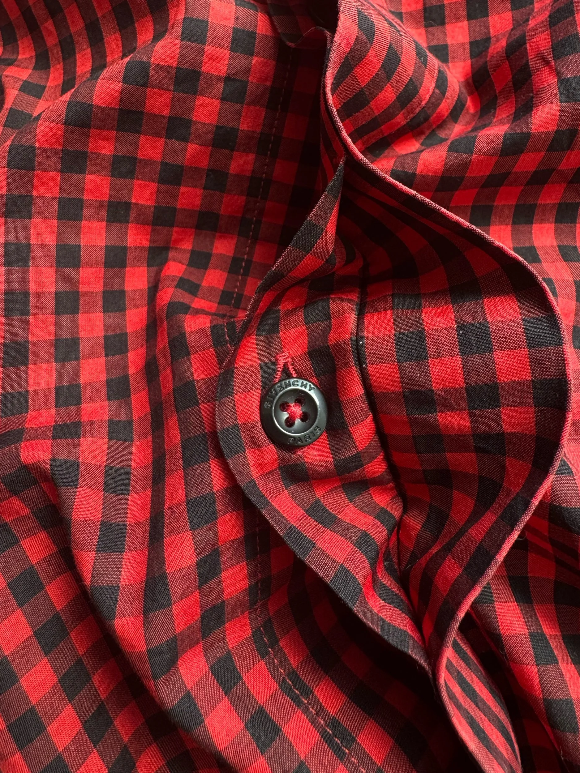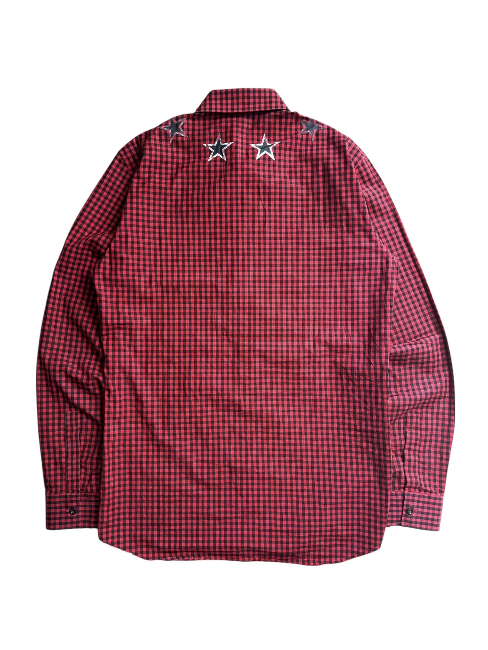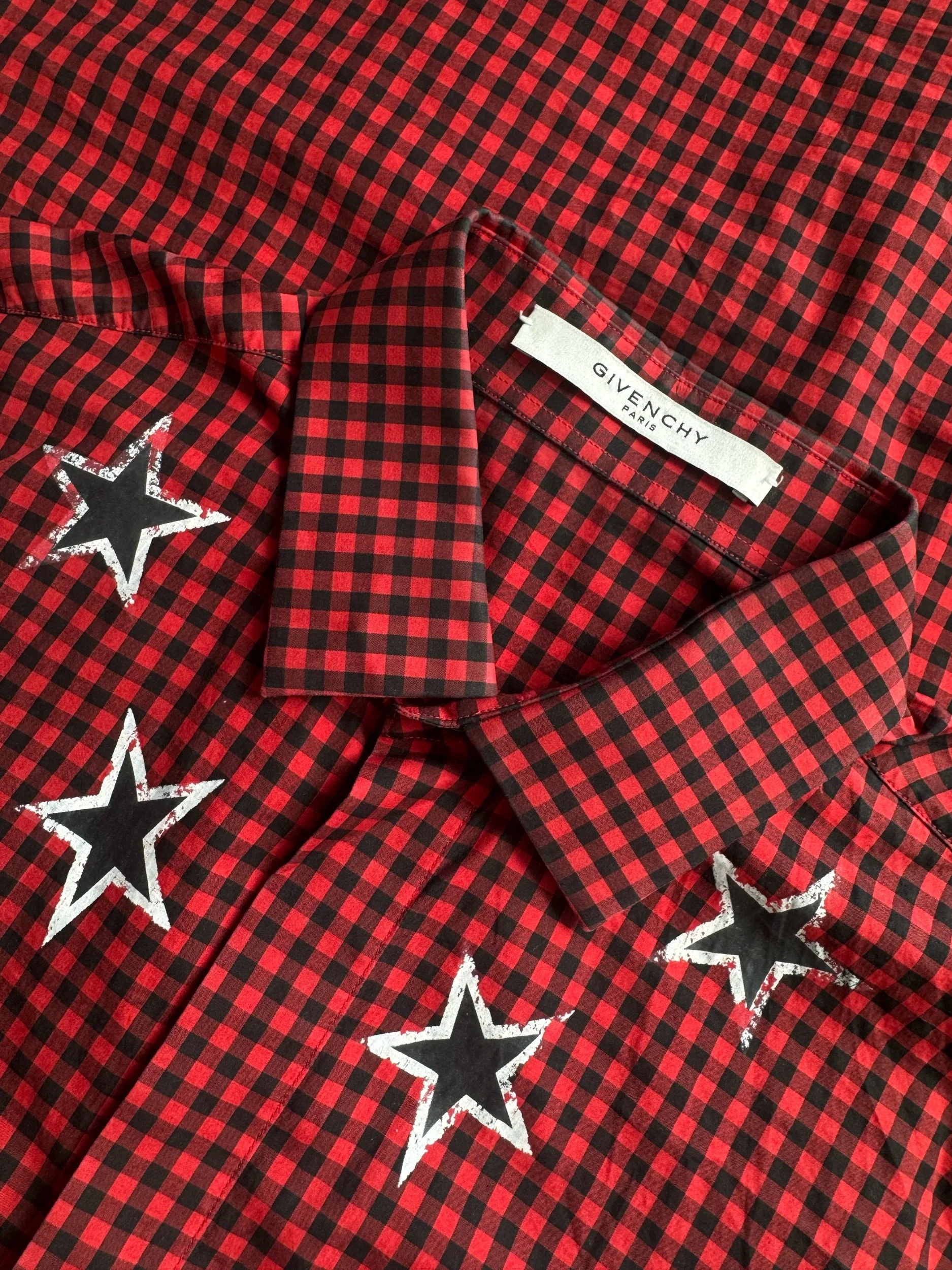 This gorgeous botton up was apart of Tisci’s last collection from Spring/Summer 2017. Red/black plaid pattern button-up shirt with the signature four star prints around the collar on both the front and rear. Iconic piece kept in good condition with some fading on couple stars from aging