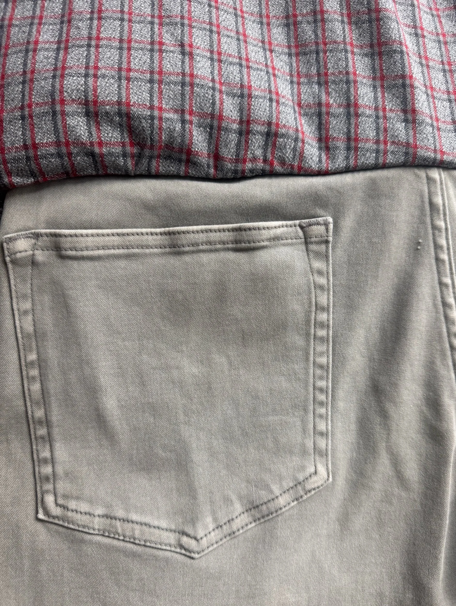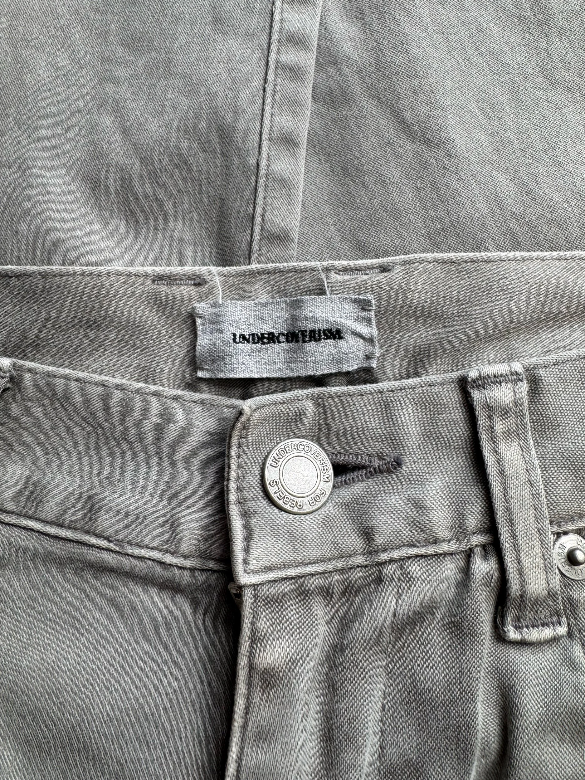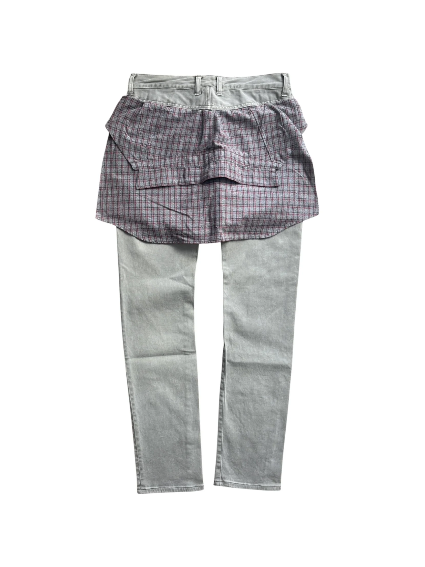 From Spring/Summer 2012 “Open Strings”, these light grey lightweight denim has a unique construction with a two-piece flannel cut sewn onto the rear of the denim. In good condition with no flaws or damages