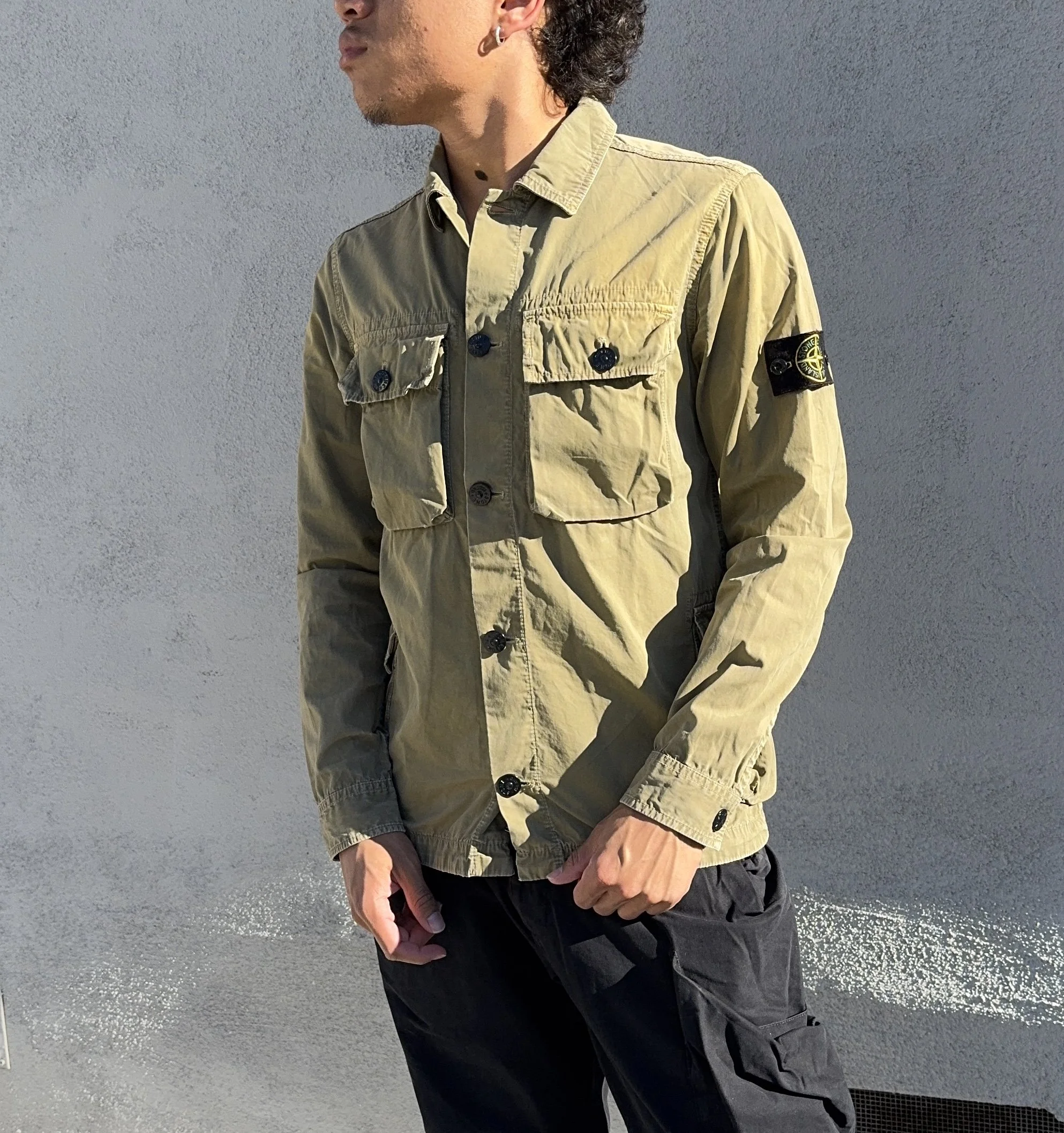 Stone Island FW15 Khaki Military Cargo Button-Up Shirt