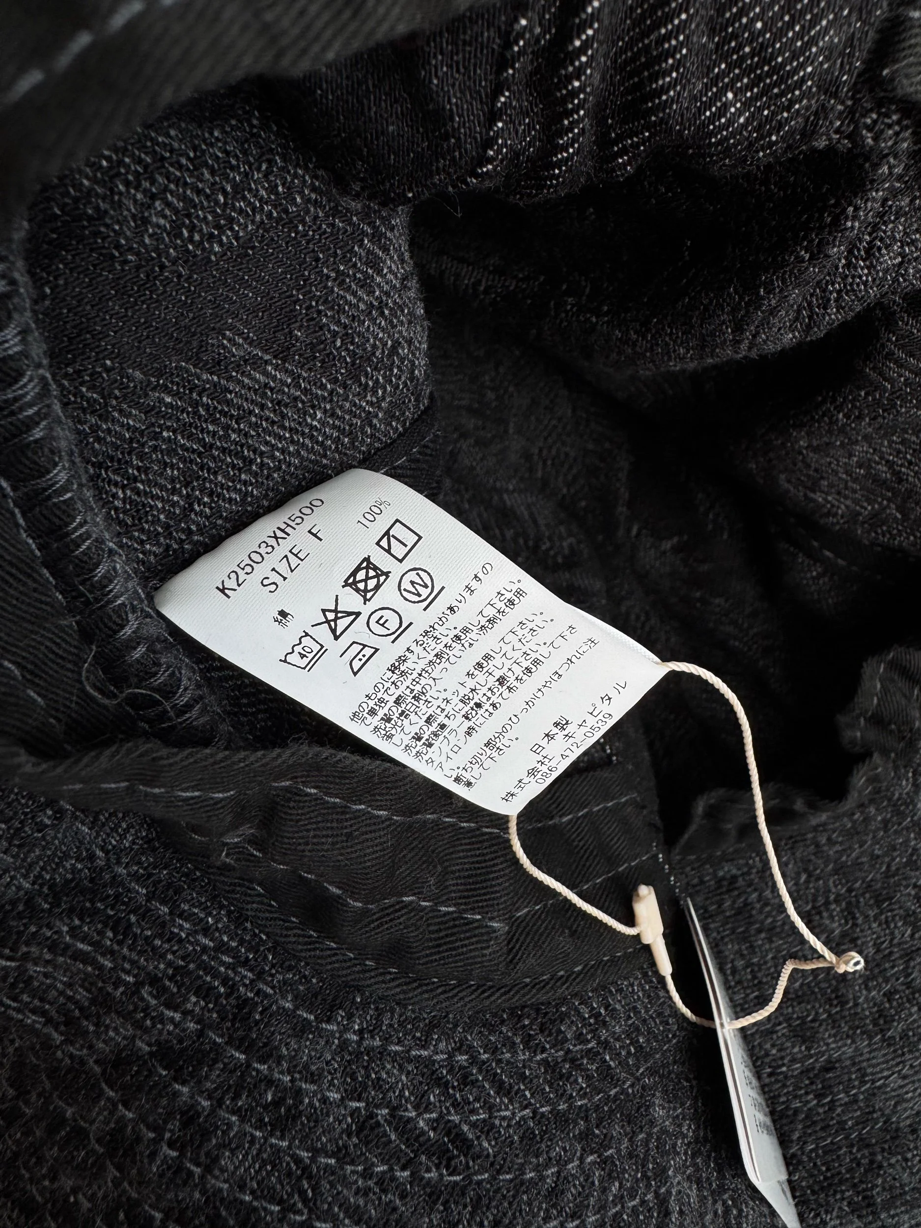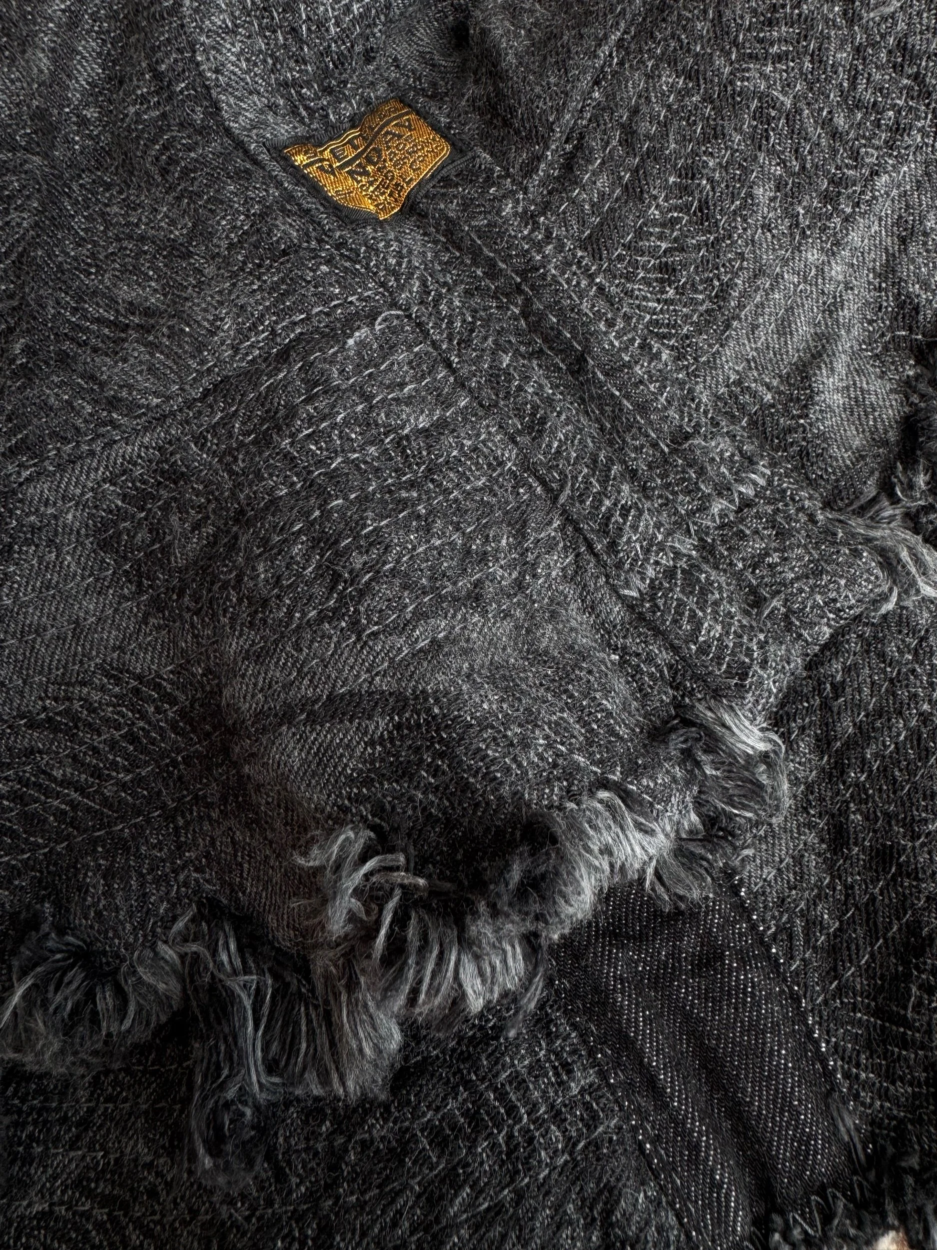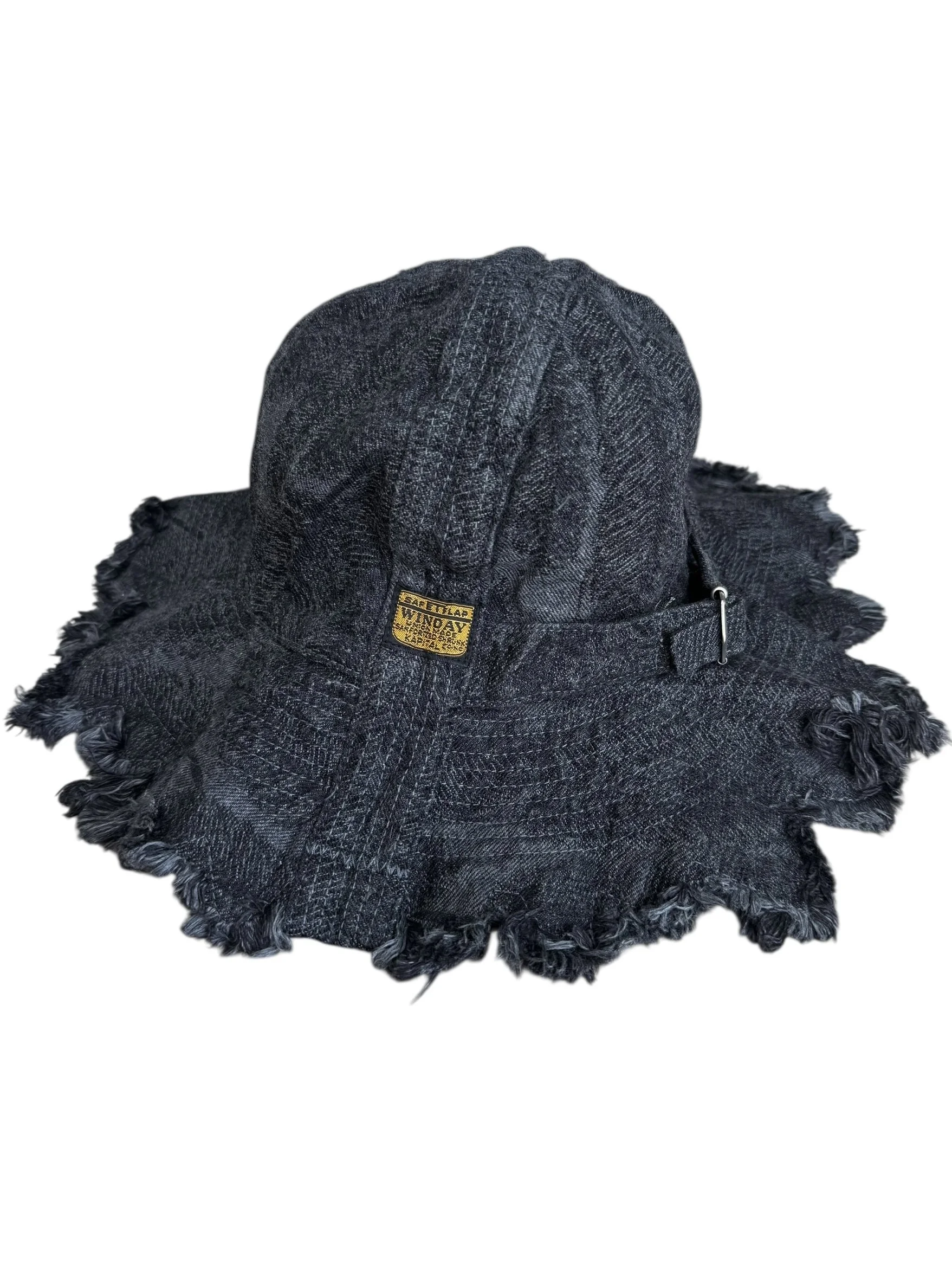 This unique ‘tulip’ silhouette hat is fully constructed out of 12oz denim, this hat features the usage of jacquard denim to express the beautiful blue feathers of the magpie (type of bird) in three dimensions. The brim is characterized by a frilly and glamorous appearance, with the edges finished with a cut-off style, expressing the light and airy atmosphere of feathers. In brand new condition with no flaws or damages, purchased from Kapital Tokyo (comes in original packaging)