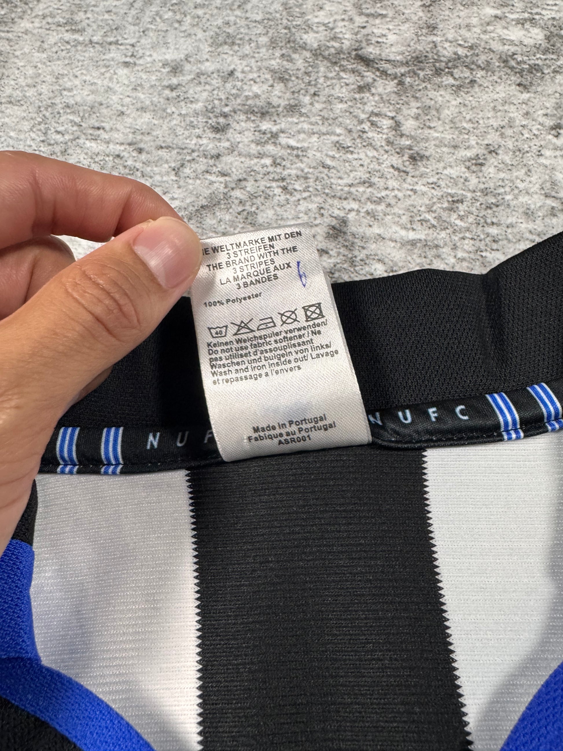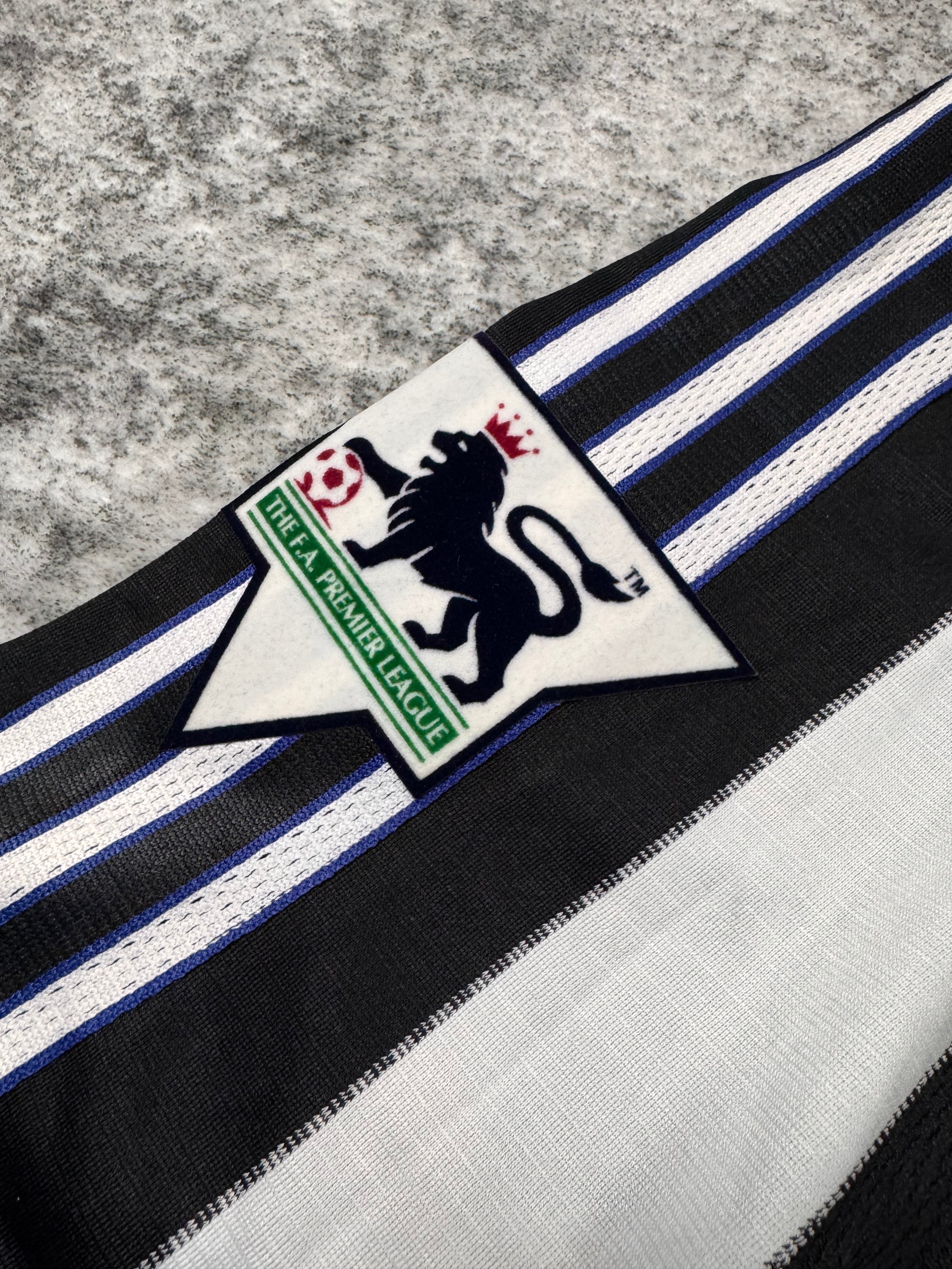 Absolute classic of a legends jersey; New Castle home jersey from the 1999-2000 season with the signature white/black stripe and Alan Shearer’s name and iconic #9 on the rear. Kept in great condition with no major flaws or damages