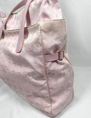 2000s Chanel Travel Line ‘CC’ Jacquard Pink Nylon Giant Tote Bag