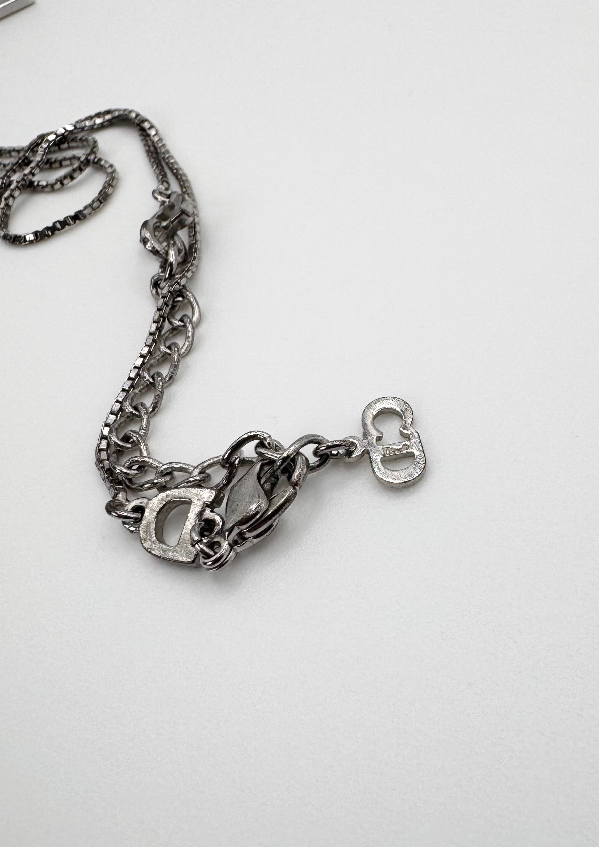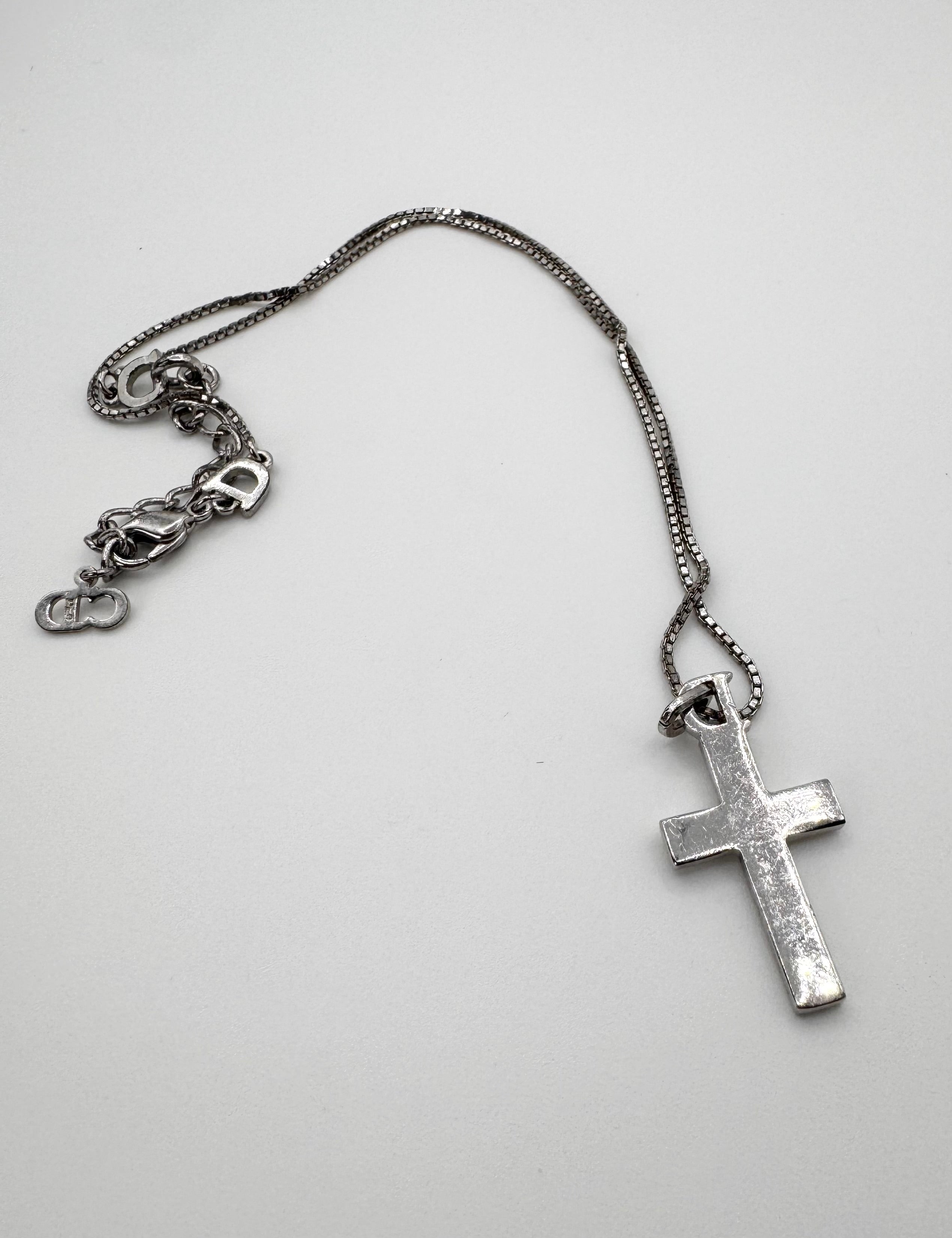 2000s Christian Dior Vintage ‘D’ Cross Silver Necklace
