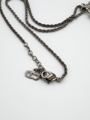 2000s Christian Dior ‘Crystalized Emblem’ Logo Silver Necklace
