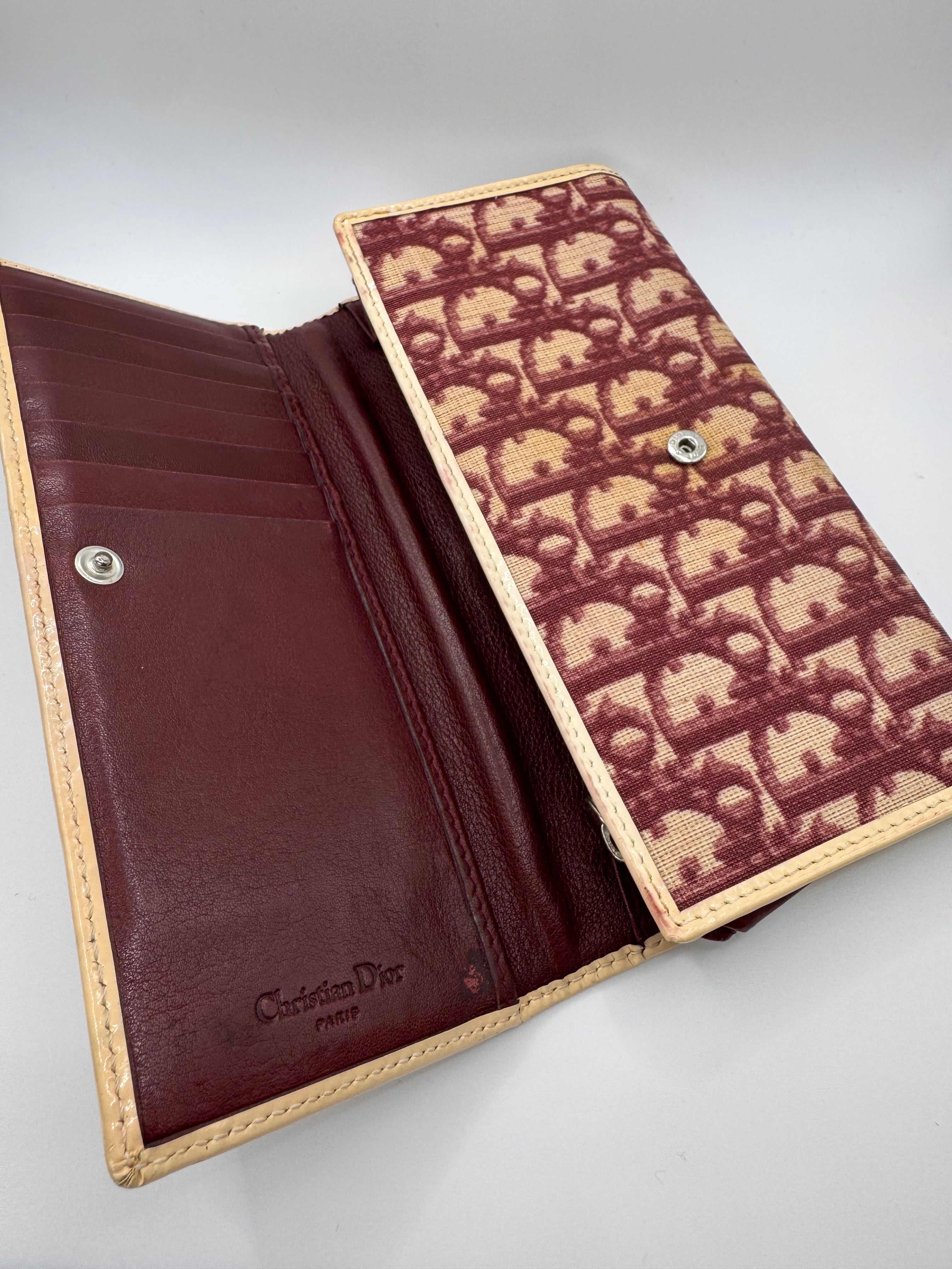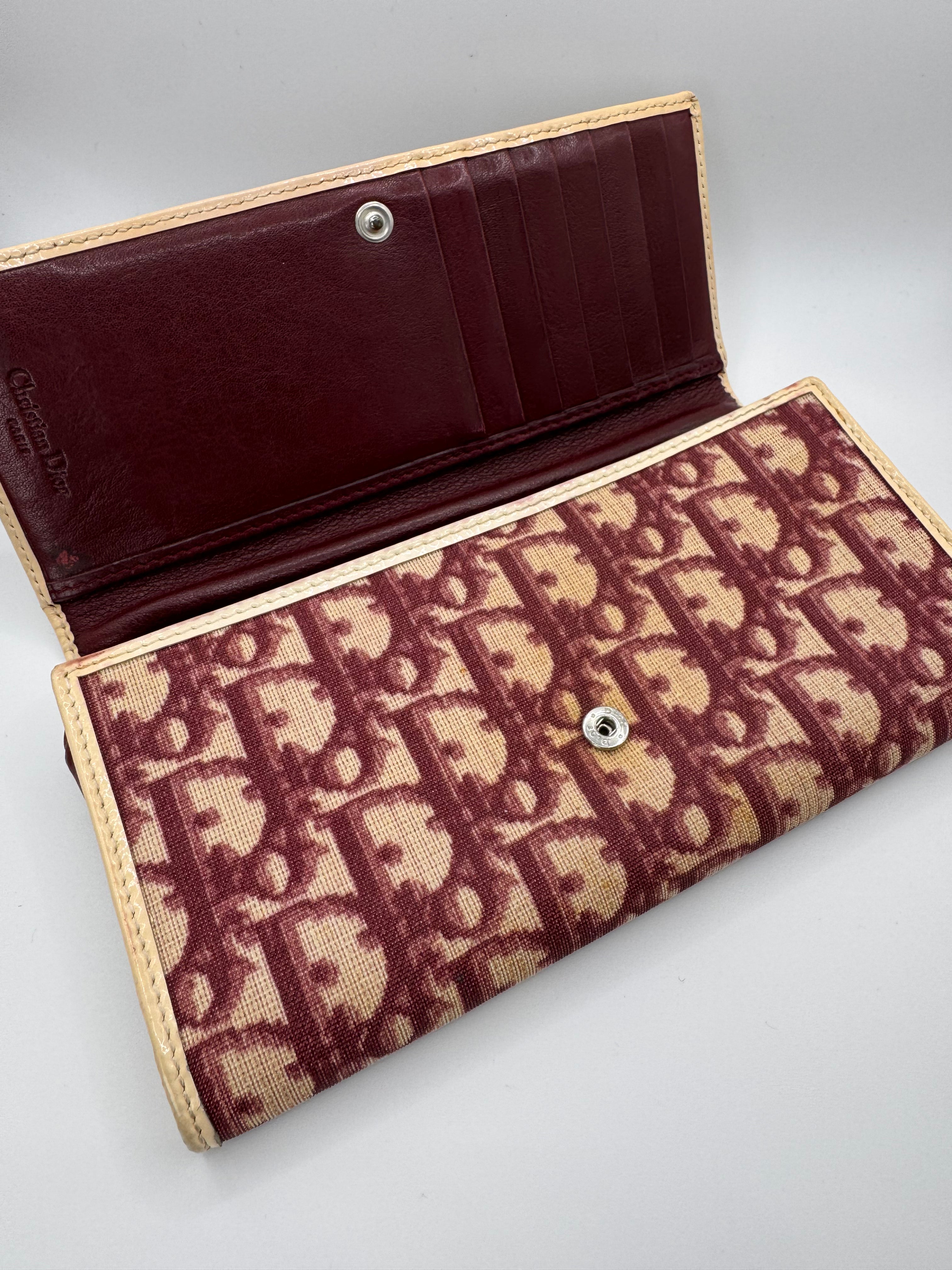 2000s Christian Dior 'Trotter' 1 Burgundy Monogram Wallet