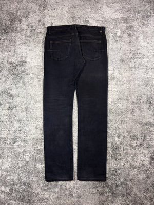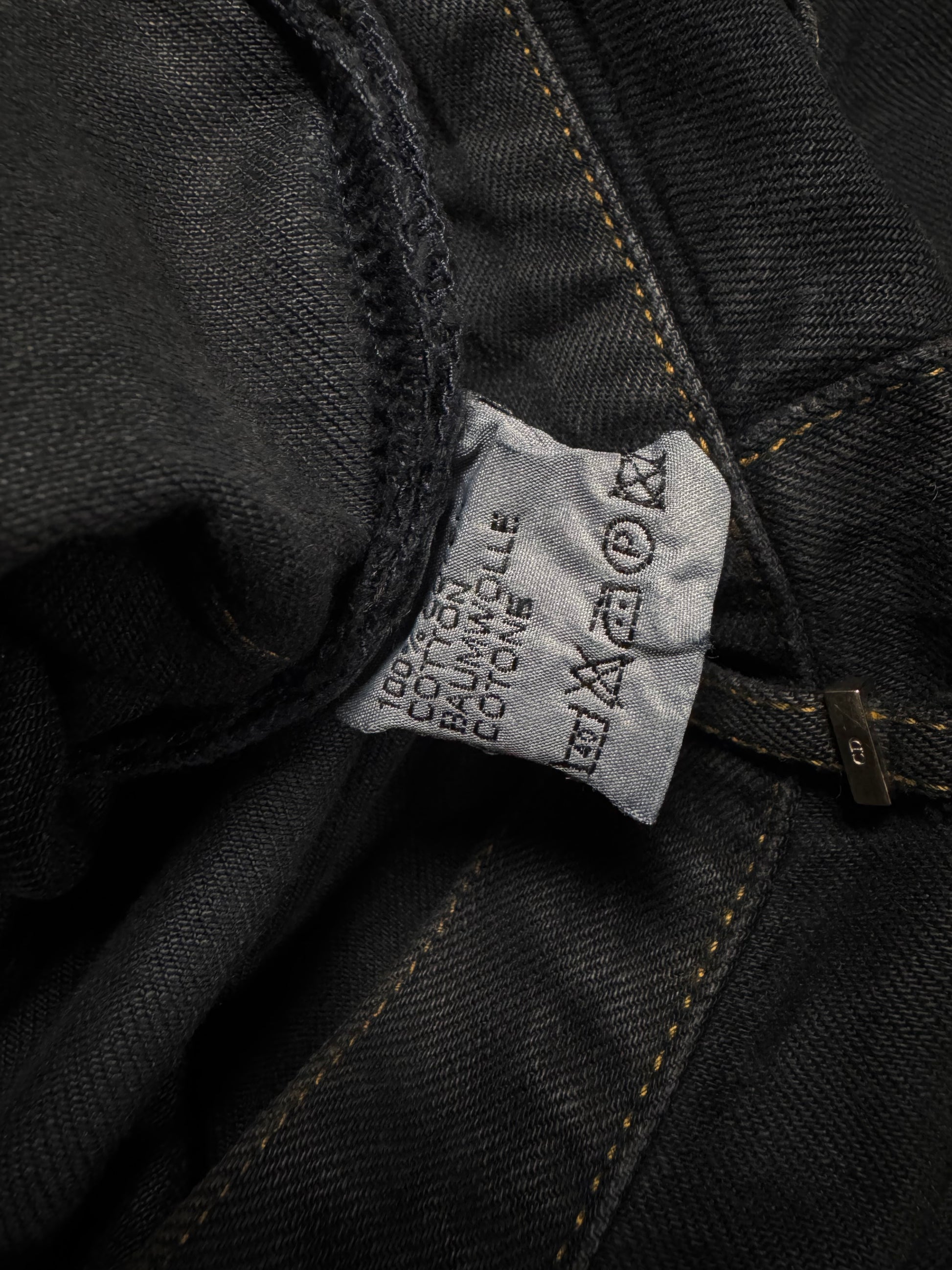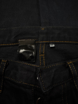 Classic pair of Dior Homme denim from the early 2000s during the Hedi Slimane era. Featuring a deep black surface coating over an indigo base that gradually reveals navy tones with wear. Cut in a slim, elongated silhouette, the jeans reflect Slimane’s mid-2000s approach to sharp proportions and rock-influenced minimalism. In fantastic condition for its age, no major flaws or damages