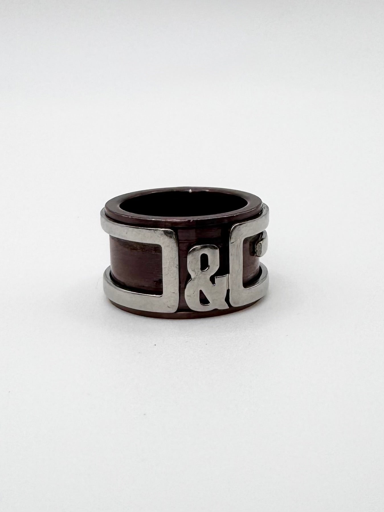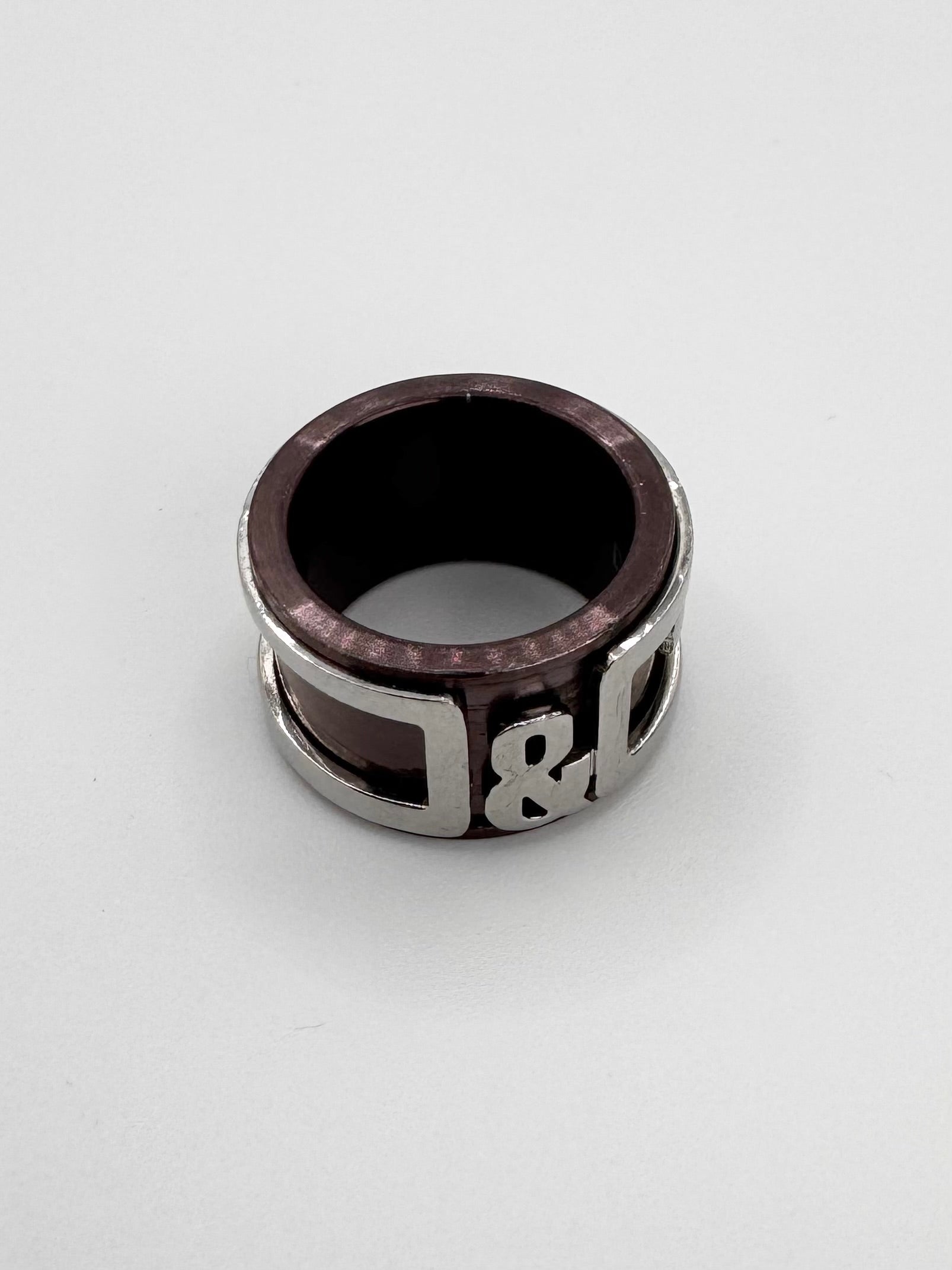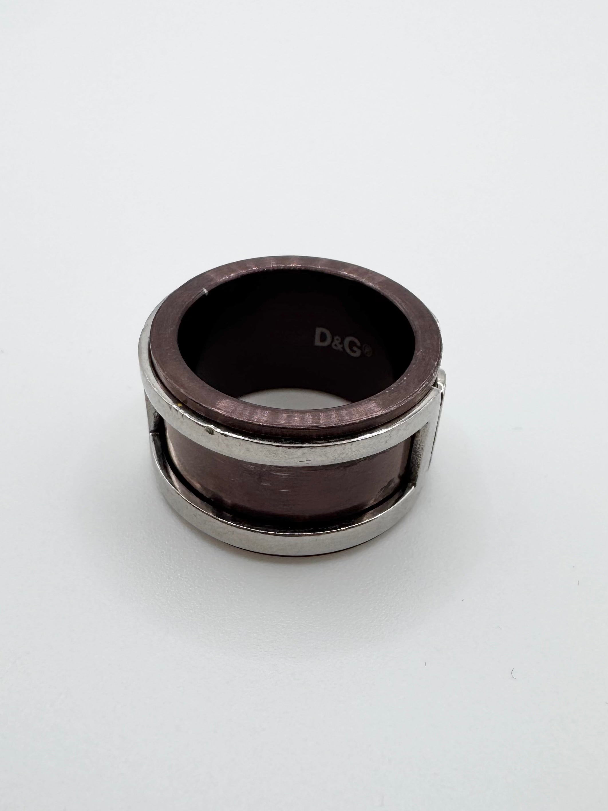 From the early 2000s, this classic ring features a silver ‘D&G’ logo around a bronze base that is mobile and can rotate. In very good condition with no major flaws or damages (slight damage in the inner part)