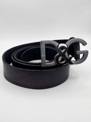 2000s Dolce & Gabbana ‘Graphite-Textured’ DG Buckle Leather Belt