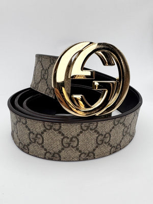 This early-2000s Gucci belt features the iconic GG Supreme canvas paired with a bold gold-tone Interlocking G buckle, a hallmark of the Tom Ford era. Crafted in Italy, the design balances heritage monogramming with the sensual, logo-forward aesthetic that defined Gucci at the turn of the millennium. Great condition, top quality for age