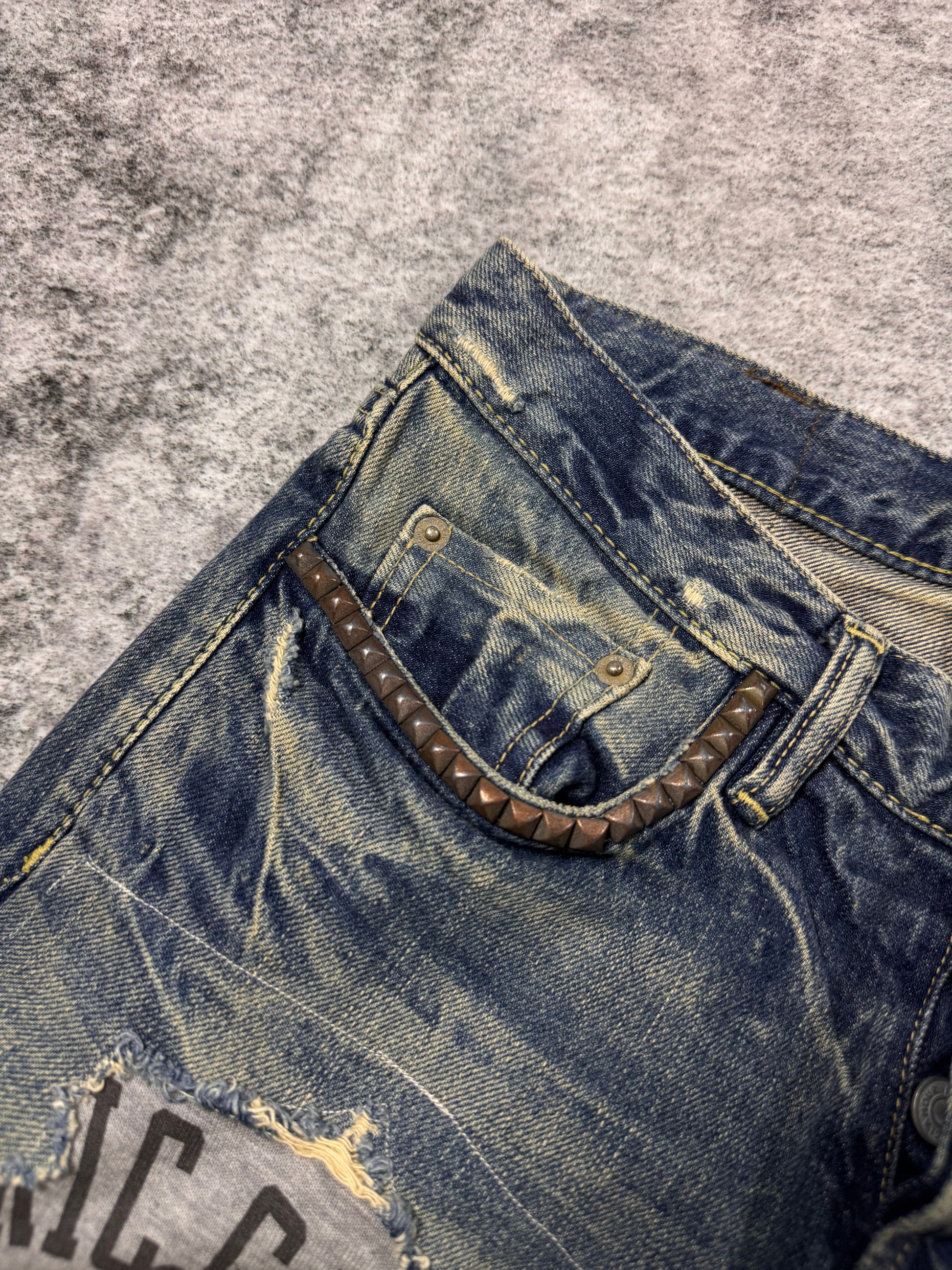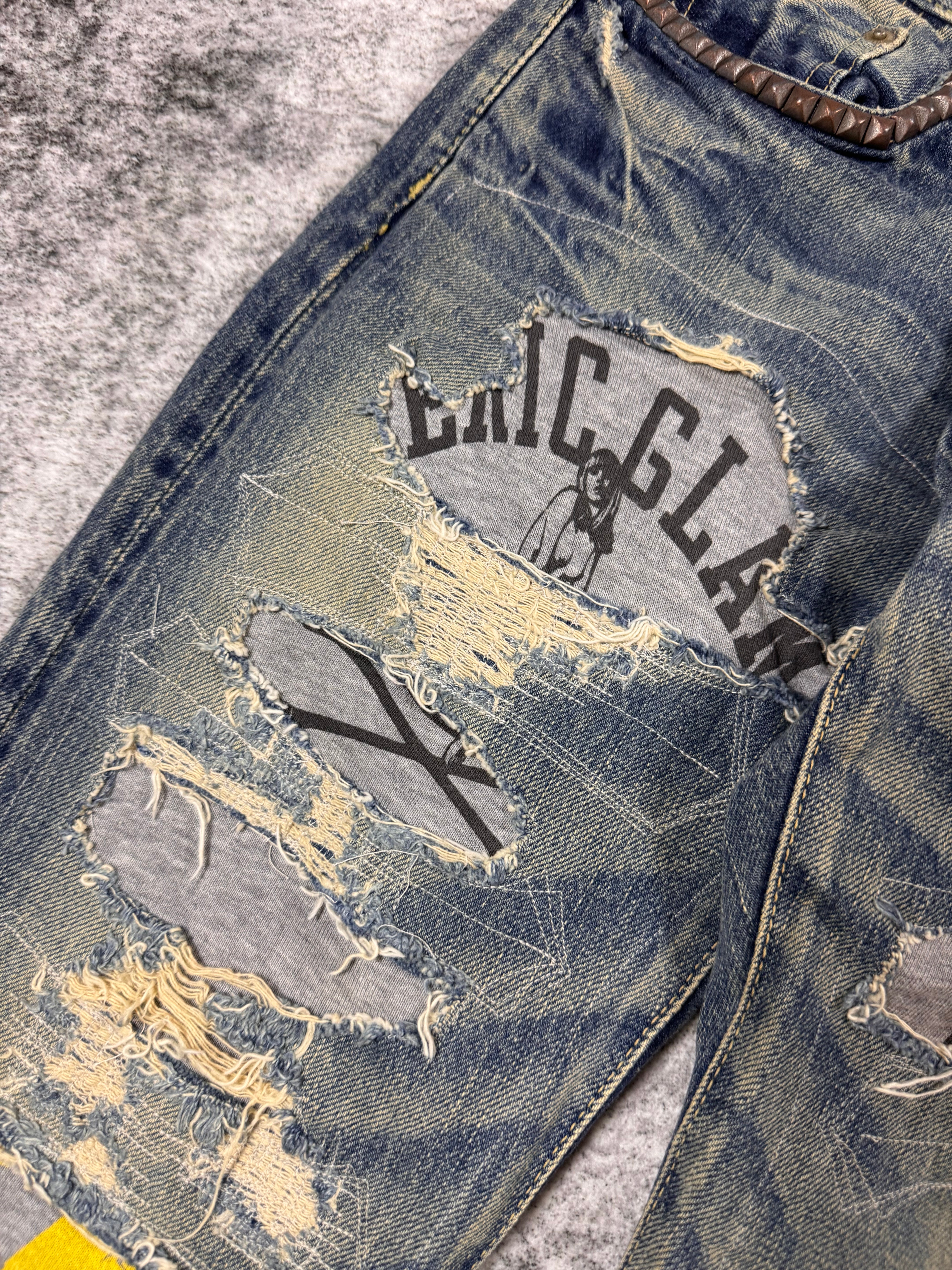 2000s Hysteric Glamour Hybrid ‘Showgirl’ Studded Distress Denim
