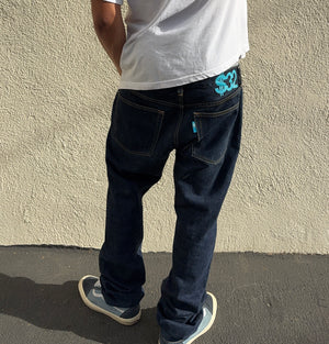 2000s Swagger Light Blue '$' Deep Indigo Wash Denim