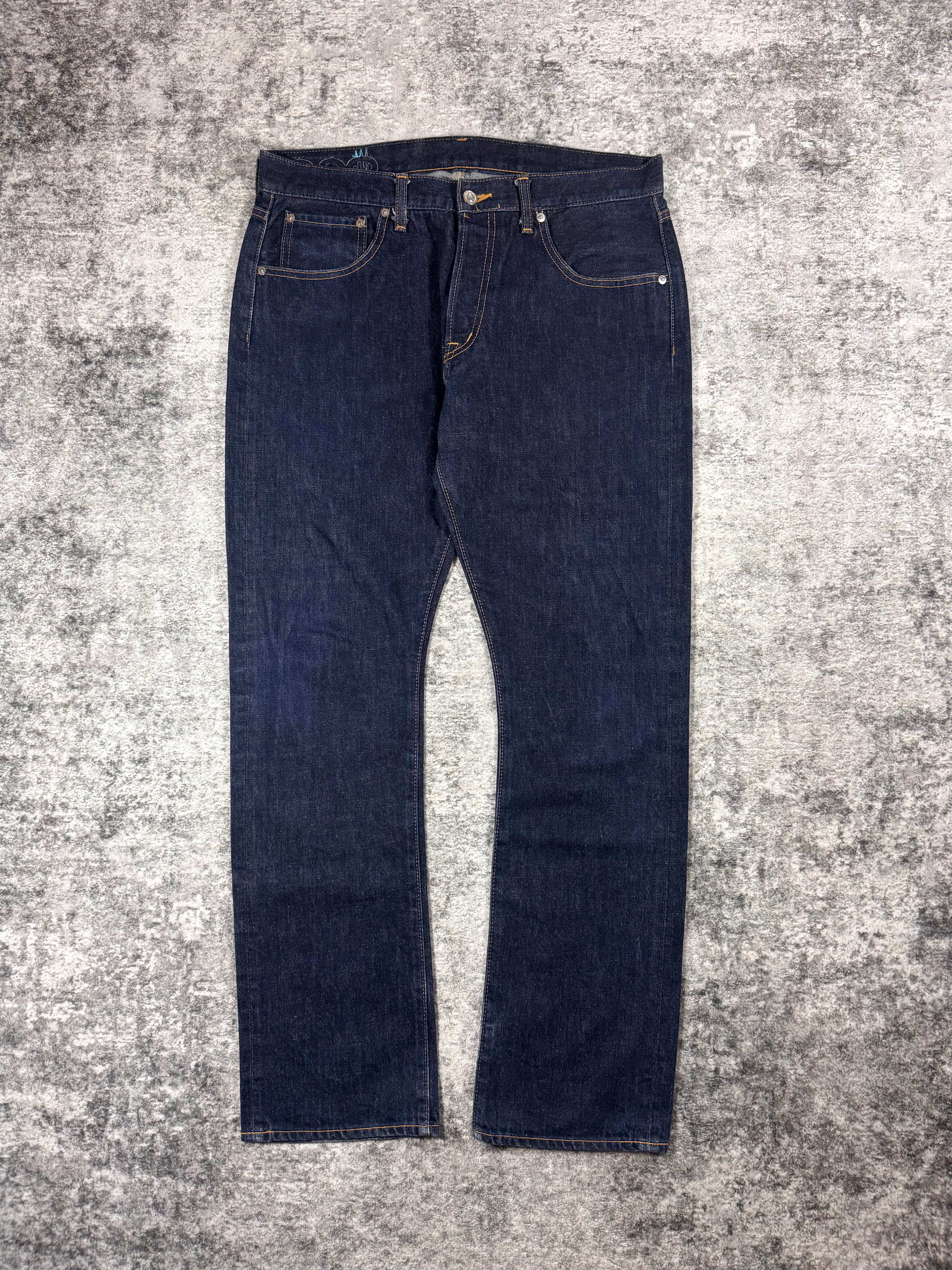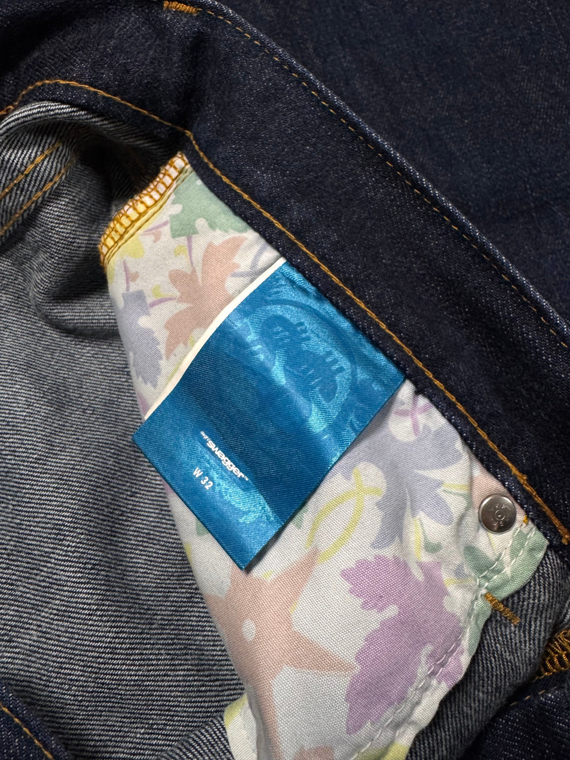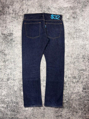 Lovely pair of deep indigo-wash Swagger denim released in the early 2000s. Coming in a straight leg (slightly baggy) silhouette, features the signature $ leather patch in light blue on the rear of the waistline indicating the size of the denim. In good condition with no major flaws or damages