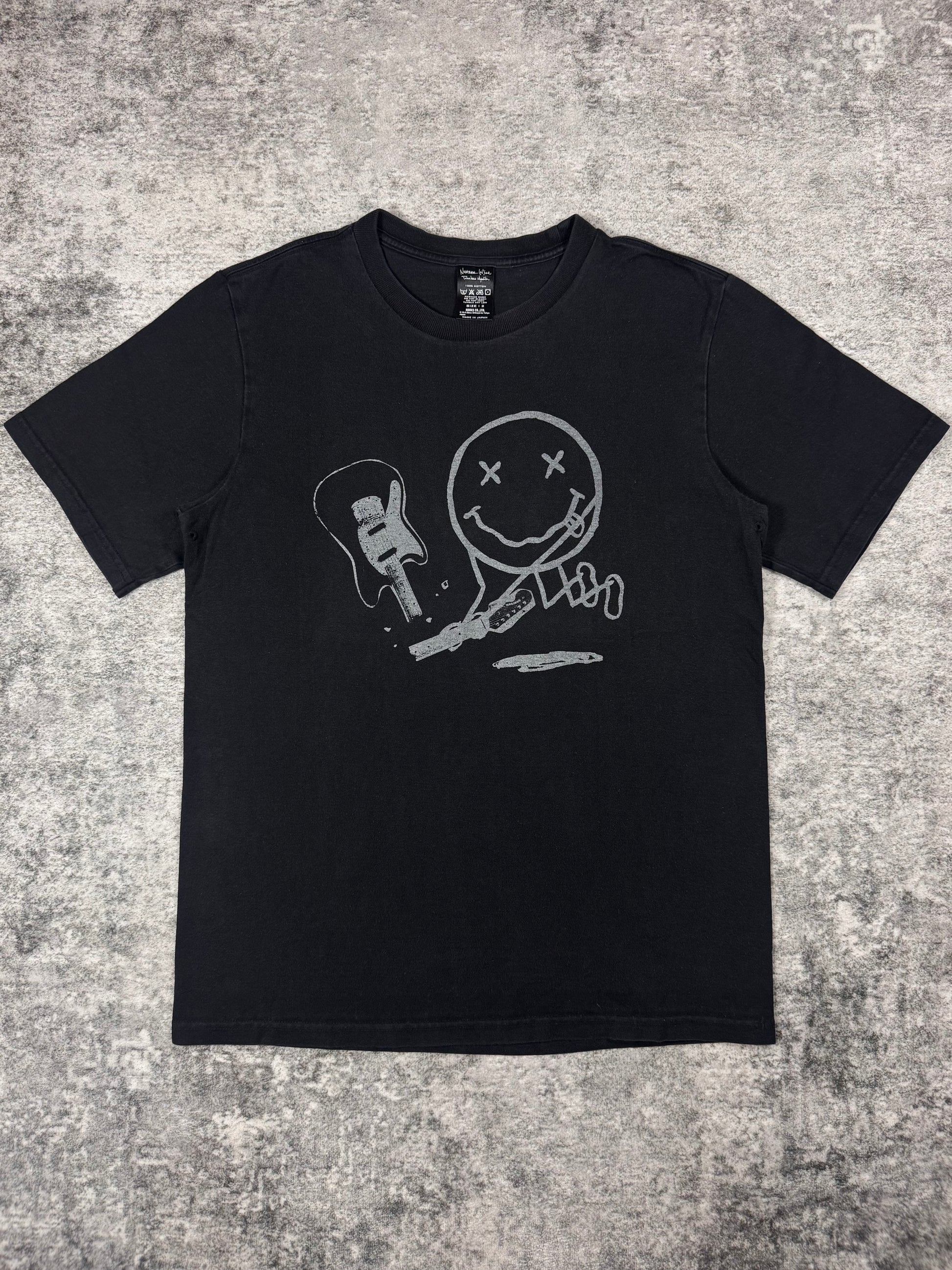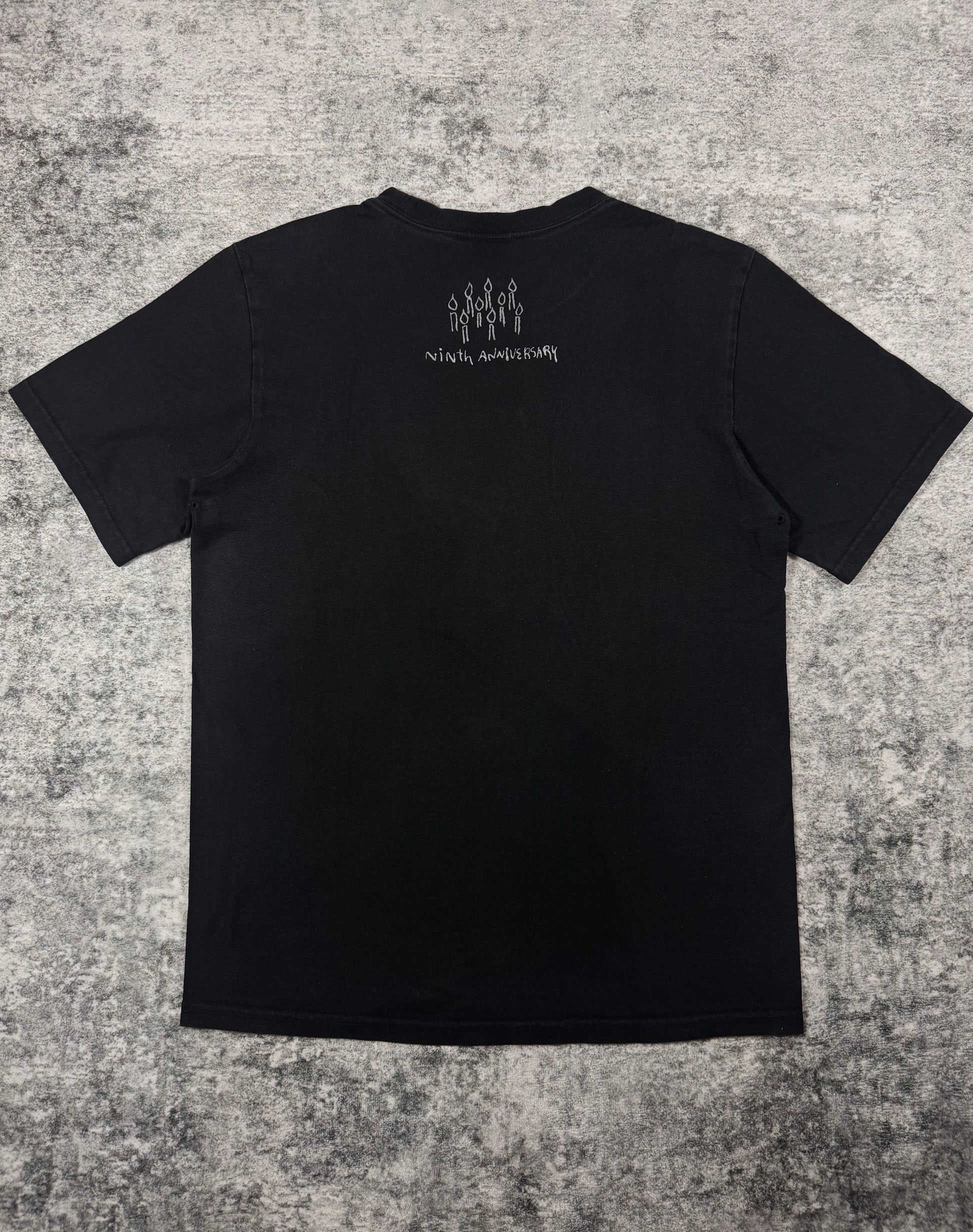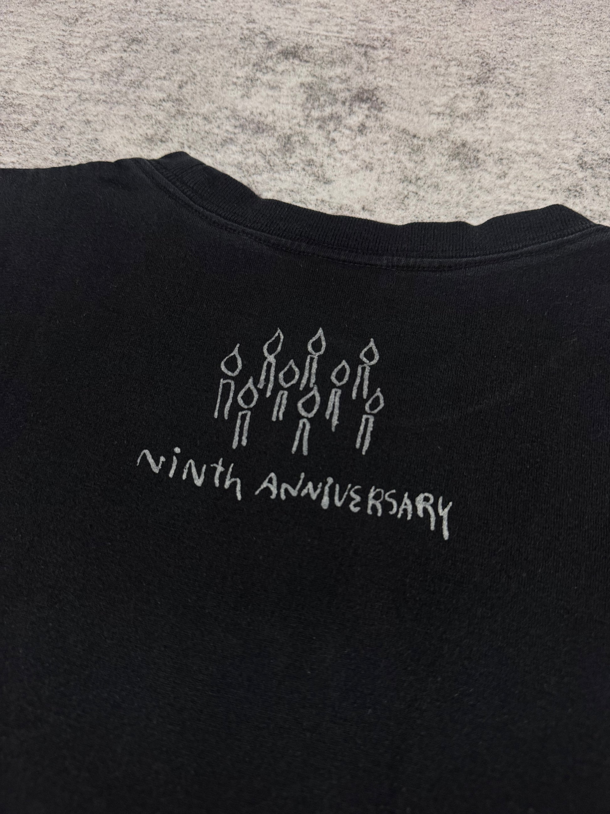 Extremely rare, 9th anniversary Number (N)ine t shirt celebrating the brands success from 1997. Featuring the Nirvana smiley face with the destroyed guitar. Birthday cake on the rear. In great condition with no major flaws or damages