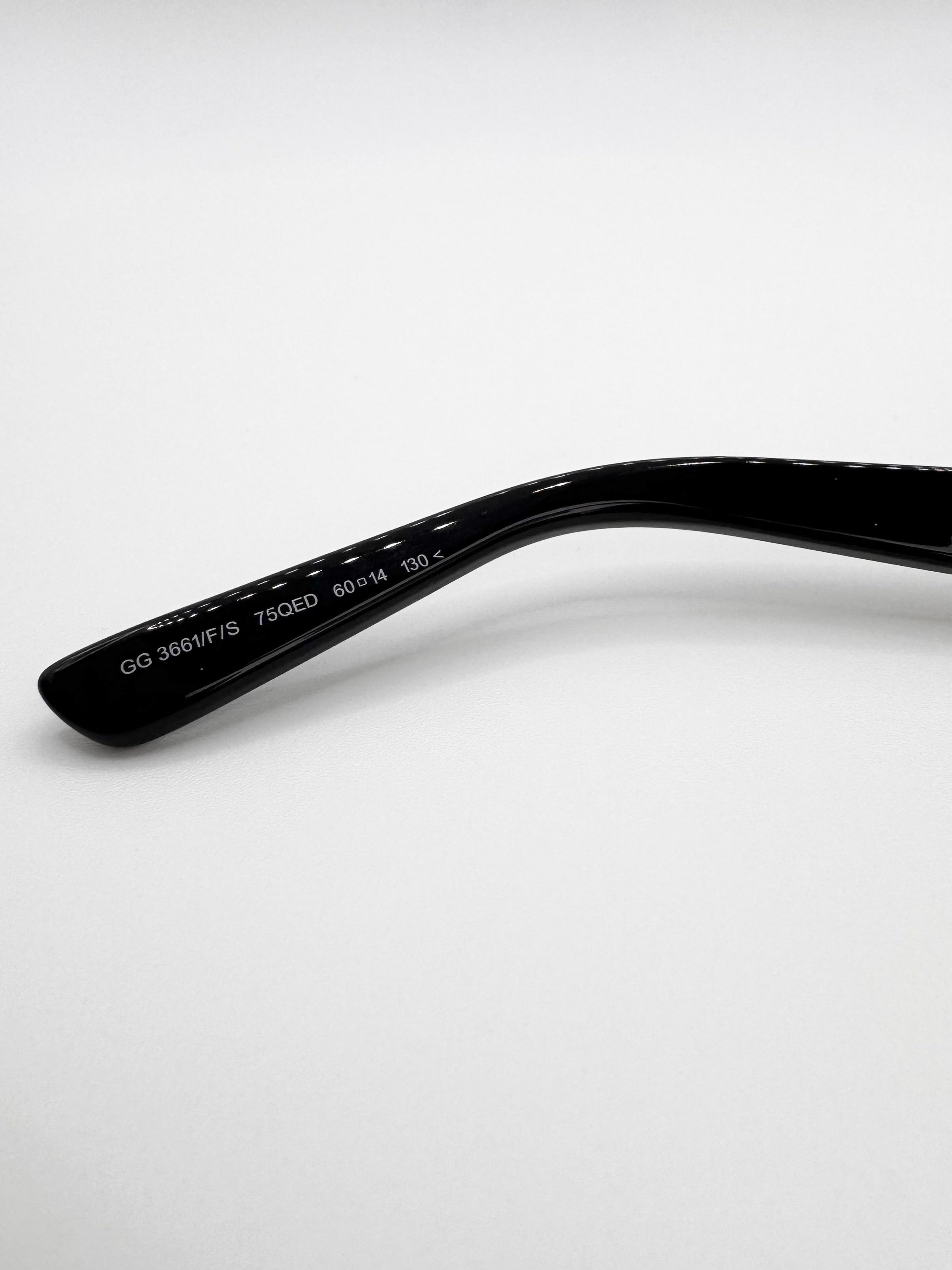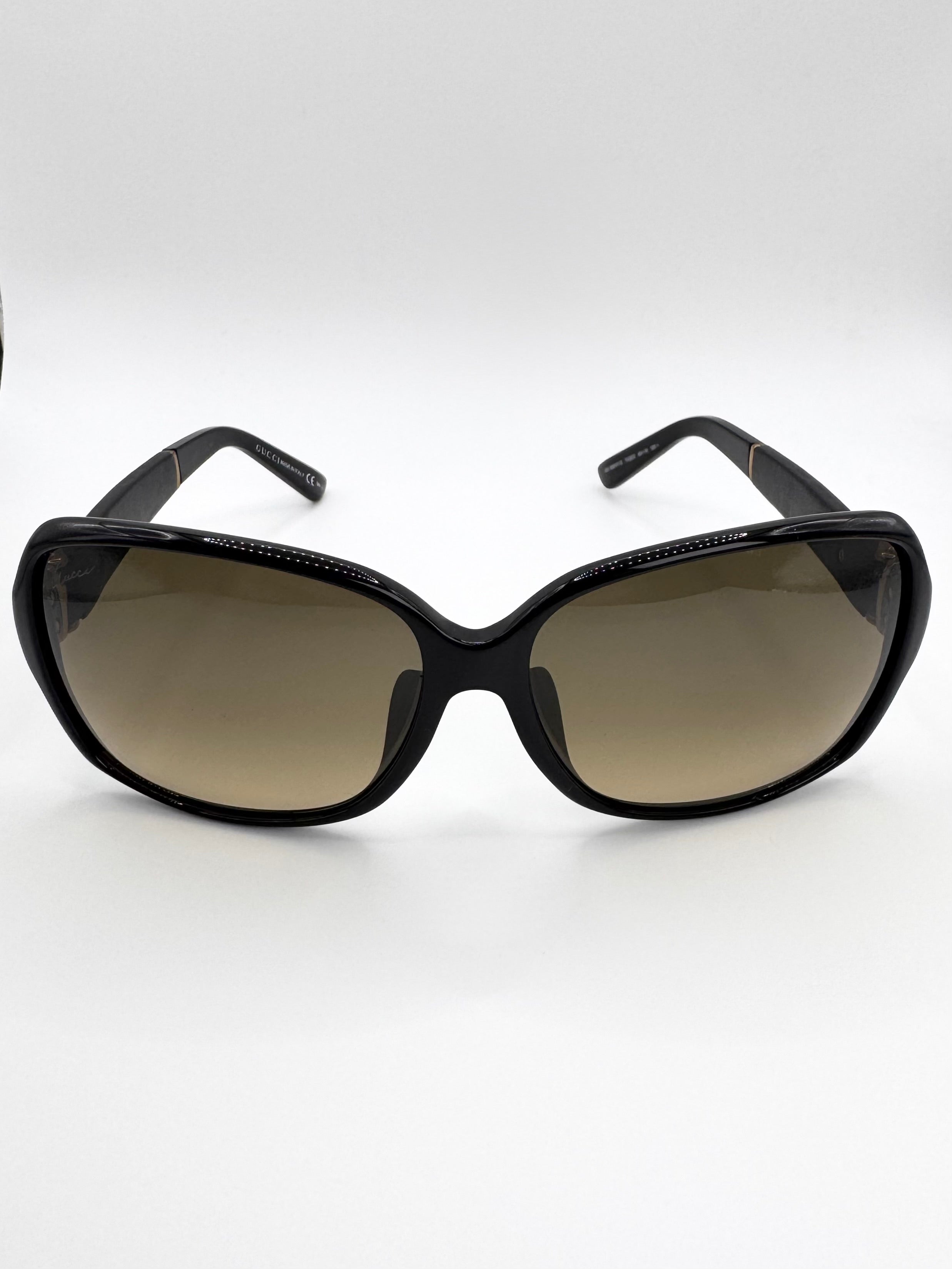 Elegant Gucci sunglasses in the ‘3661/F/S’ silhouette, features a glossy black oversized frame paired with warm brown gradient lenses. The temples are adorned with the iconic gold-tone Horsebit hardware, a signature equestrian motif deeply rooted in Gucci’s heritage. Crafted in Italy, the silhouette blends classic luxury with a refined early 2010s aesthetic typical of the Frida Giannini era. Comes with the original pyramid leather case and cleaning cloth. Good condtion with no major flaws