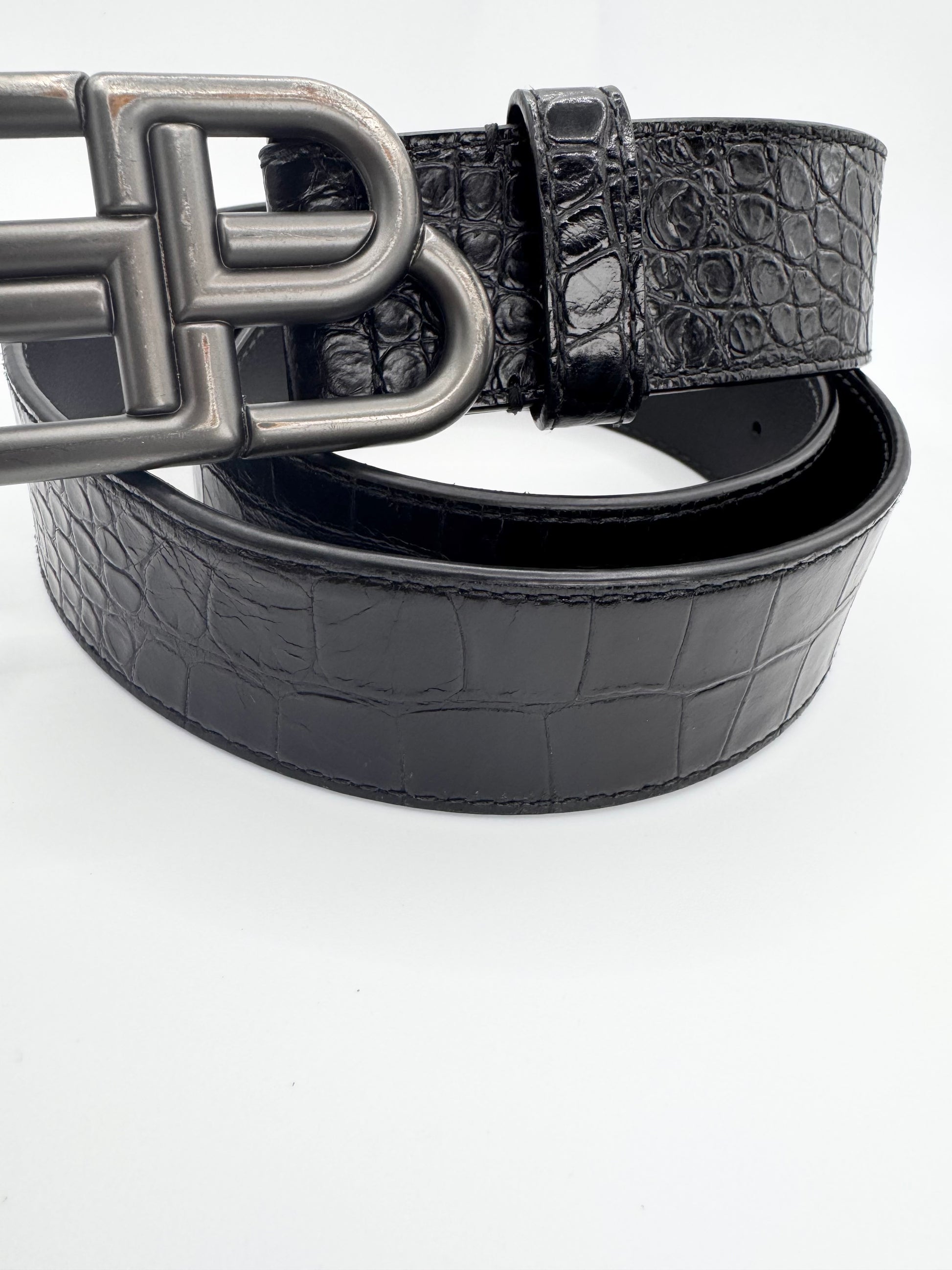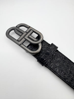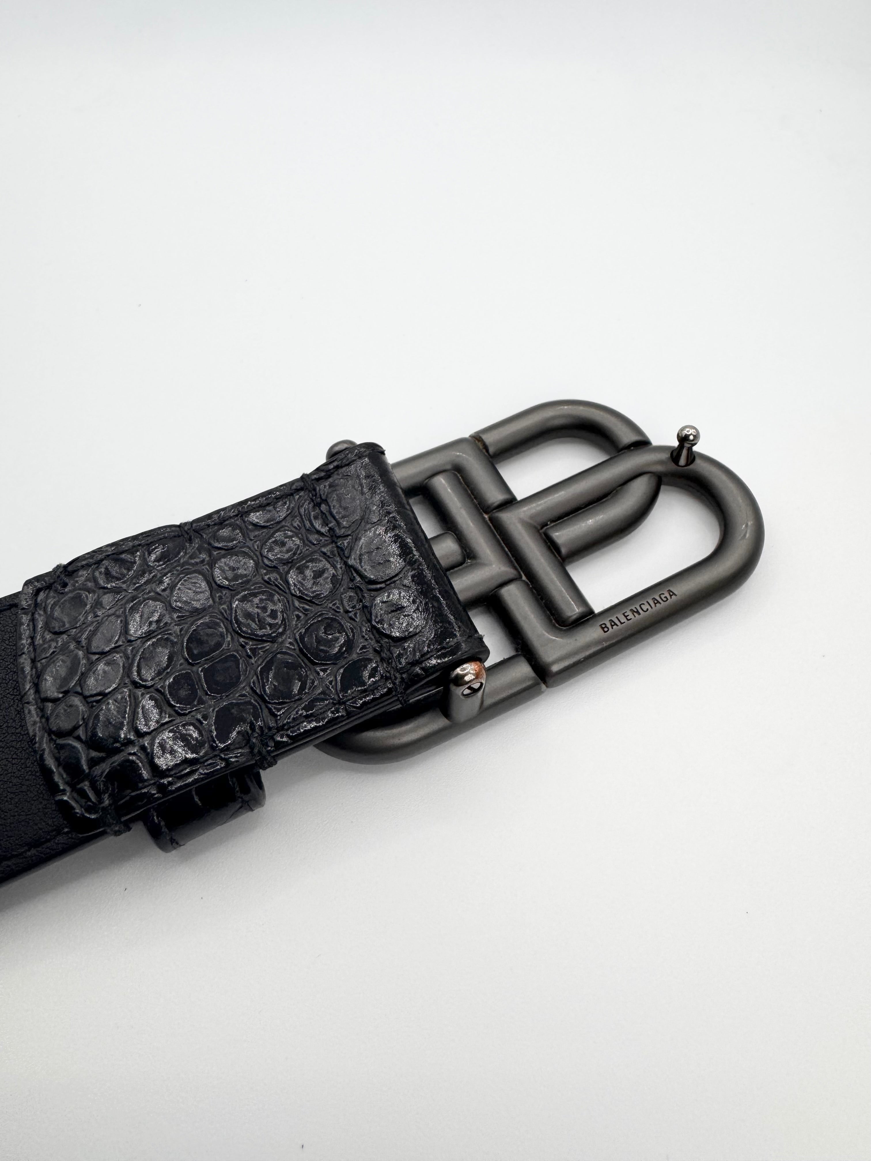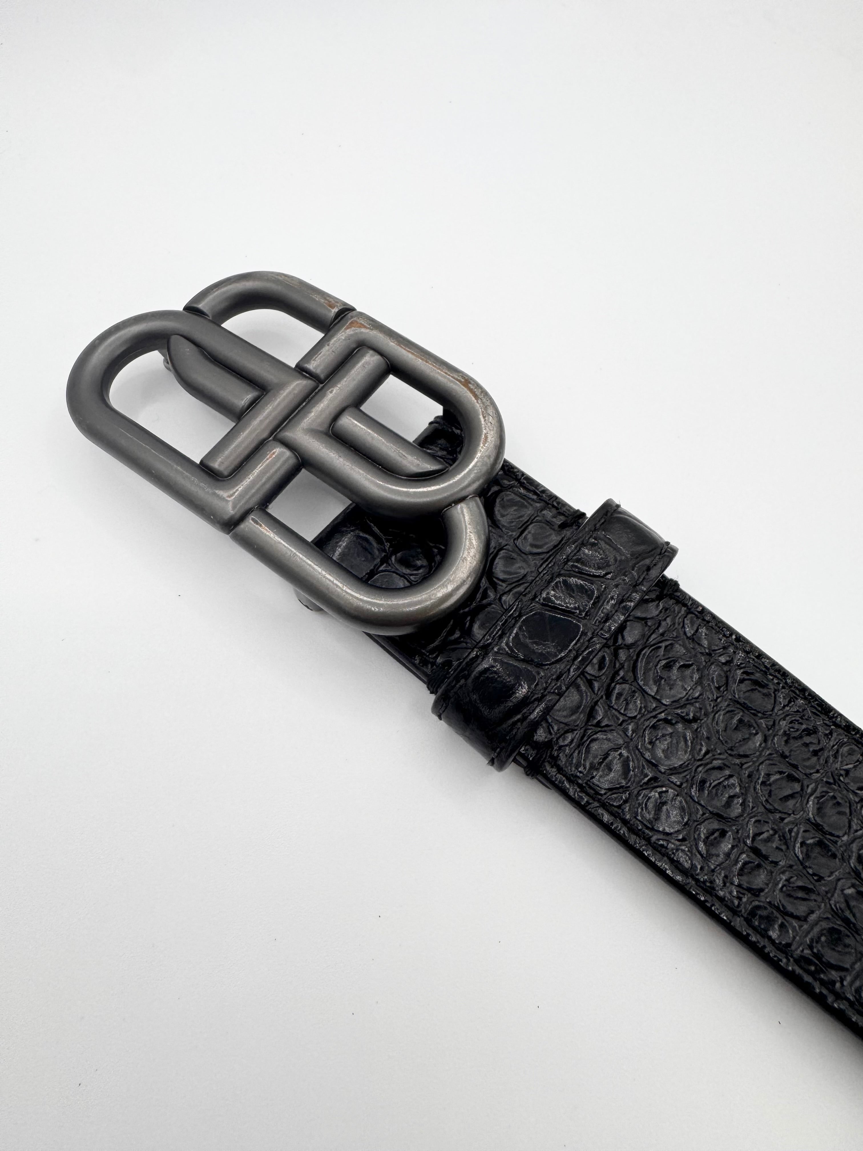Balenciaga ‘BB’ Black Crocodile Leather Belt