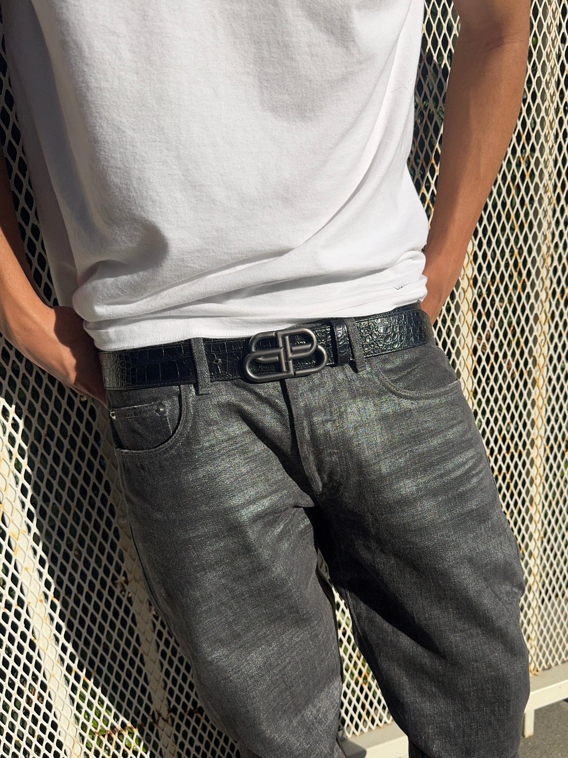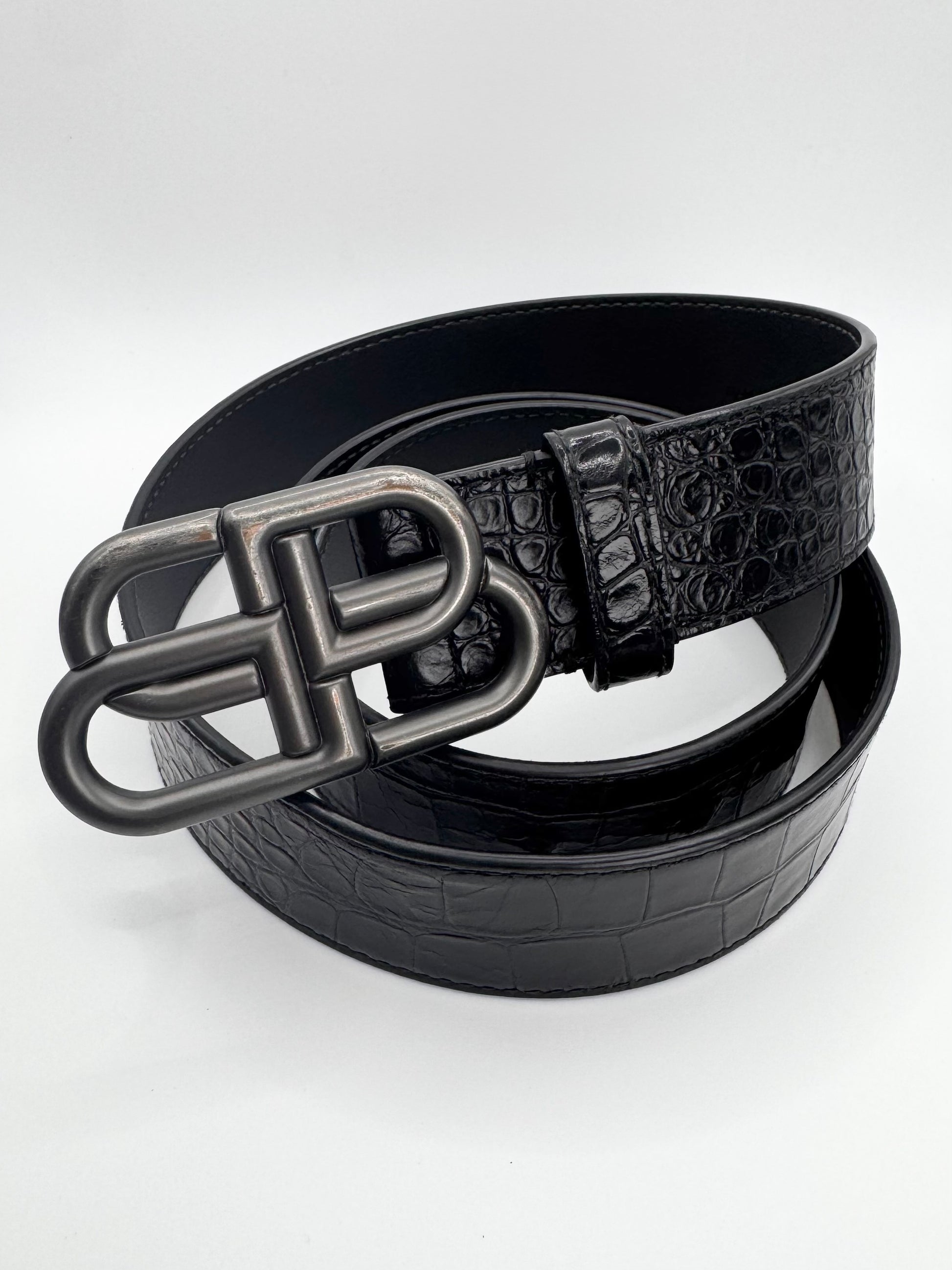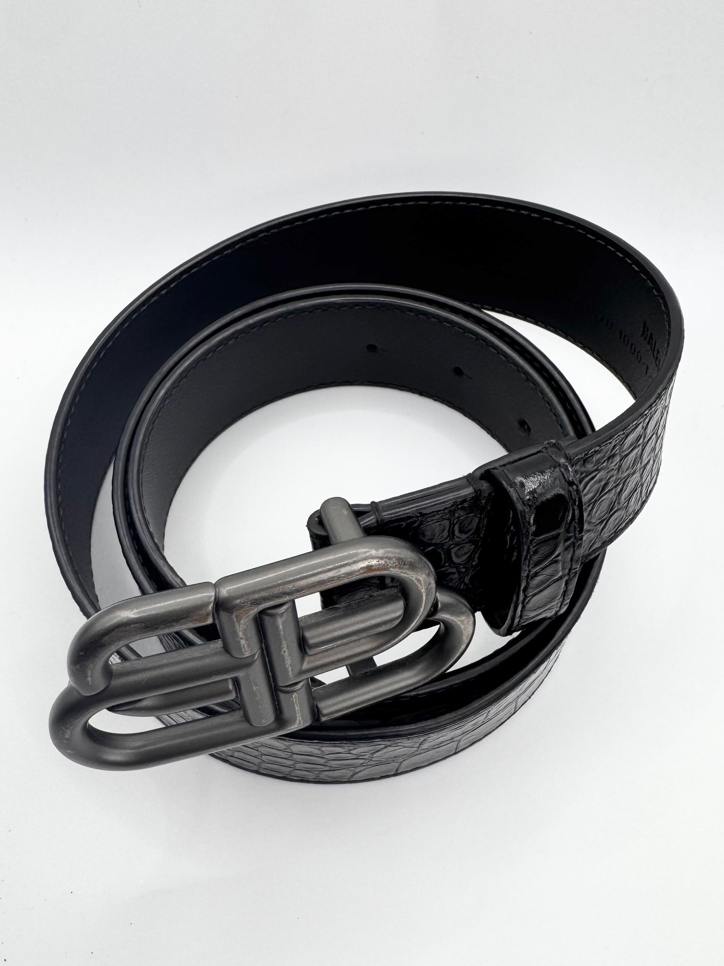 Balenciaga ‘BB’ Black Crocodile Leather Belt