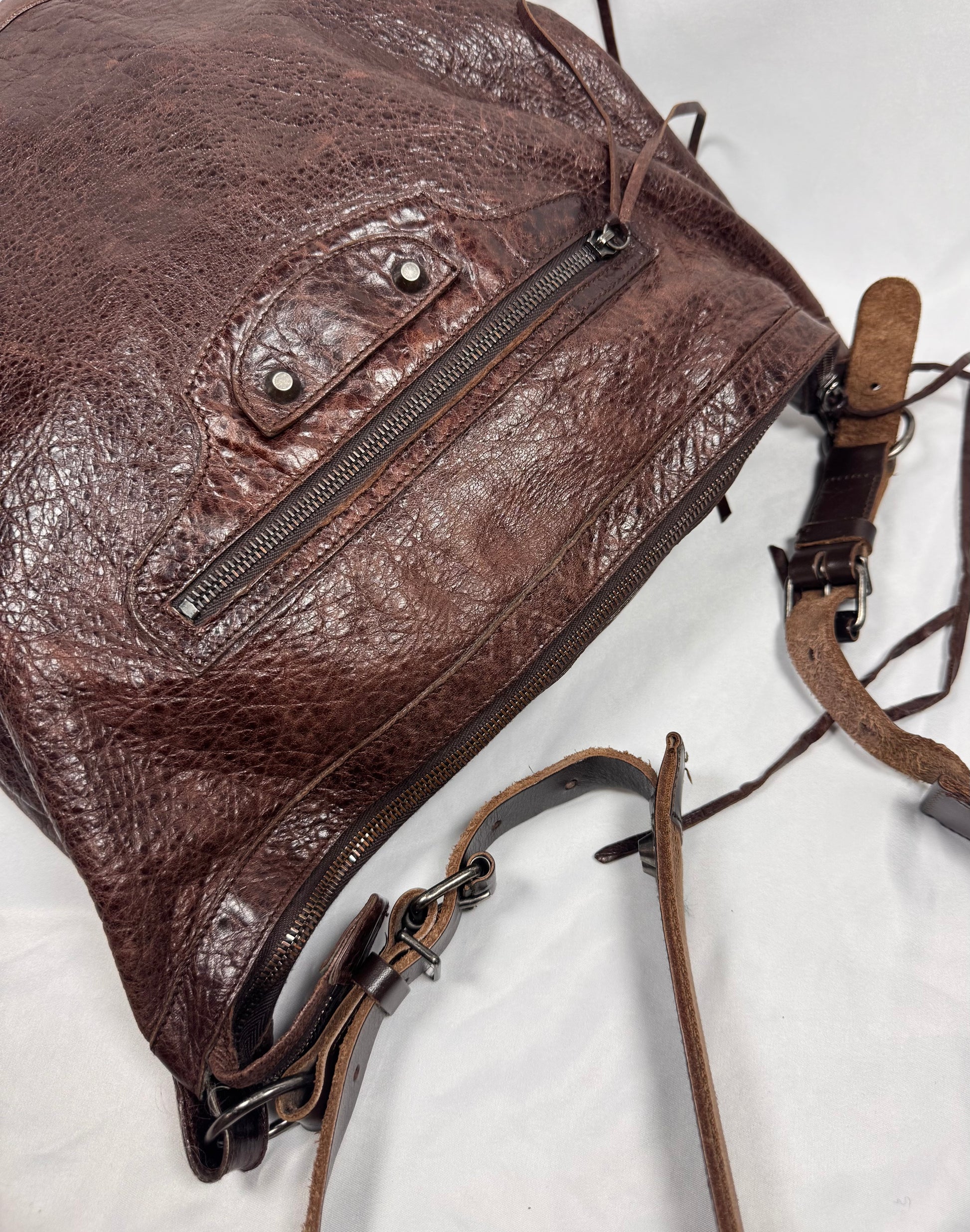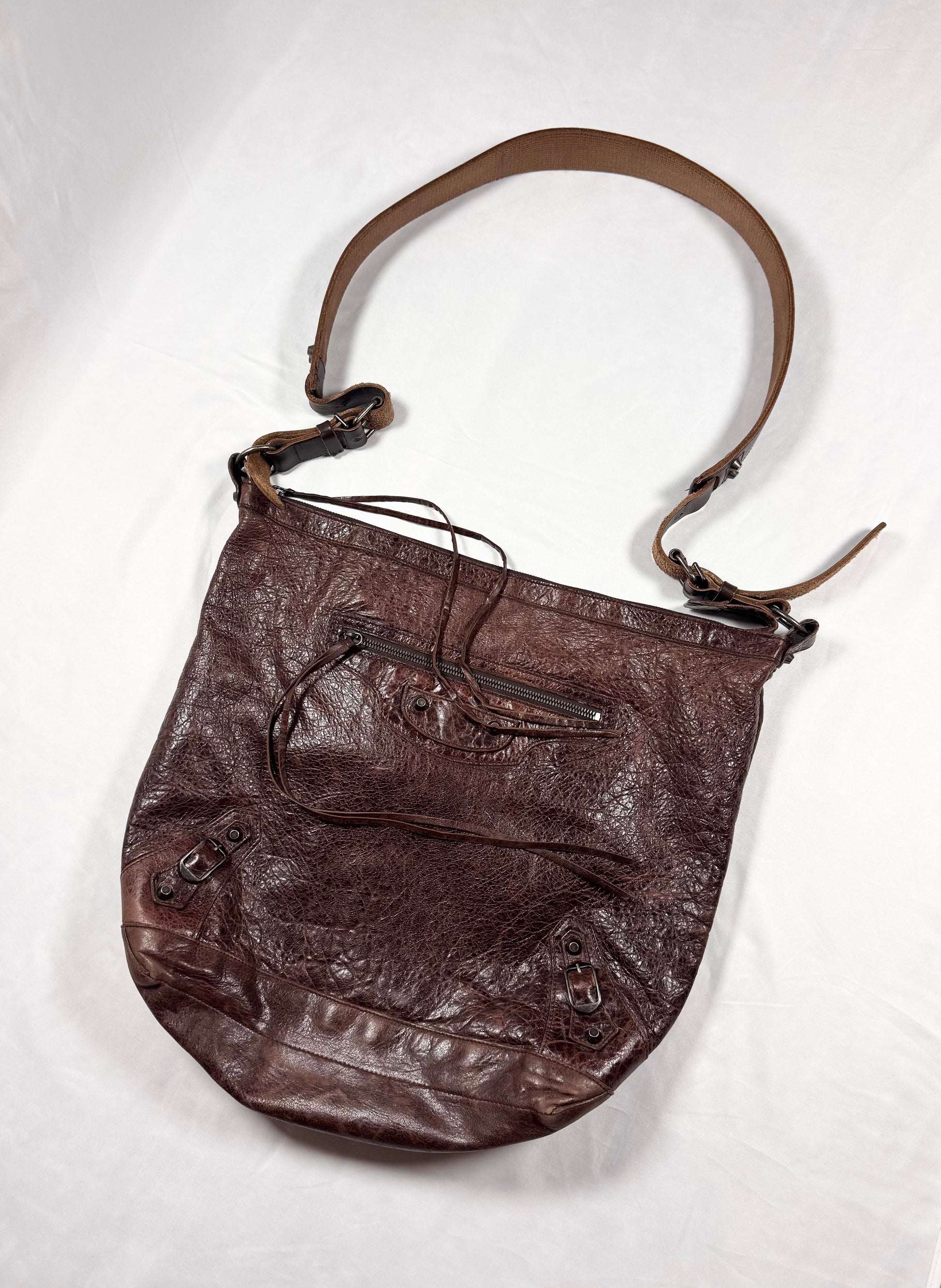 2000s Balenciaga ‘The Day’ Brown Leather Hobo Shoulder Bag