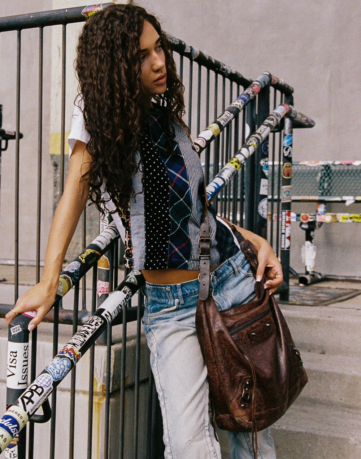 Crafted in Italy from richly textured brown leather, this Balenciaga bag is from Nicolas Ghesquière’s Motocross-era coming in ‘The Day’ silhouette. The relaxed hobo silhouette is finished with signature moto details, including the front zip pocket, leather zipper pull with elongated tassels, and buckle accents that define early Balenciaga accessories. Designed for effortless shoulder wear, the leather has softened beautifully over time, developing a naturally worn-in character. In fantastic condition for its age with no major flaws or damages