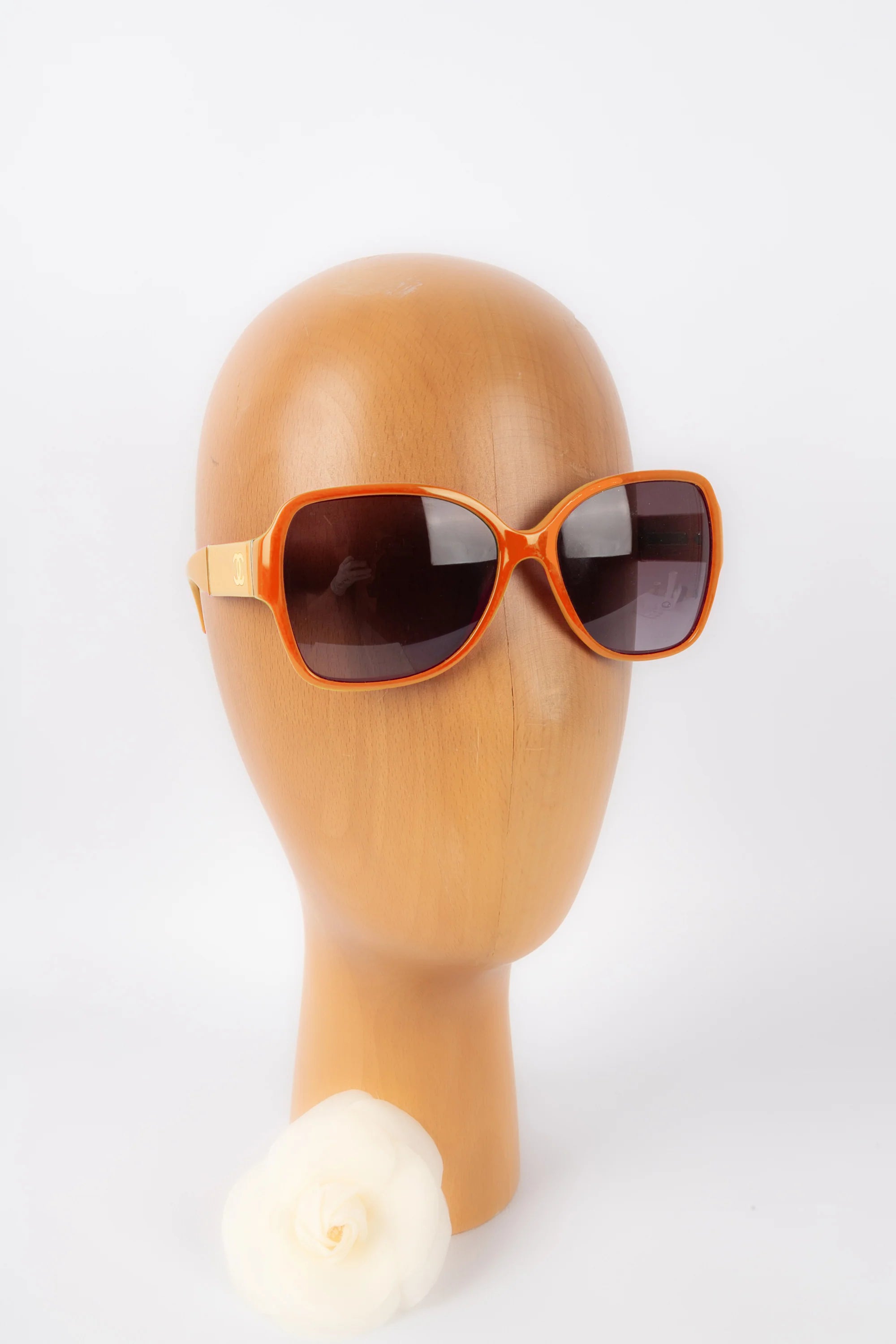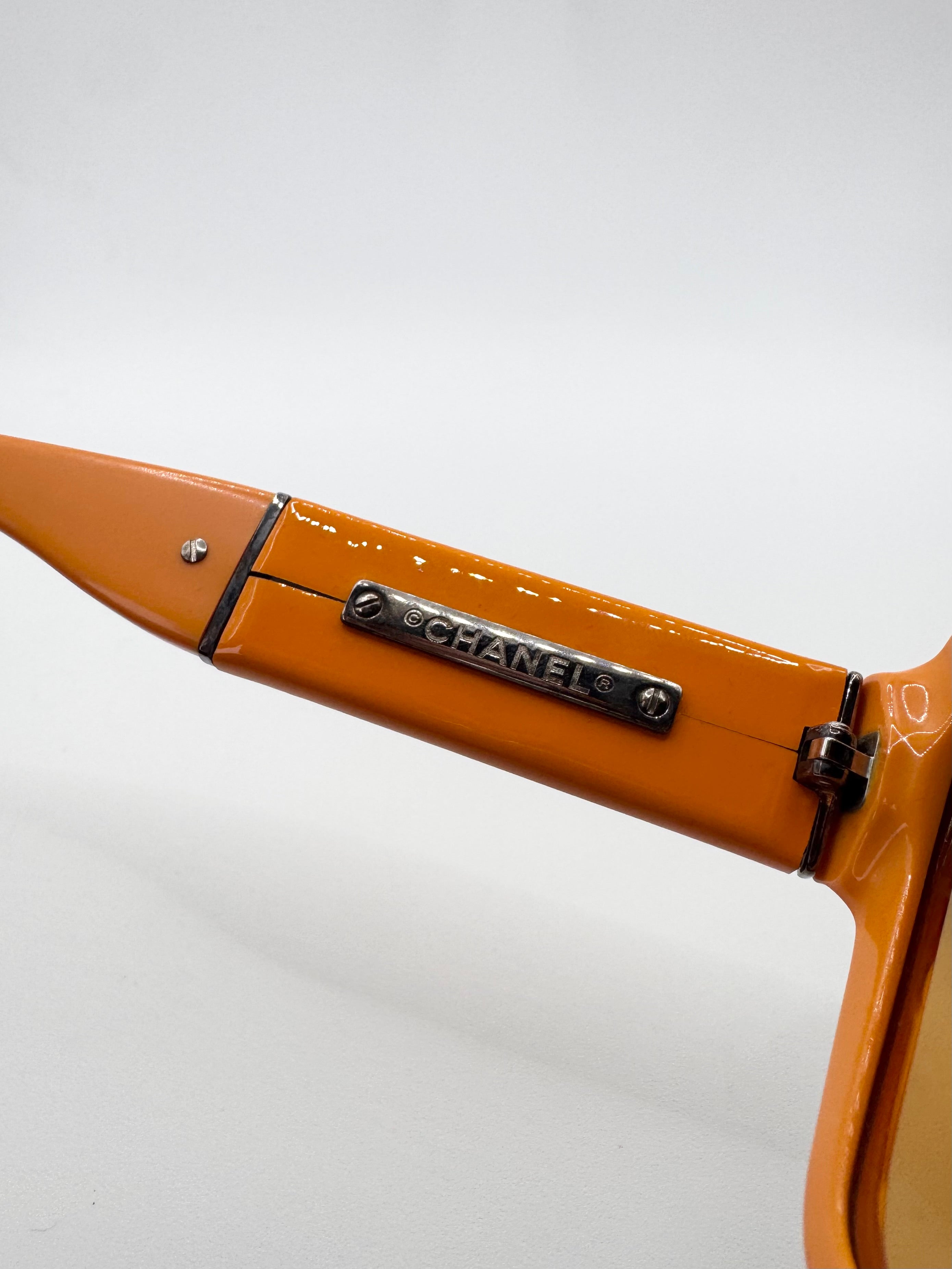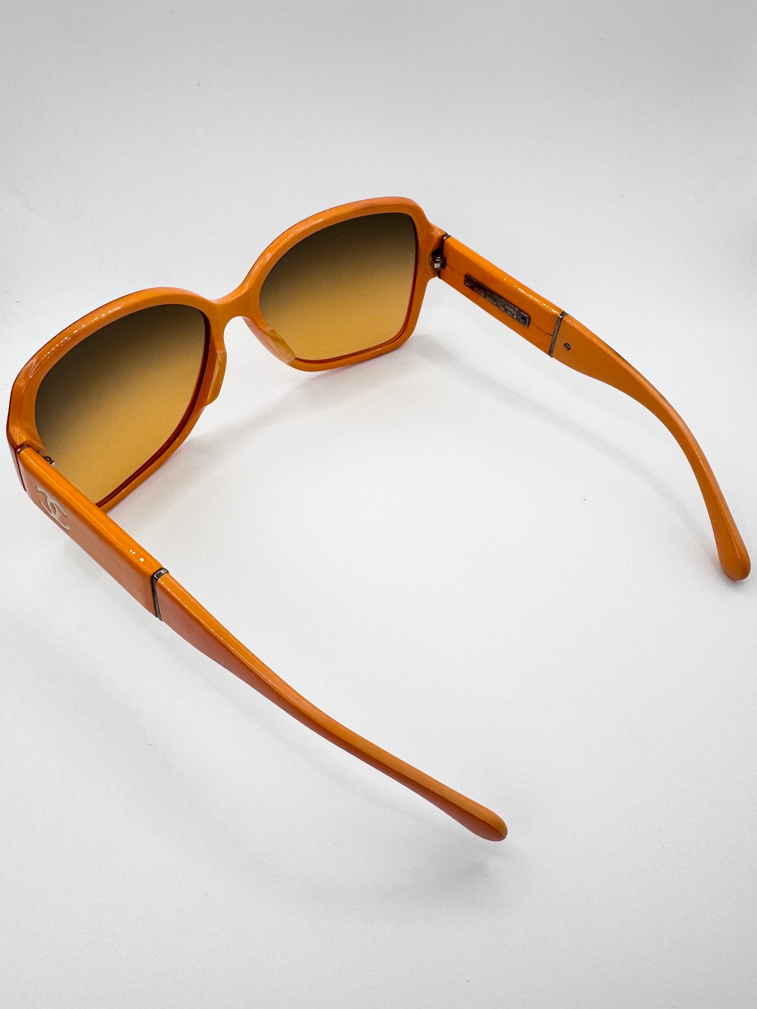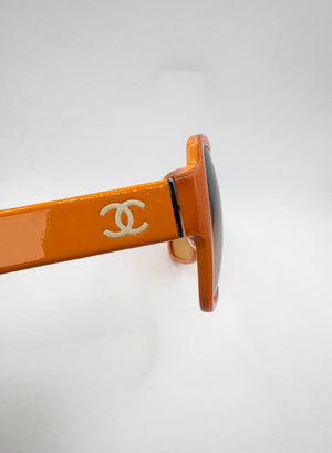 2000s Chanel ‘5230Q’ CC Orange Accetate Runway Sunglasses