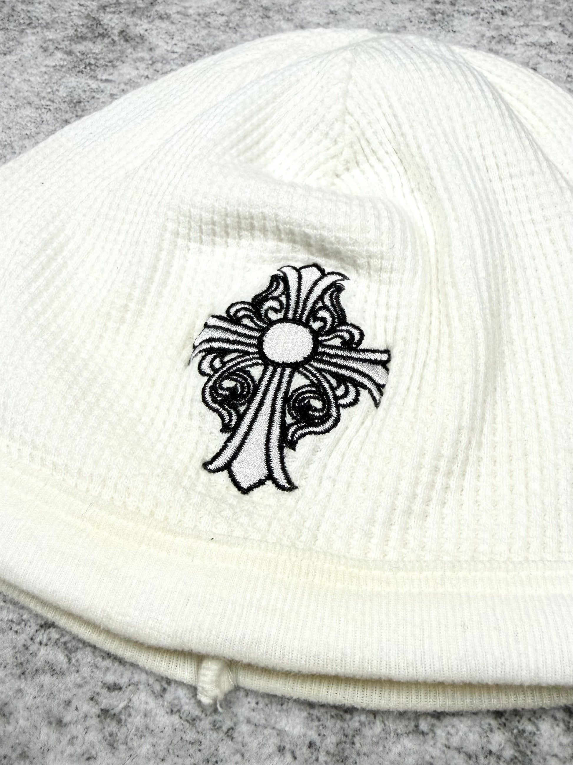 2000s Chrome Hearts ‘Hairy Cross’ Vintage White Thermal Beanie