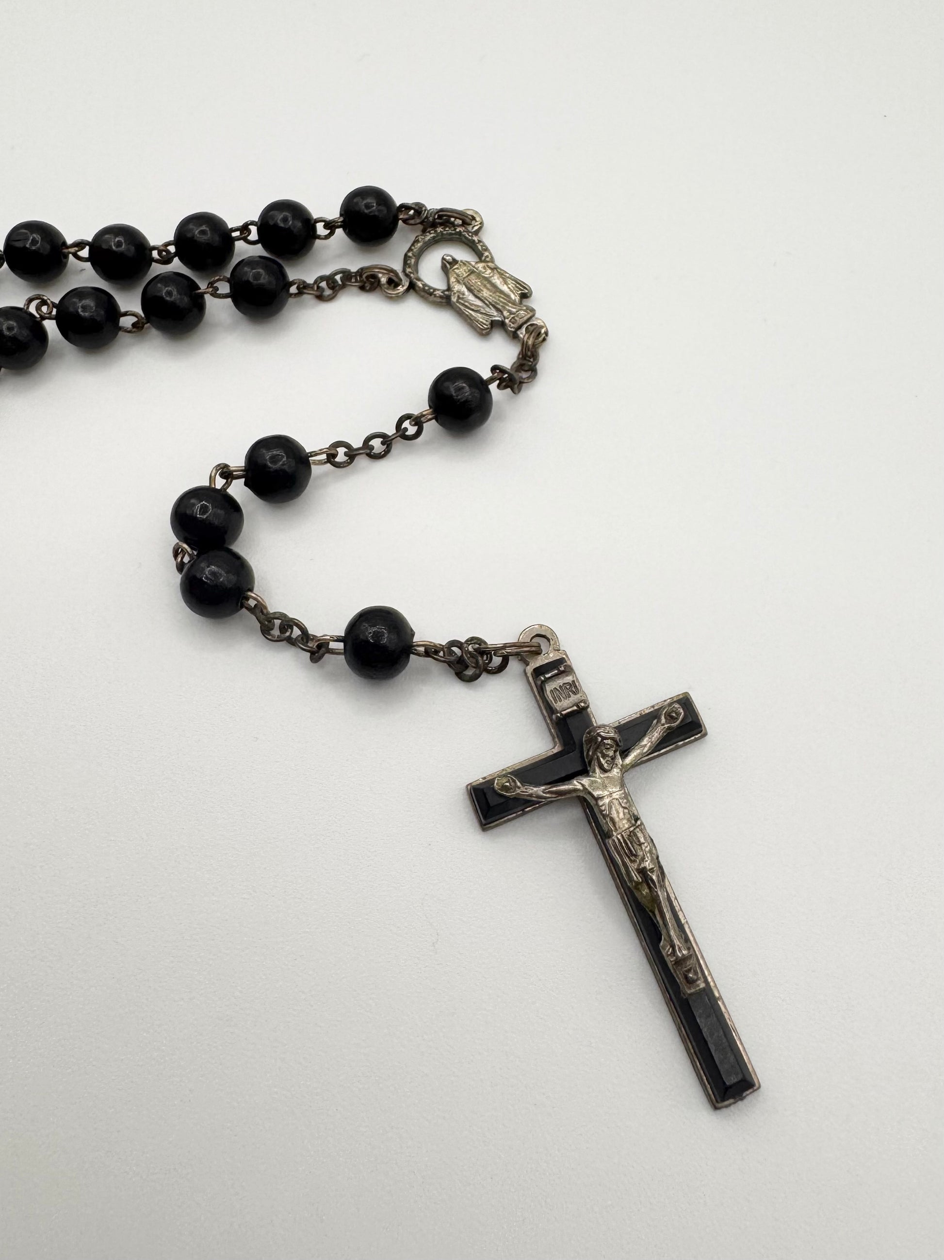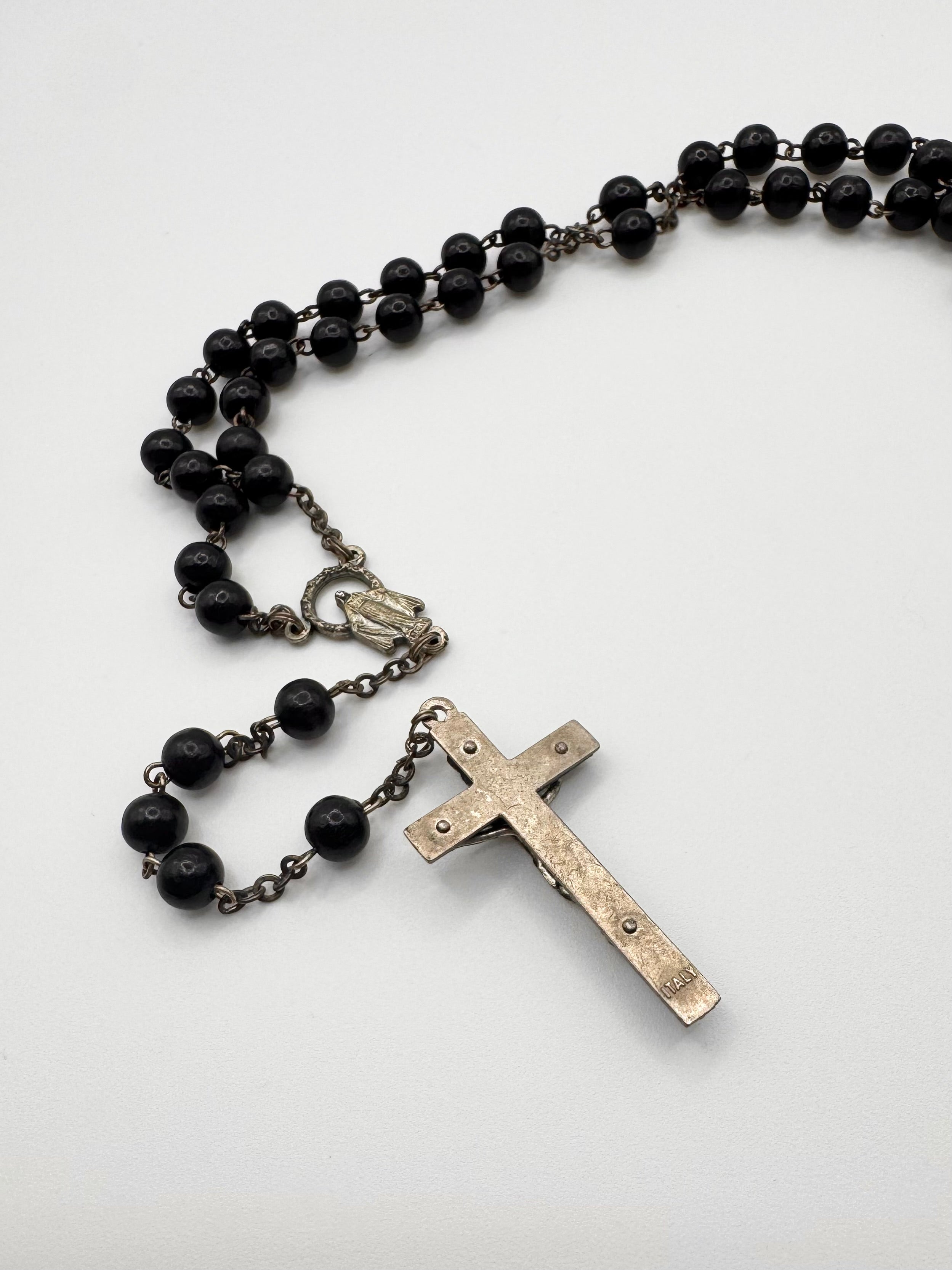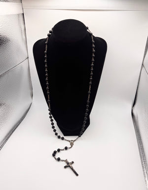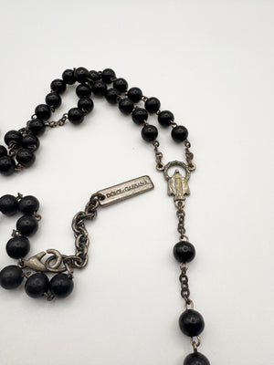 2000s Dolce & Gabbana Black Beaded Rosary Cross Necklace