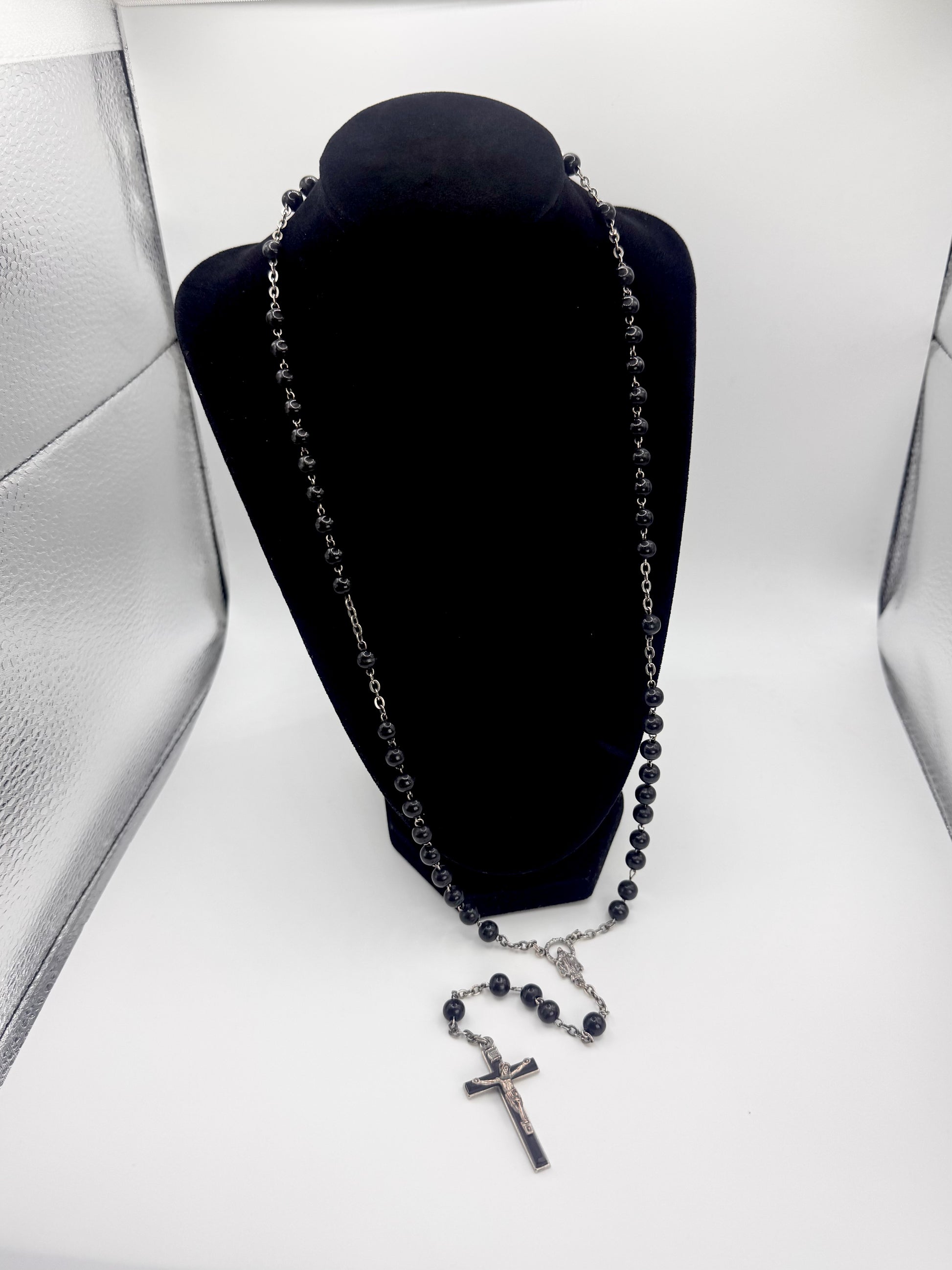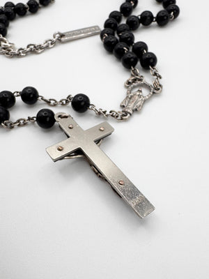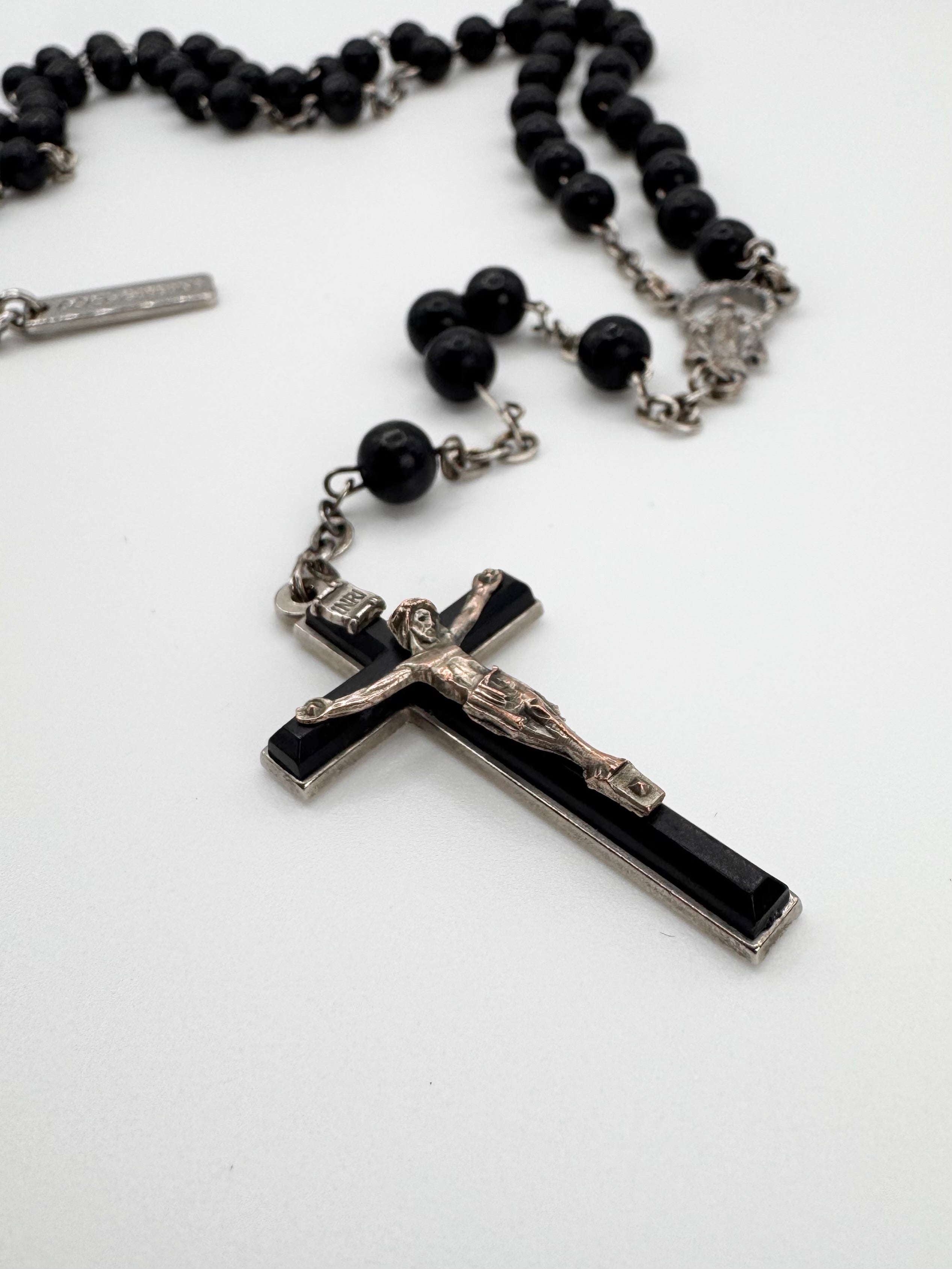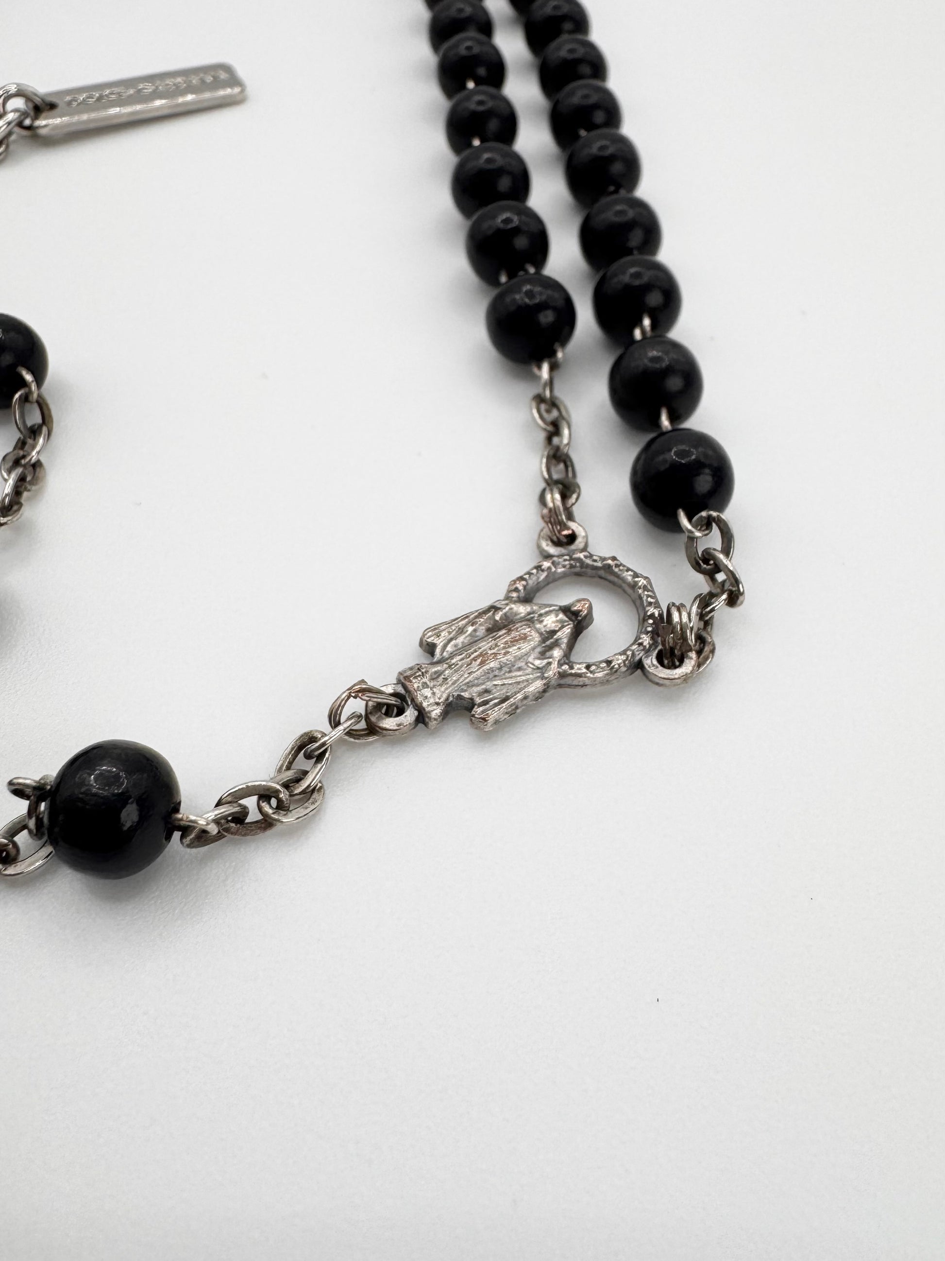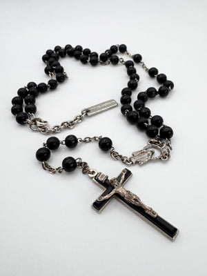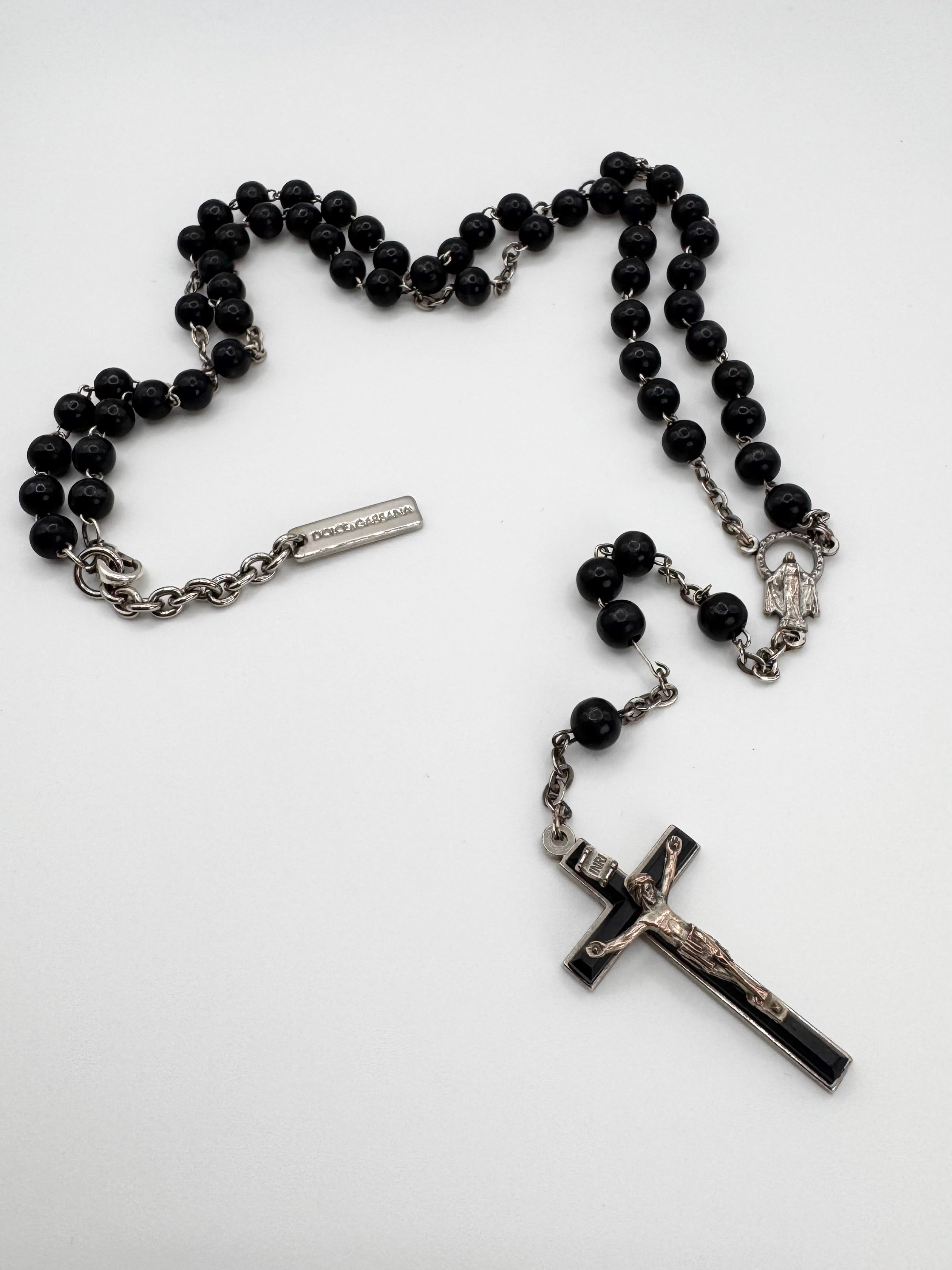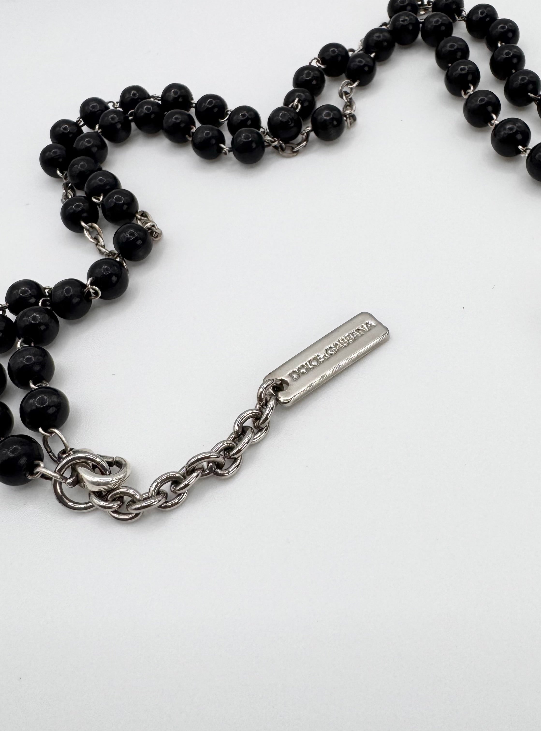 2000s Dolce & Gabbana Black Beaded Rosary Cross Necklace