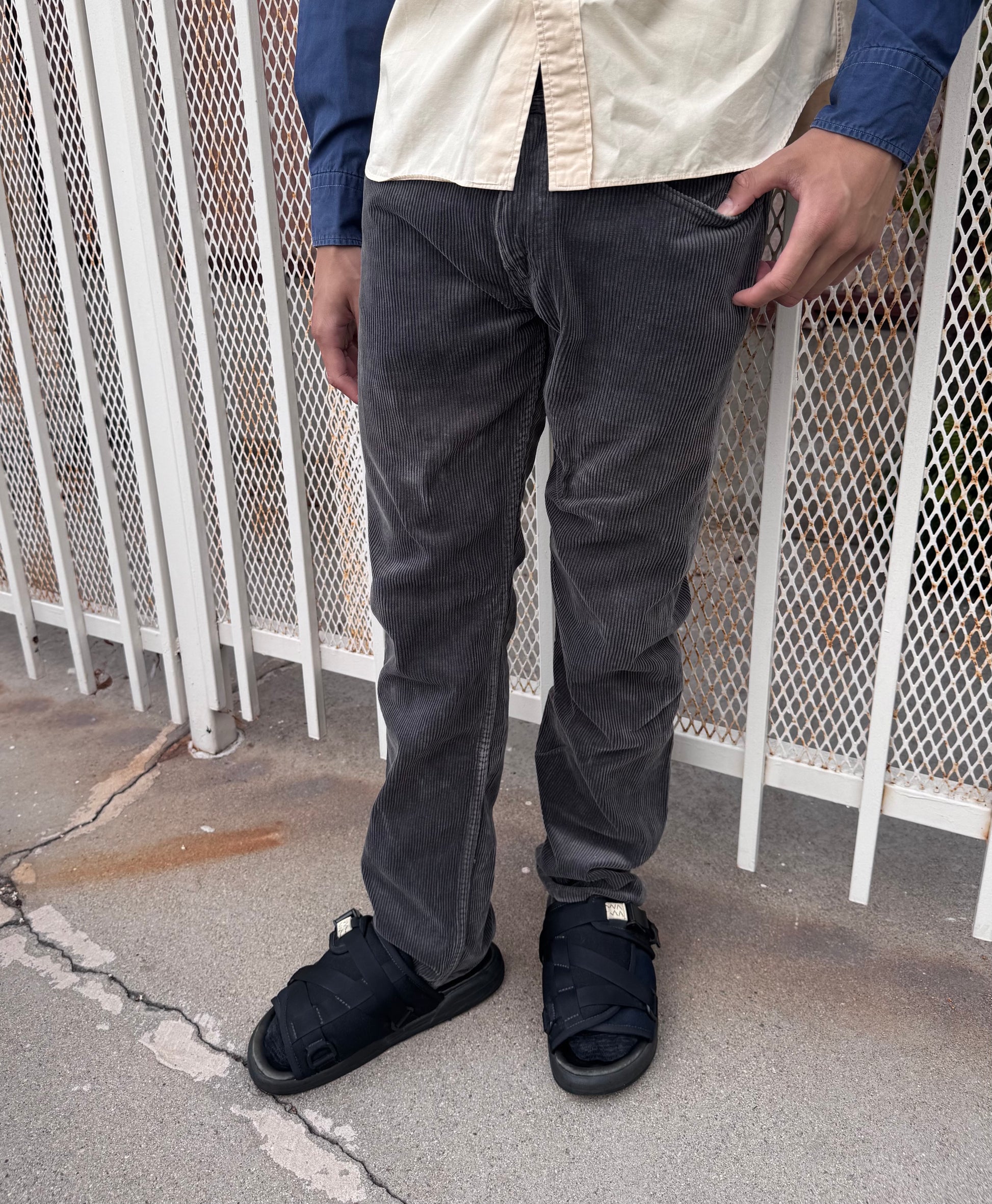 From the Fall/Winter 2003 collection, lovely pair of washed grey corduroy pants from the Junya Watanabe MAN line in collaboration with Levi’s. Durable pair of bottoms with the signature Levi’s red tag on the rear pocket. In good condition with no major flaws or damages