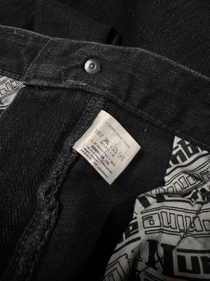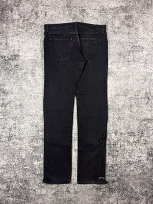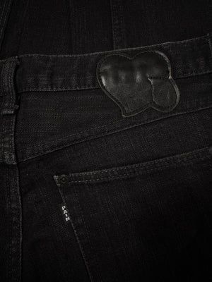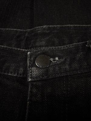 Rare variation of the signature all-black ‘Pain’ denim from the Fall/Winter 2006 “Noir” collection. Features the classic crying heart patch on the rear as well as the Levi’s style “Pain” tab on the pocket. Riri zipper function along the outseam toward the leg opening. In good condition with no major flaws or damages (some slight fading due to aging)