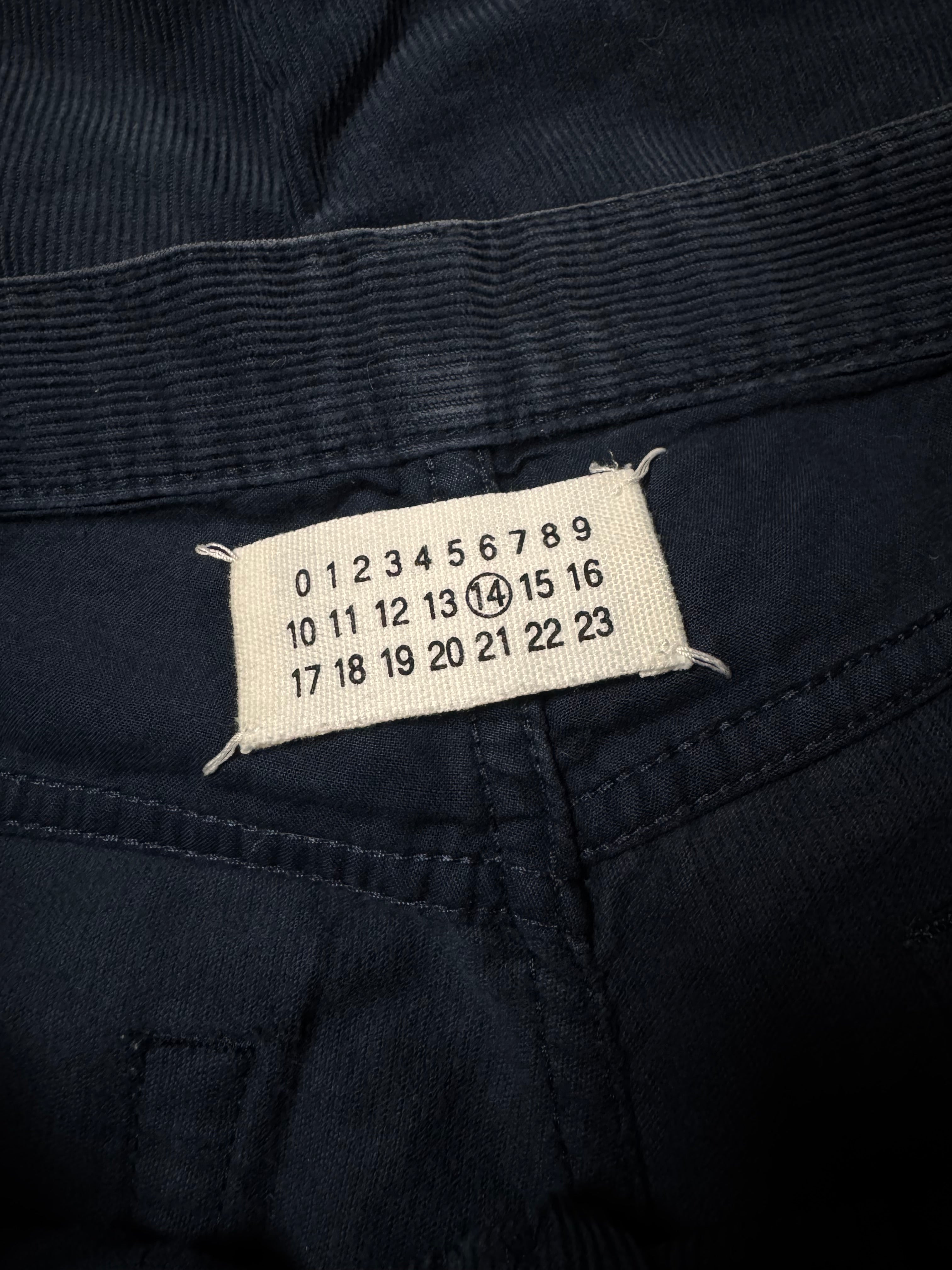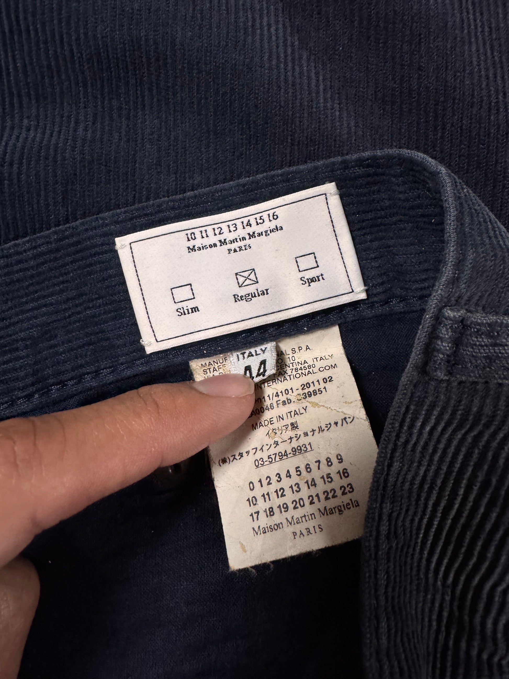 Navy Maison Margiela corduroy bottoms from the Fall/Winter 2011 collection. Regular silhouette fit, features the iconic four stitching of the brand tag on the rear. In amazing condition with no major flaws or damages