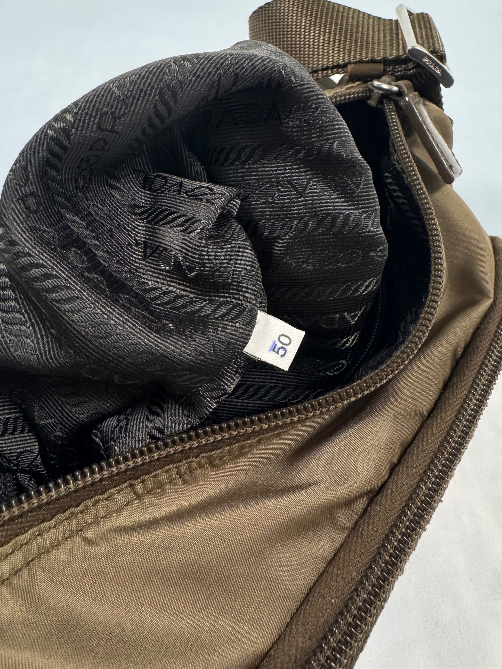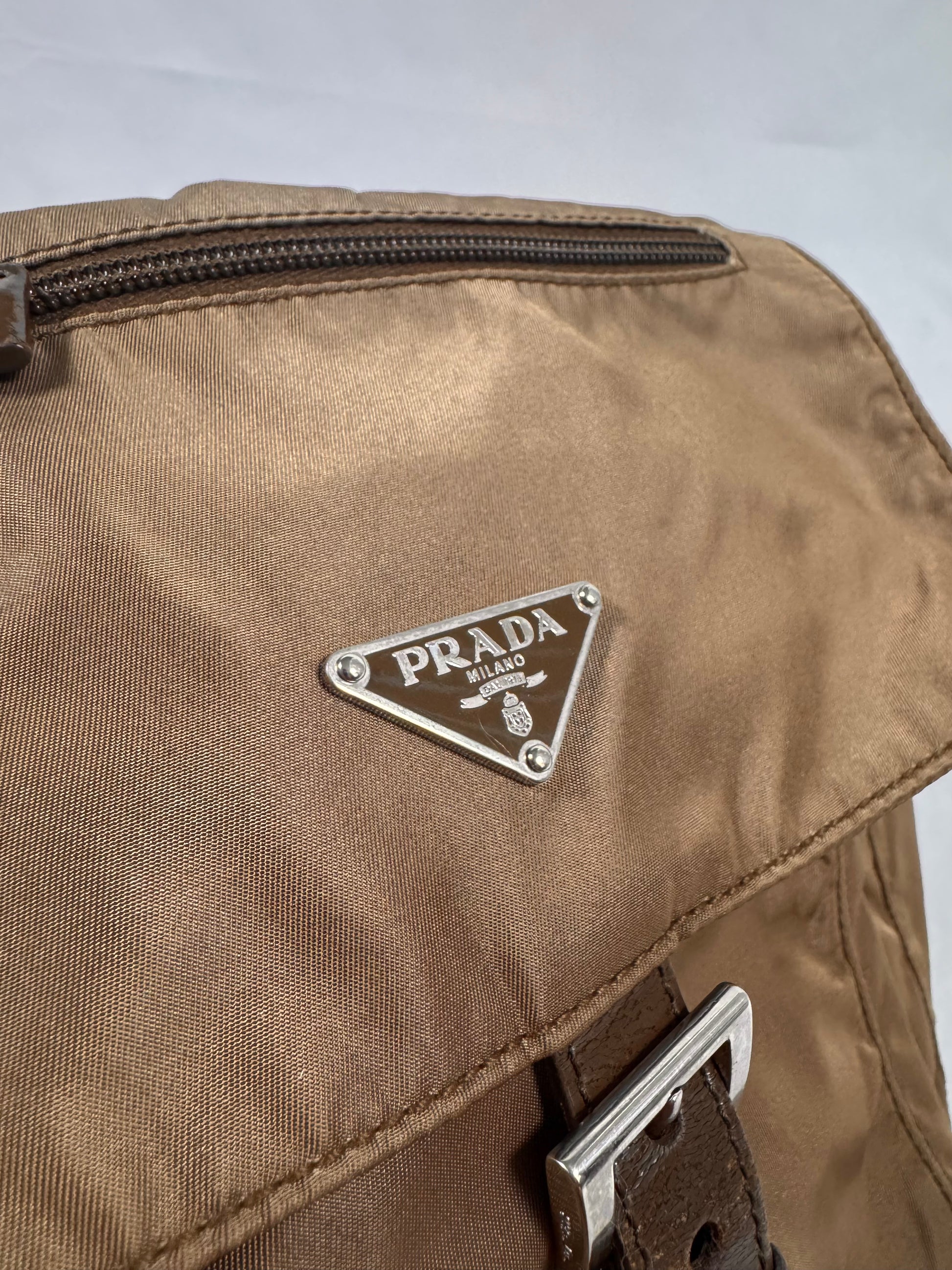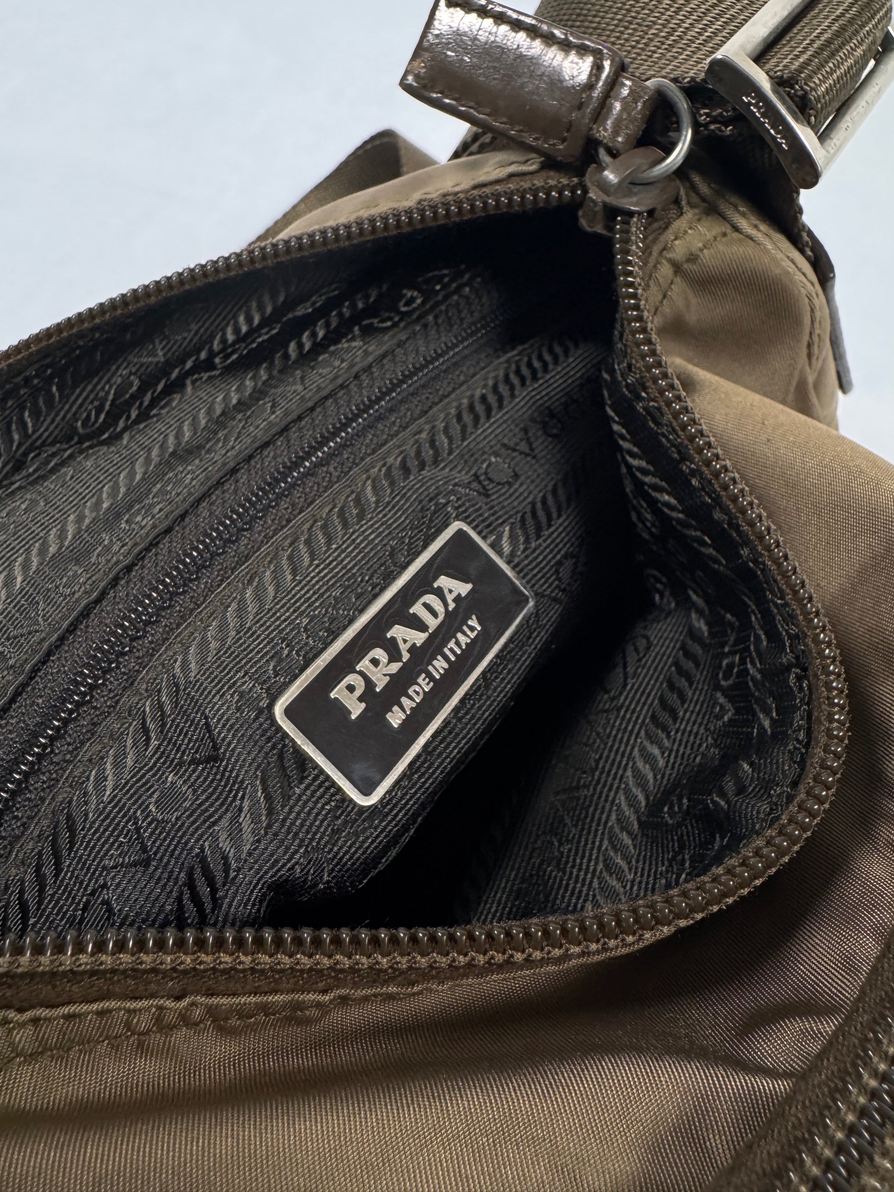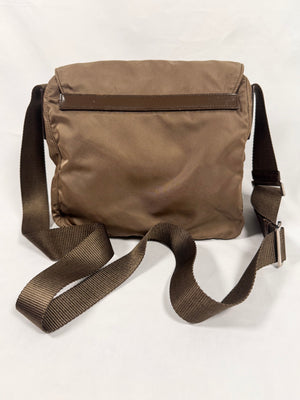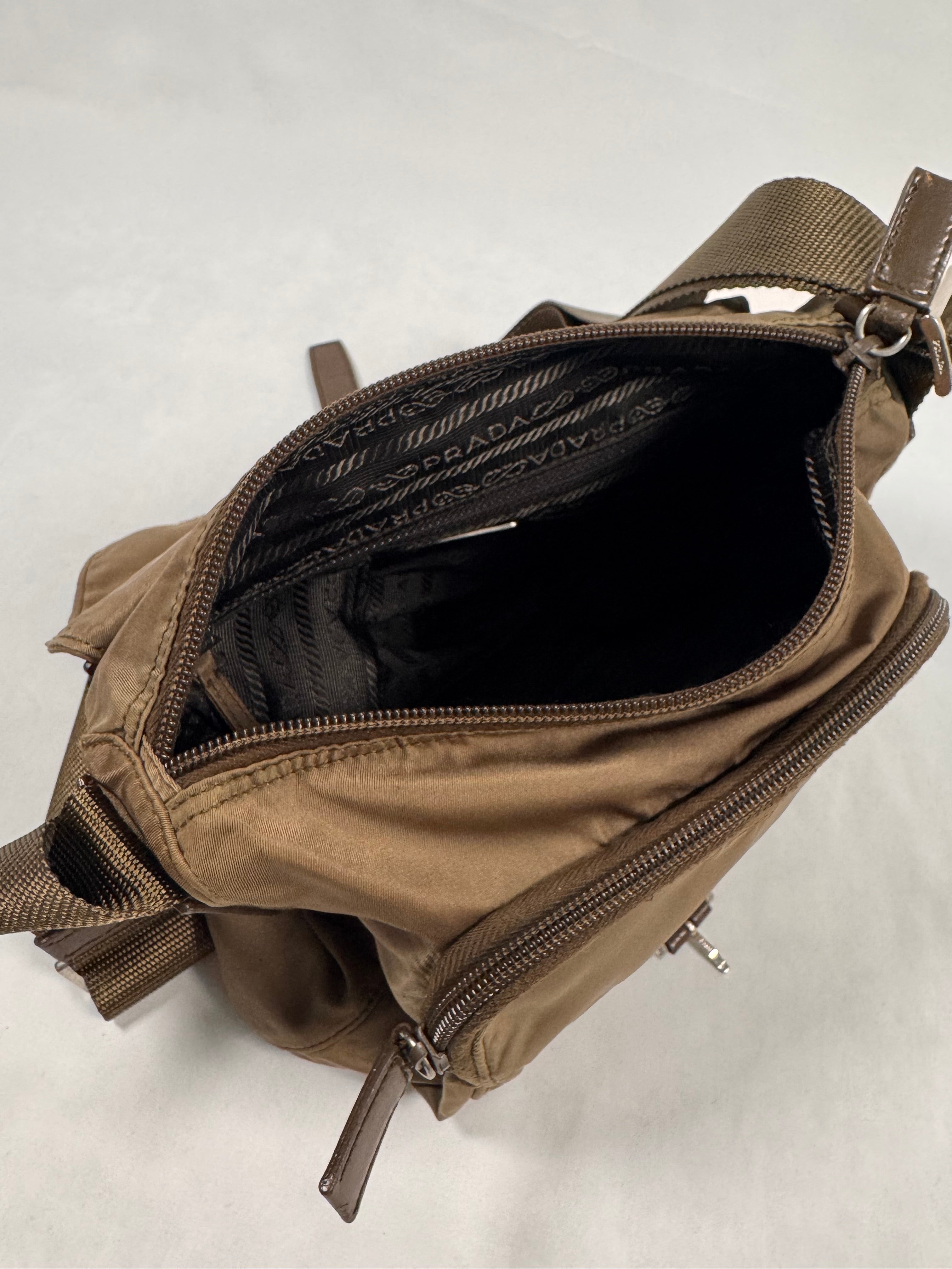 2000s Prada Milano Ash Brown Nylon Crossbody Bag