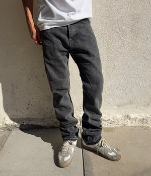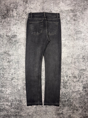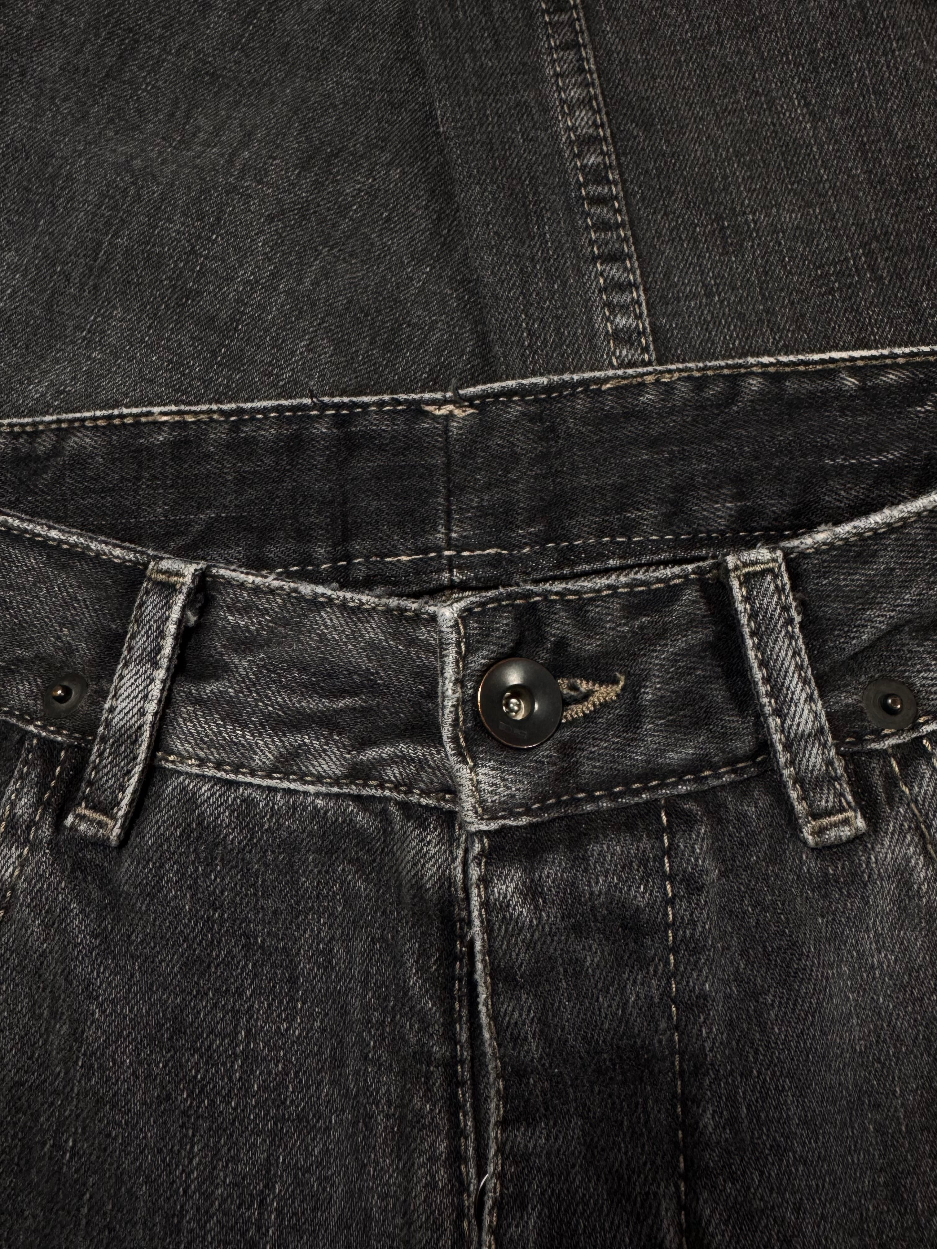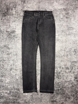 Stunning pair of Rick Owens denim in the signature Torrance cut silhouette from the Spring/Summer 2018 collection titled “Dirt”. Coming in the faded grey ‘Hustler’ wash with a released hem. In brilliant condition with no flaws (small opening on out-seam that just needs restitching), maintains fantastic quality with minimal wear