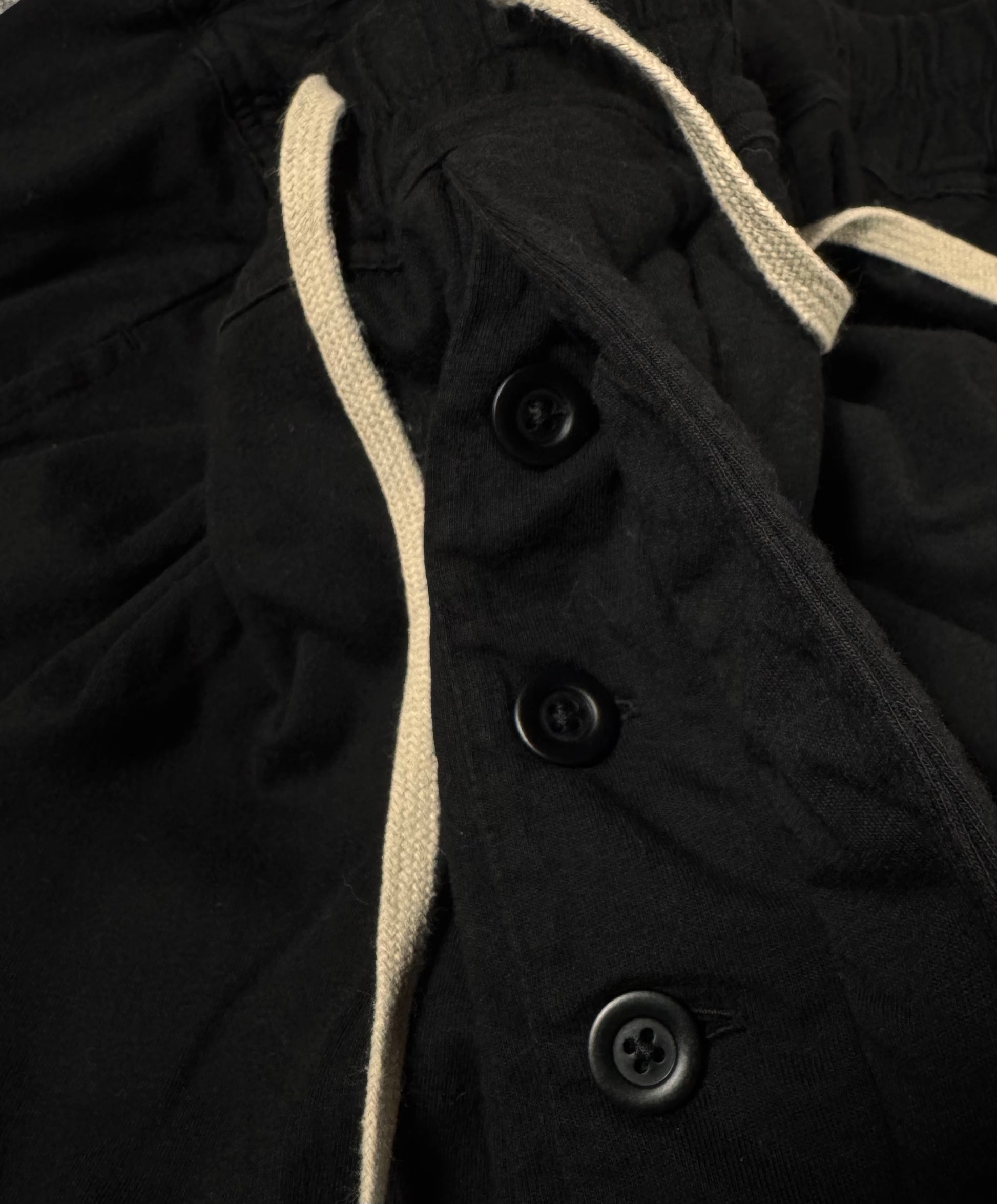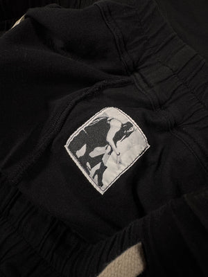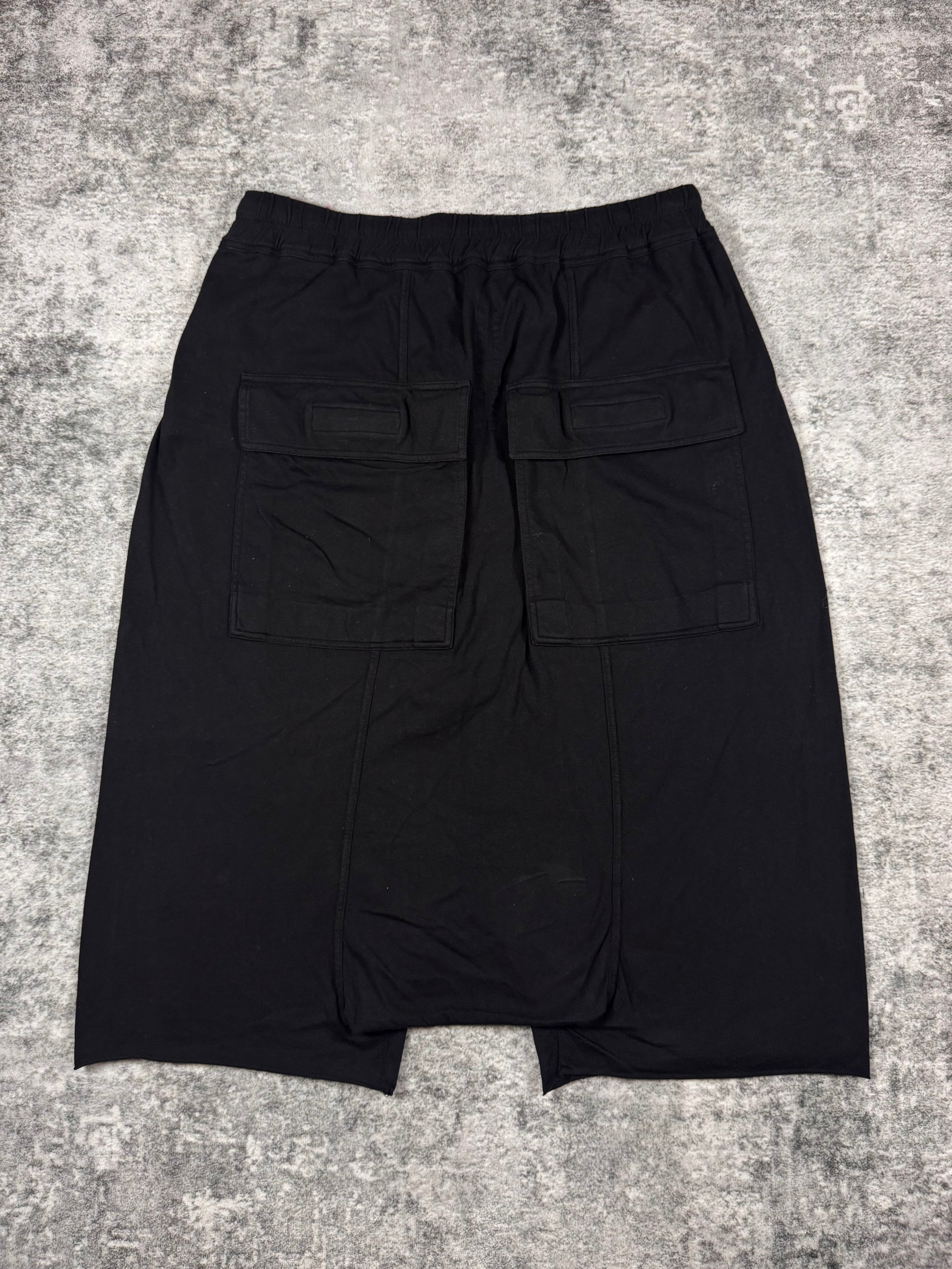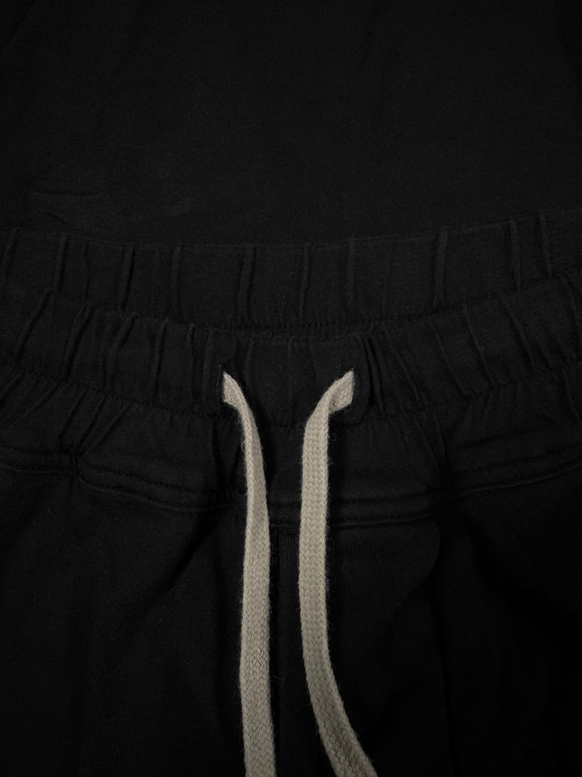 Showcased is an exquisite pair of DRKSHDW Rick Owens shorts from Fall/Winter 2021 “Gethsemane”. These shorts feature Rick Owens heavily used drop-crotch silhouette, as well as the classic long drawstrings. Two large back pockets, and elastic waist band allows for larger range of fitting. Constructed of black cotton material. In great condition with no flaws or damages