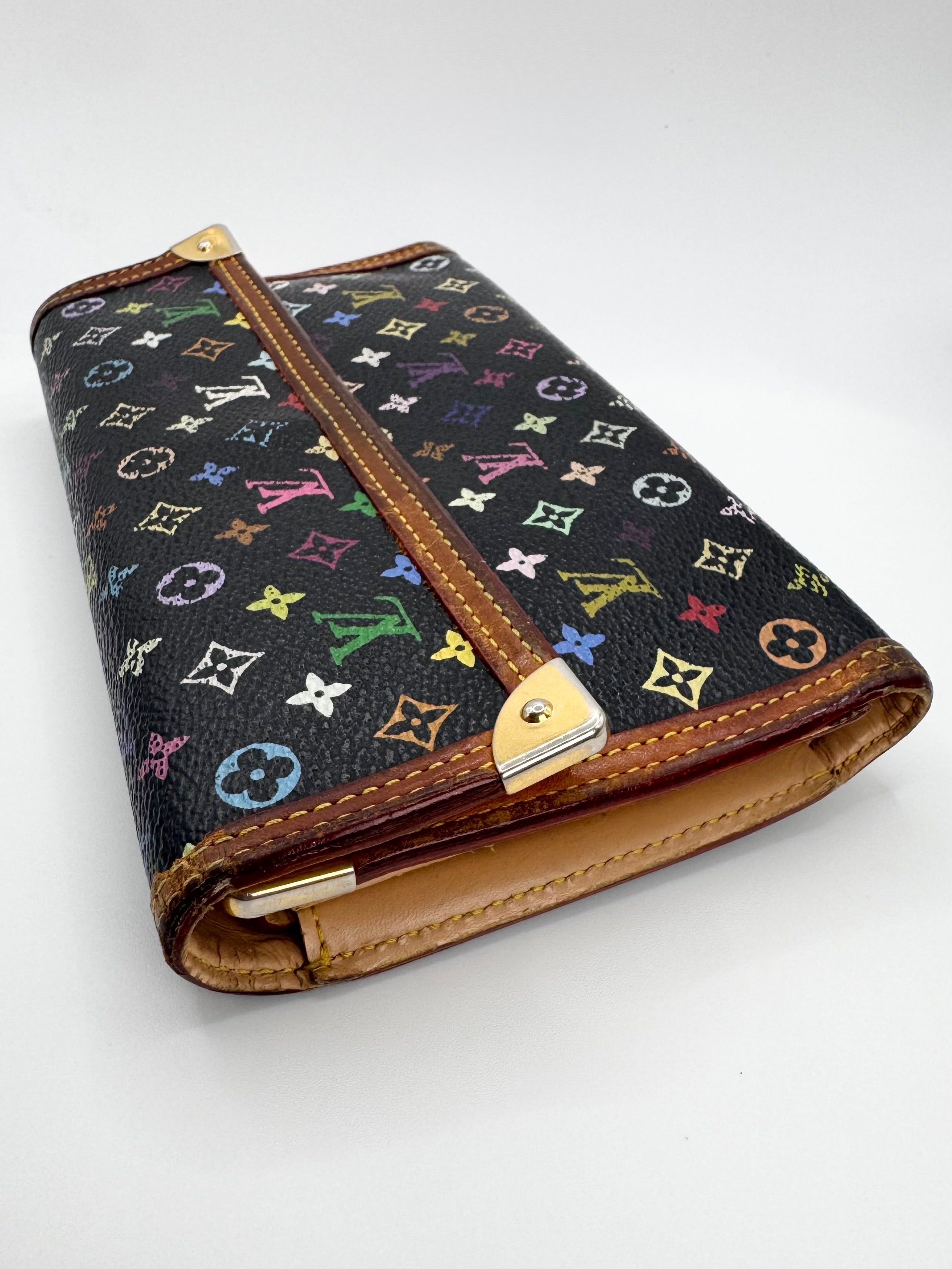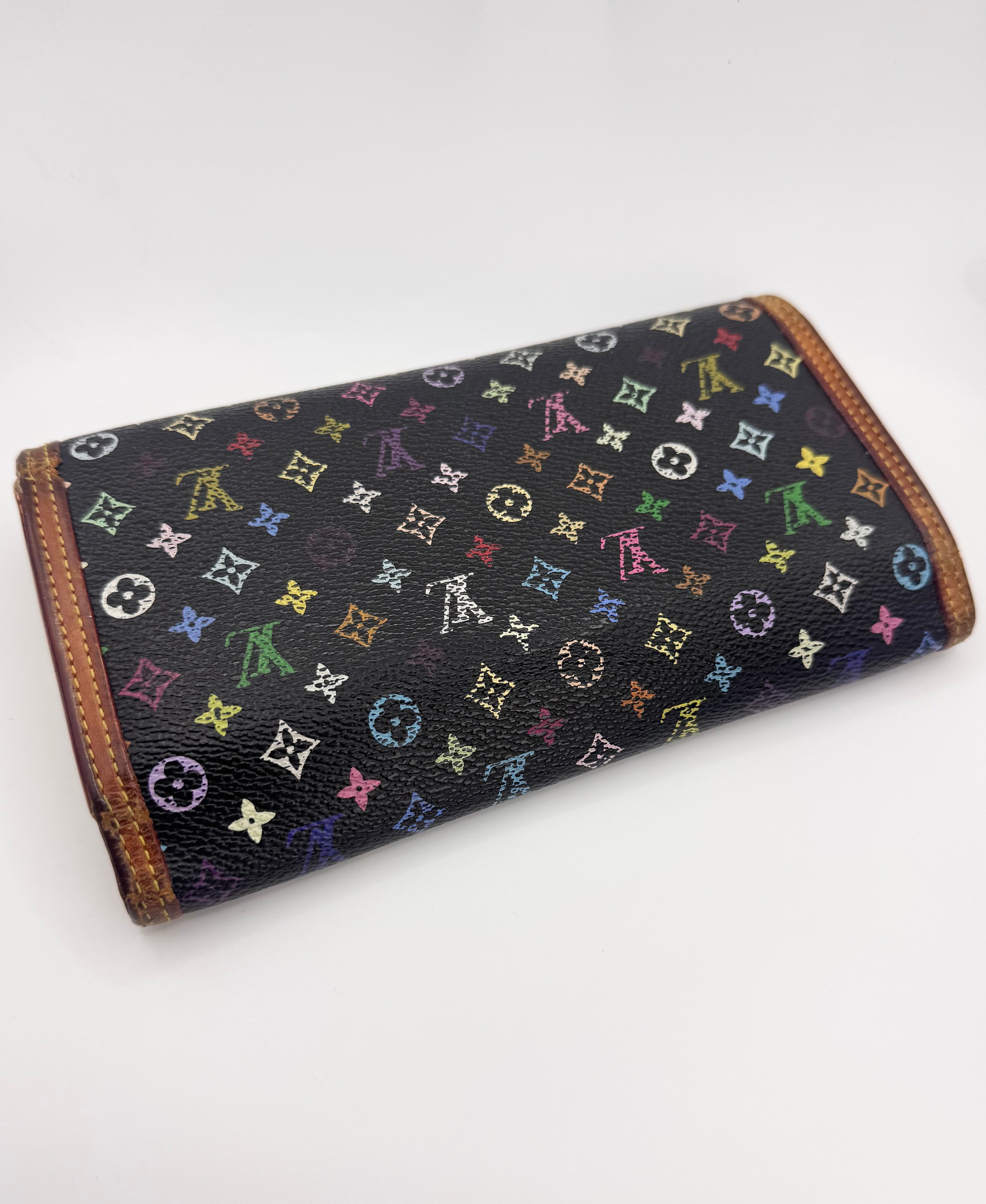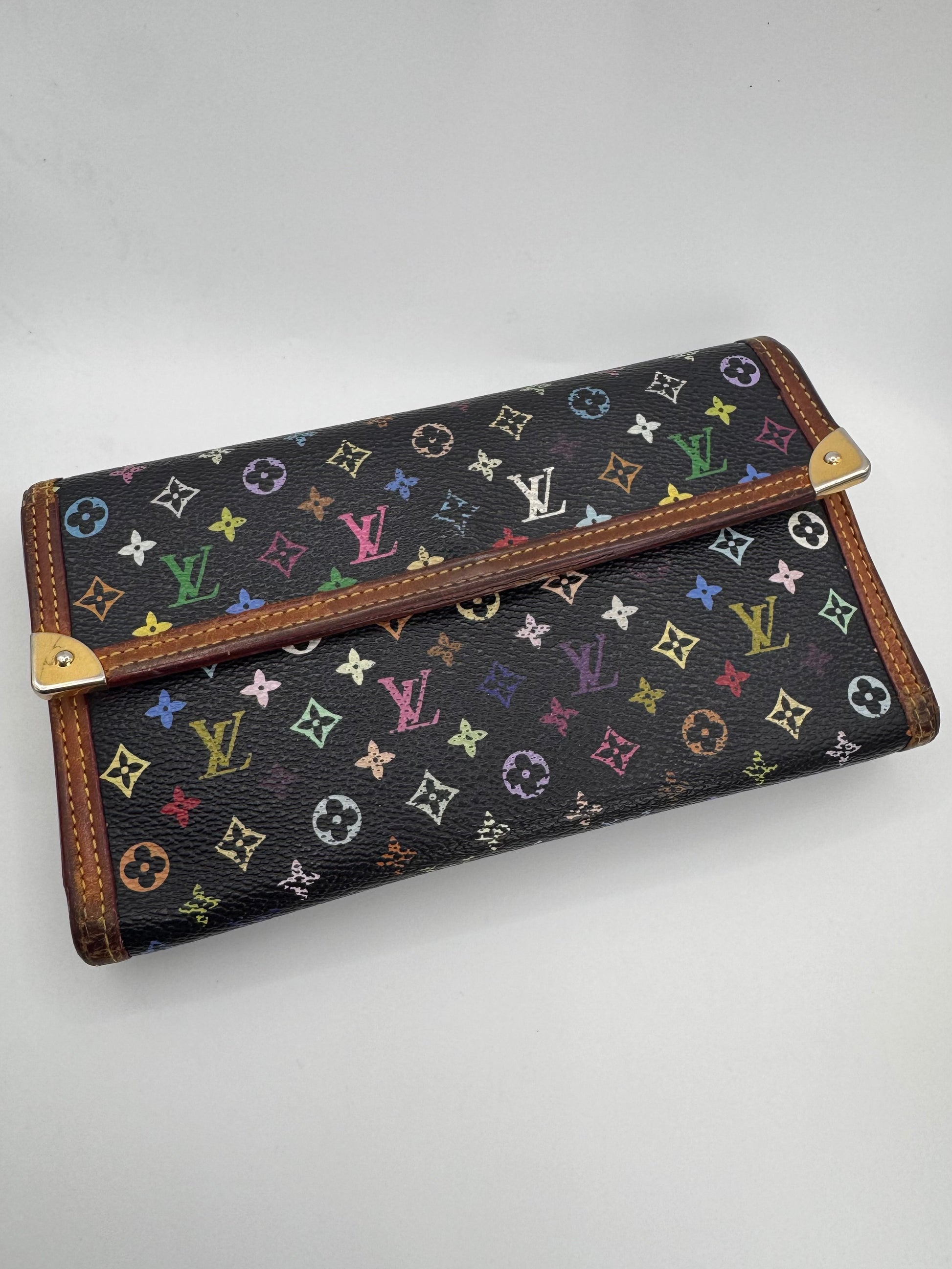 The iconic Louis Vuitton x Takashi Murakami collaboration was first released in 2003; this wallet was released in the Spring/Summer 2006 collection, features the iconic monogram reimagined in vibrant hues against black coated canvas. Finished with natural vachetta leather trim and gold-tone hardware, it perfectly captures the playful yet luxurious spirit of early-2000s Louis Vuitton under Marc Jacobs. In good condition for it’s age, maintains good quality