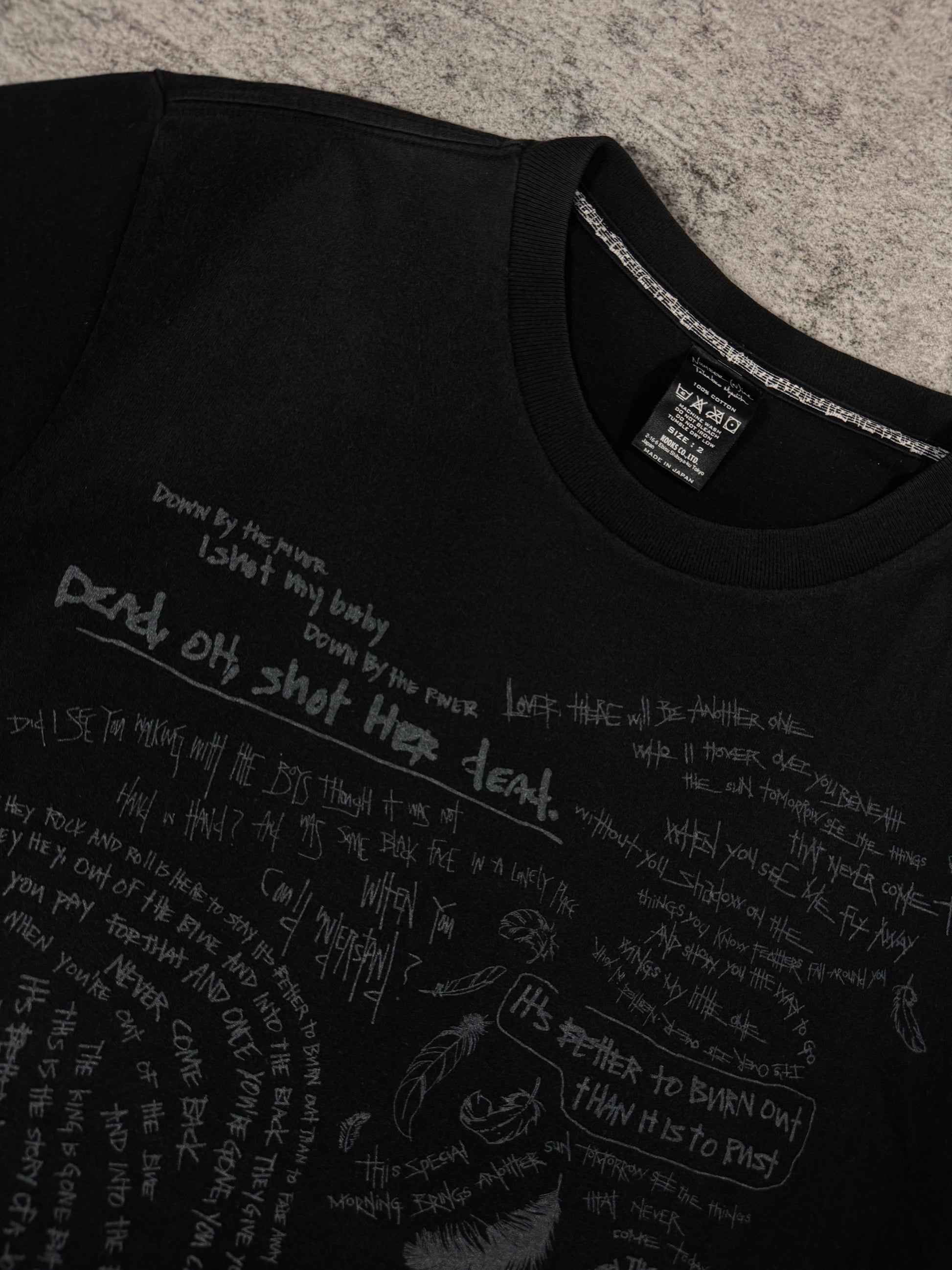 SS08 Number (N)ine “Birds” Feather Lyric Scribble T shirt