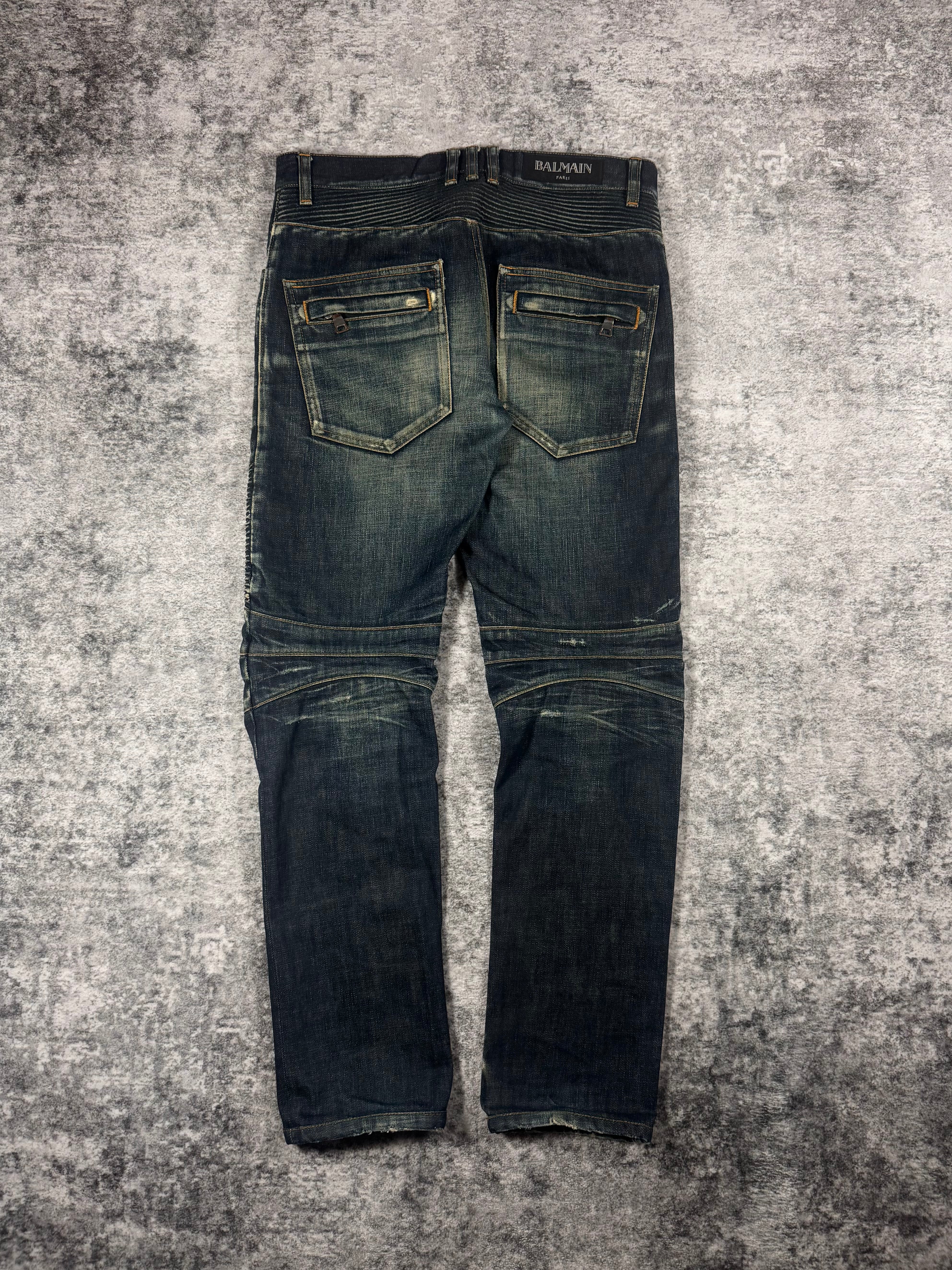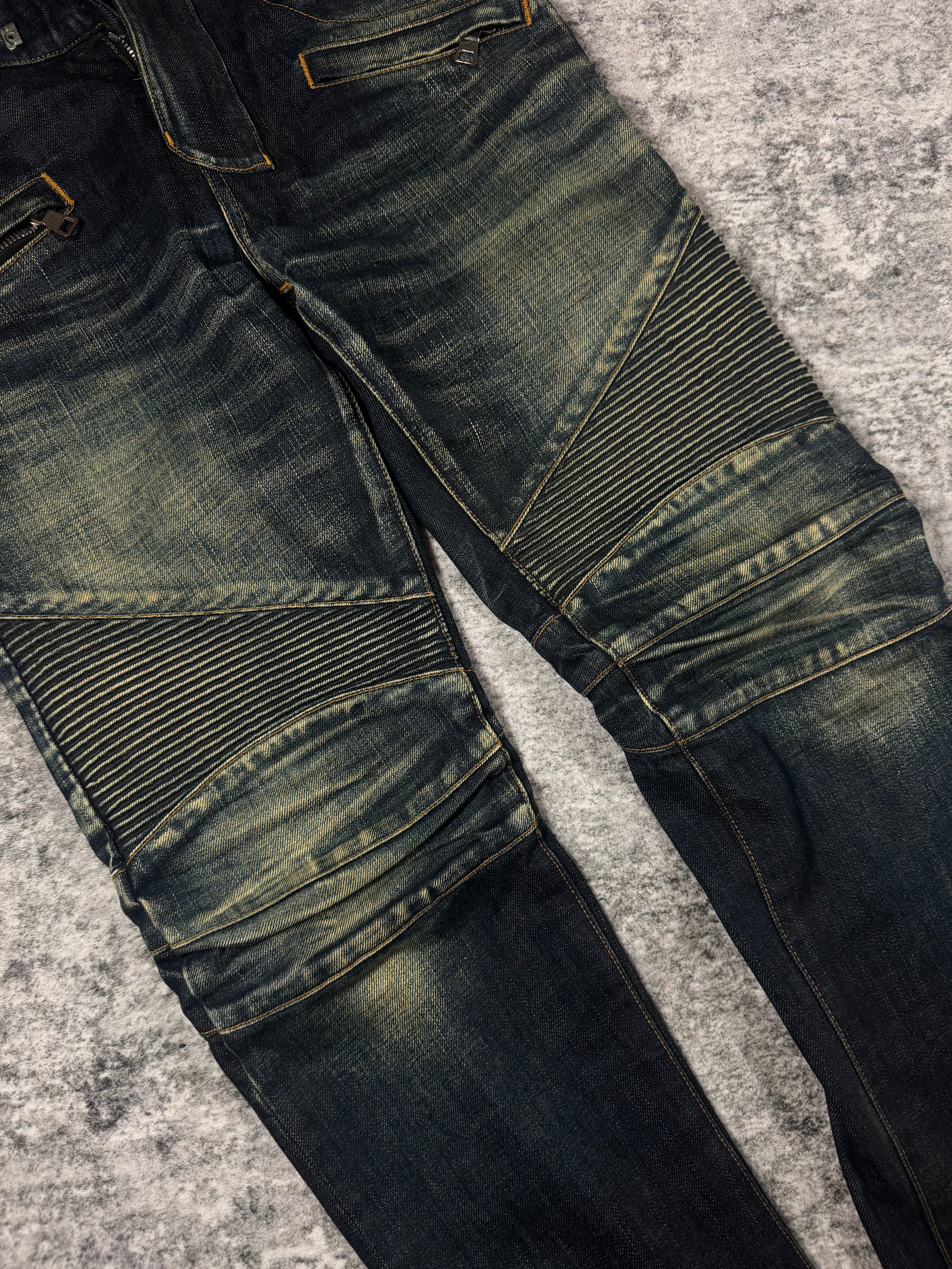 SS14 Balmain Homme Olivier Rousteing Faded ‘Deep Indigo’ Biker Denim