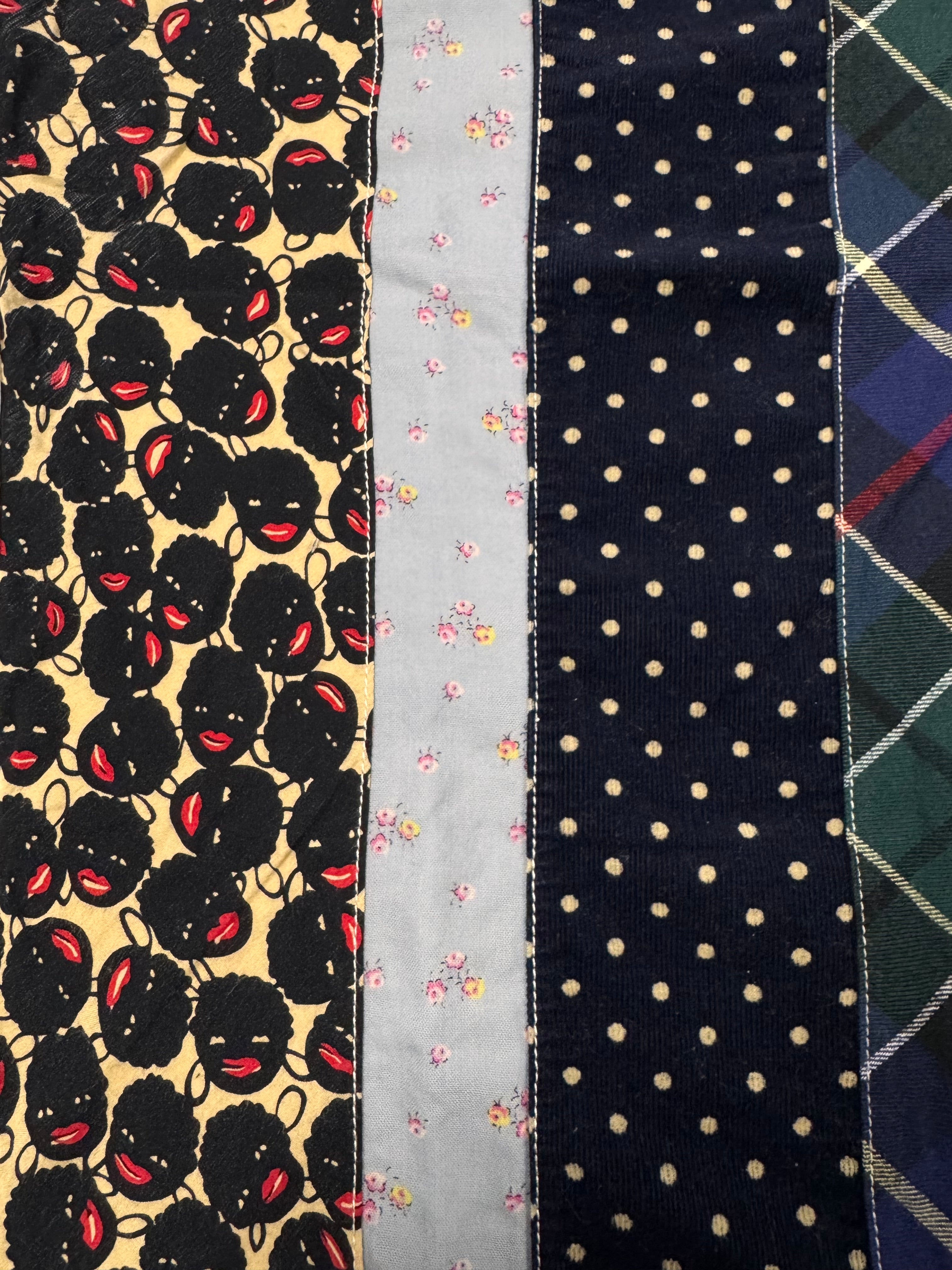 Released in the Spring/Summer 2014 collection as part of the Junya Watanabe ‘Denim’ line; this line focuses on denim-inspired materials and techniques. Features bold vertical patchwork panels in contrasting prints and patterns. In beautiful condition with no flaws or damages