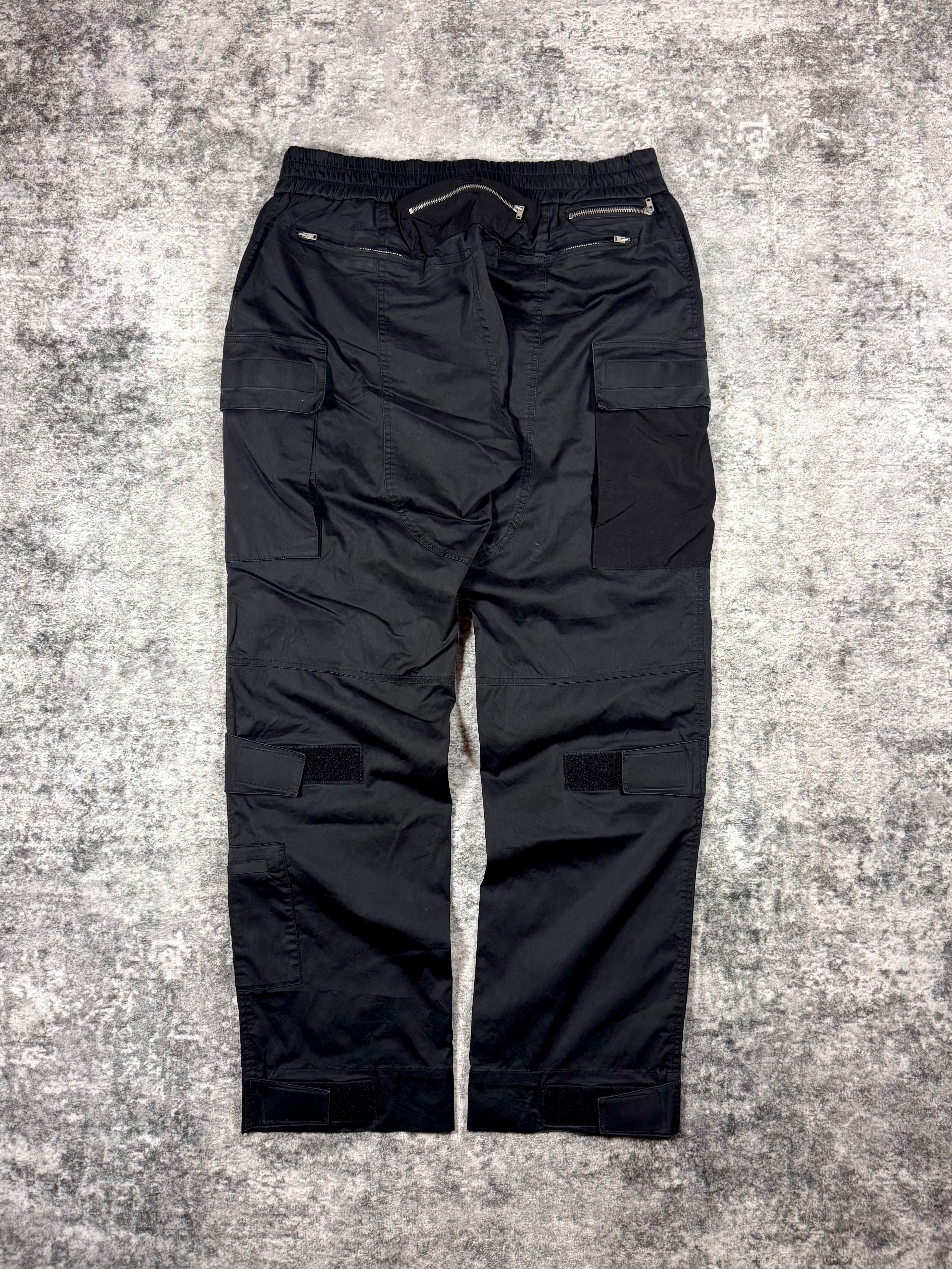 Released in the Spring/Summer 2018 collection, these 1017 ALYX 9SM technical cargo pants by Matthew Williams feature a utilitarian silhouette with multiple flap and zip cargo pockets for functional storage. The lightweight yet durable fabric is paired with an elasticized waistband. Distinct horizontal zip pocket detailing across the upper cargo compartments. Constructed in Italy. In good condtion with no major flaws or damages