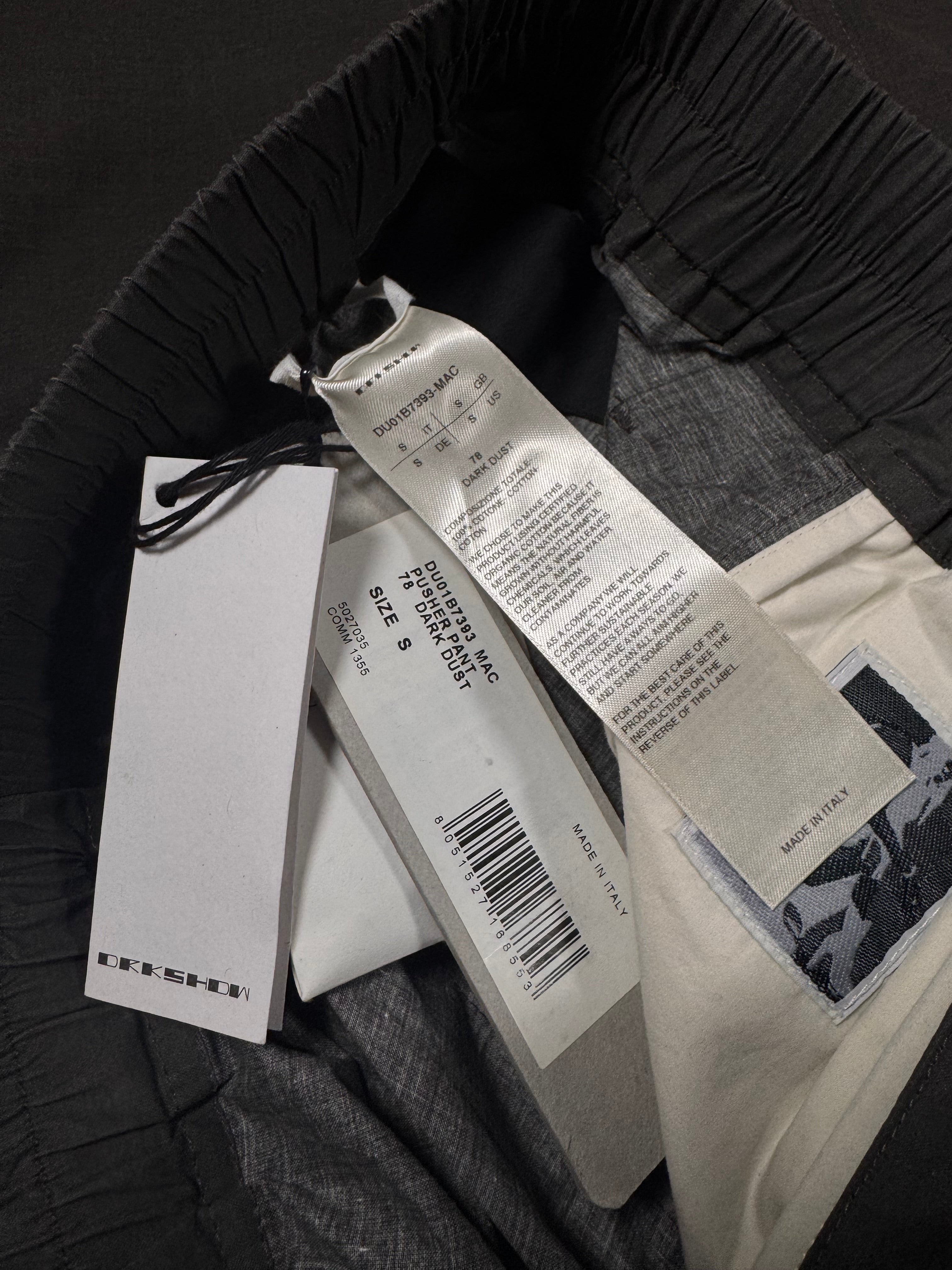 From Spring/Summer 2021 “PHLEGETHON” as part of the Drkshdw line, these bottoms are called ‘Pusher’ pants — features a relaxed straight-leg silhouette with signature snap-button detailing running down both side seams. Constructed from lightweight cotton with an elasticated waistband and signature elongated drawstrings. Comes with all tags from purchase including extra hardware. In brilliant condition with no flaws or damages