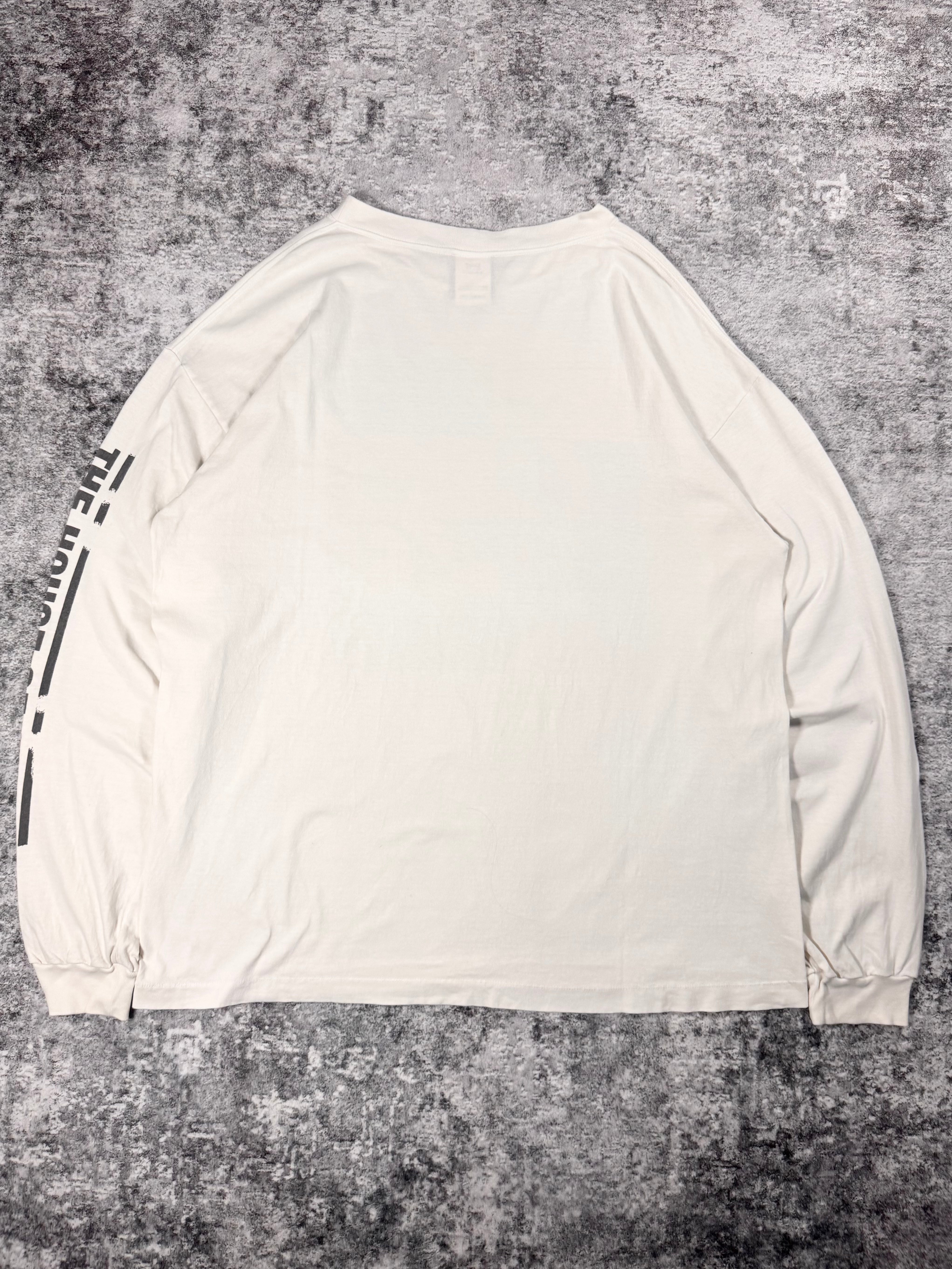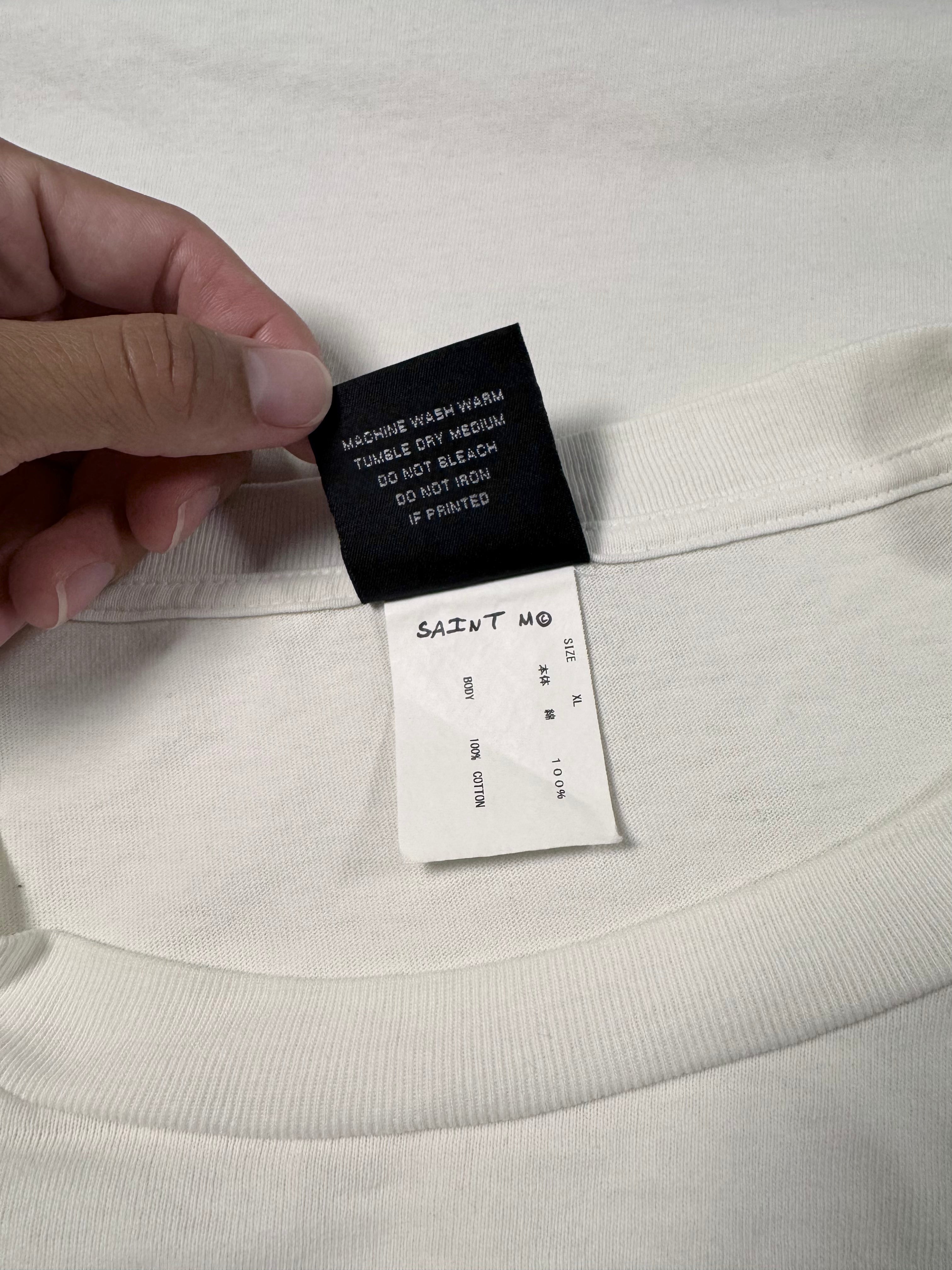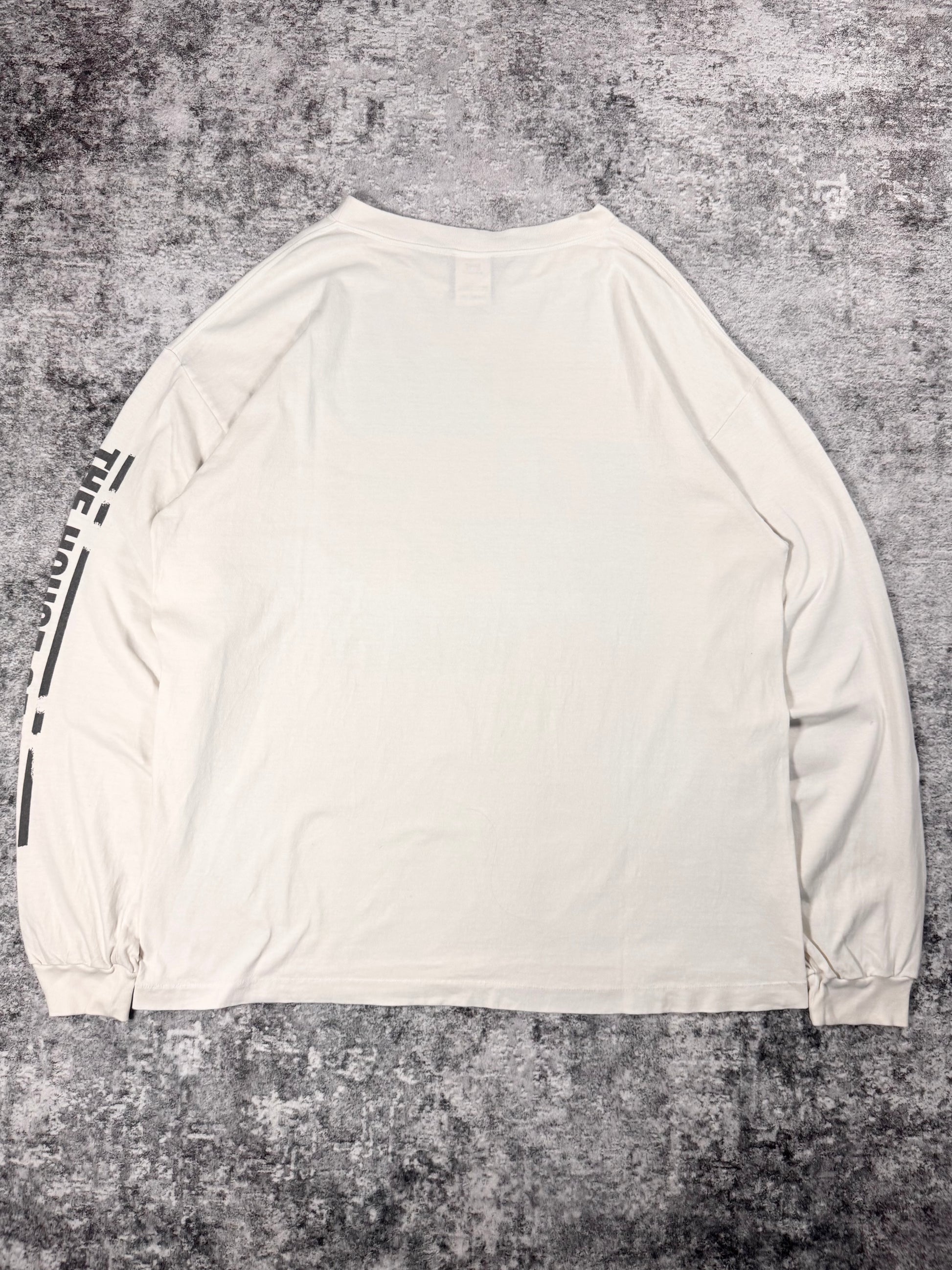 This long sleeve was released in the Spring/Summer 2023 collection as part of the Saint Mxxxxxx line. Features a color front graphic of different eyes in a collage style, with the ‘The House of Saint’. Same text graphic featured on the sleeve as well. In good condition with no flaws or damages