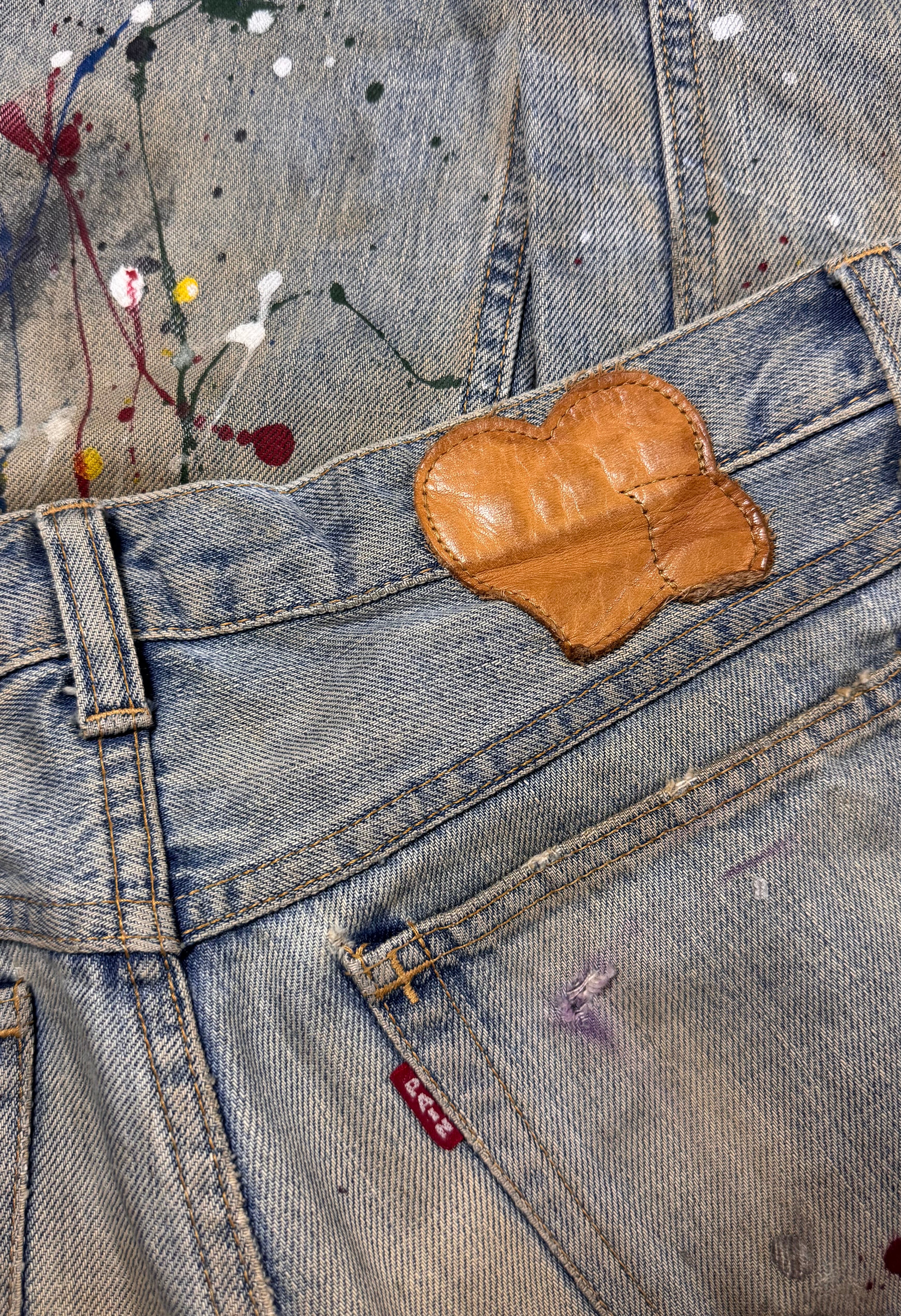 From the Spring/Summer 2006 “Welcome To The Shadow” collection (the collection had heavy inspiration from the lead singer of Guns N’ Roses, Axl Rose), this is one of the most iconic pairs of ‘Pain’ denim from the collection. Features an aggressive mud-wash base layered with chaotic, hand-applied paint splatter throughout, embodying Takahiro Miyashita’s raw, anti-establishment aesthetic. In solid condition for its age, maintains top quality