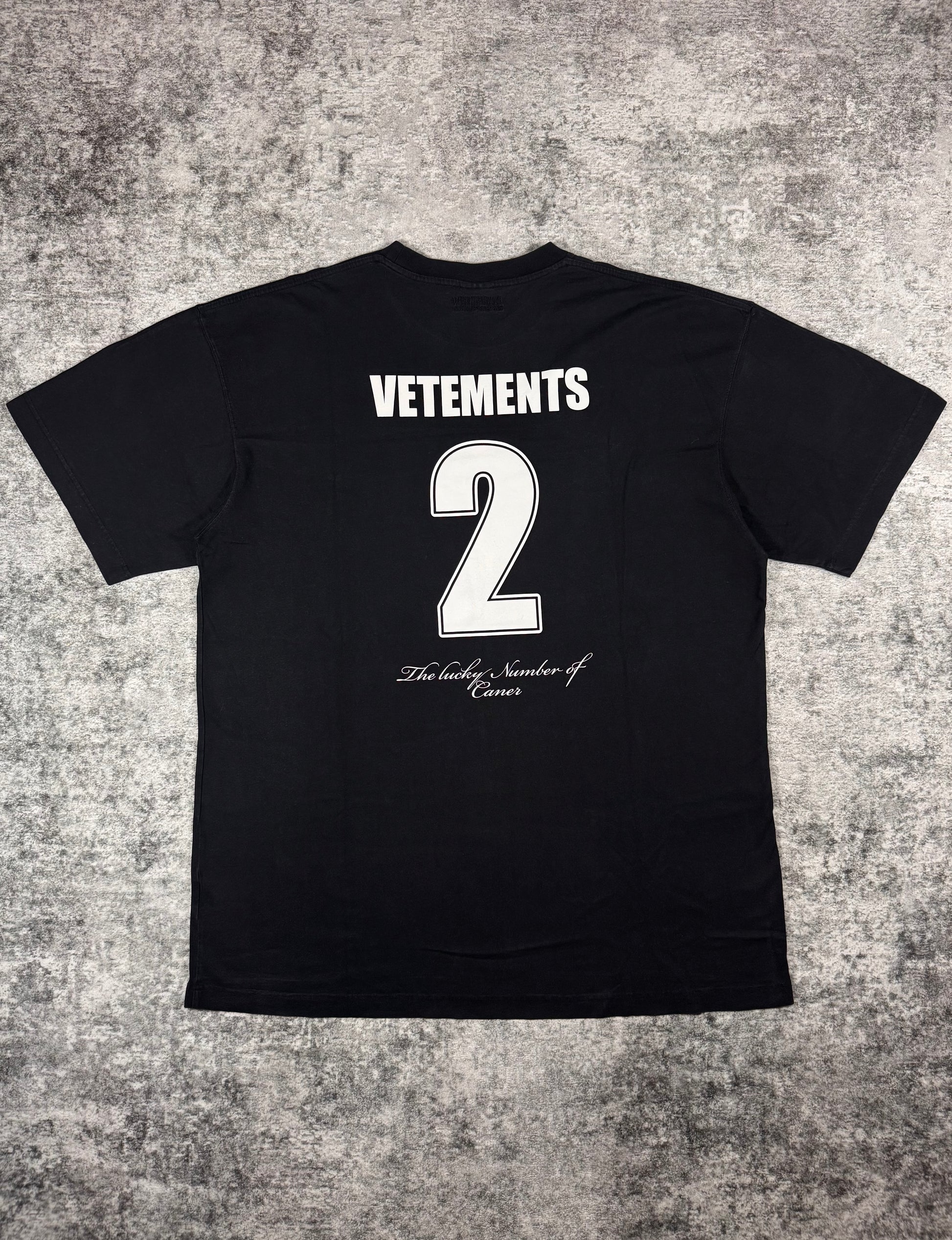 Released in the Fall/Winter 2020 collection, features a front graphic of the Moon in space with a detailed description. Backside features jersey style #2 with ‘Vetements’ right above. In very good condition with no flaws or damages