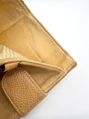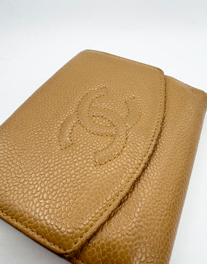 Chanel Vintage Beige ‘CC’ Caviar Leather Bi-Fold Wallet